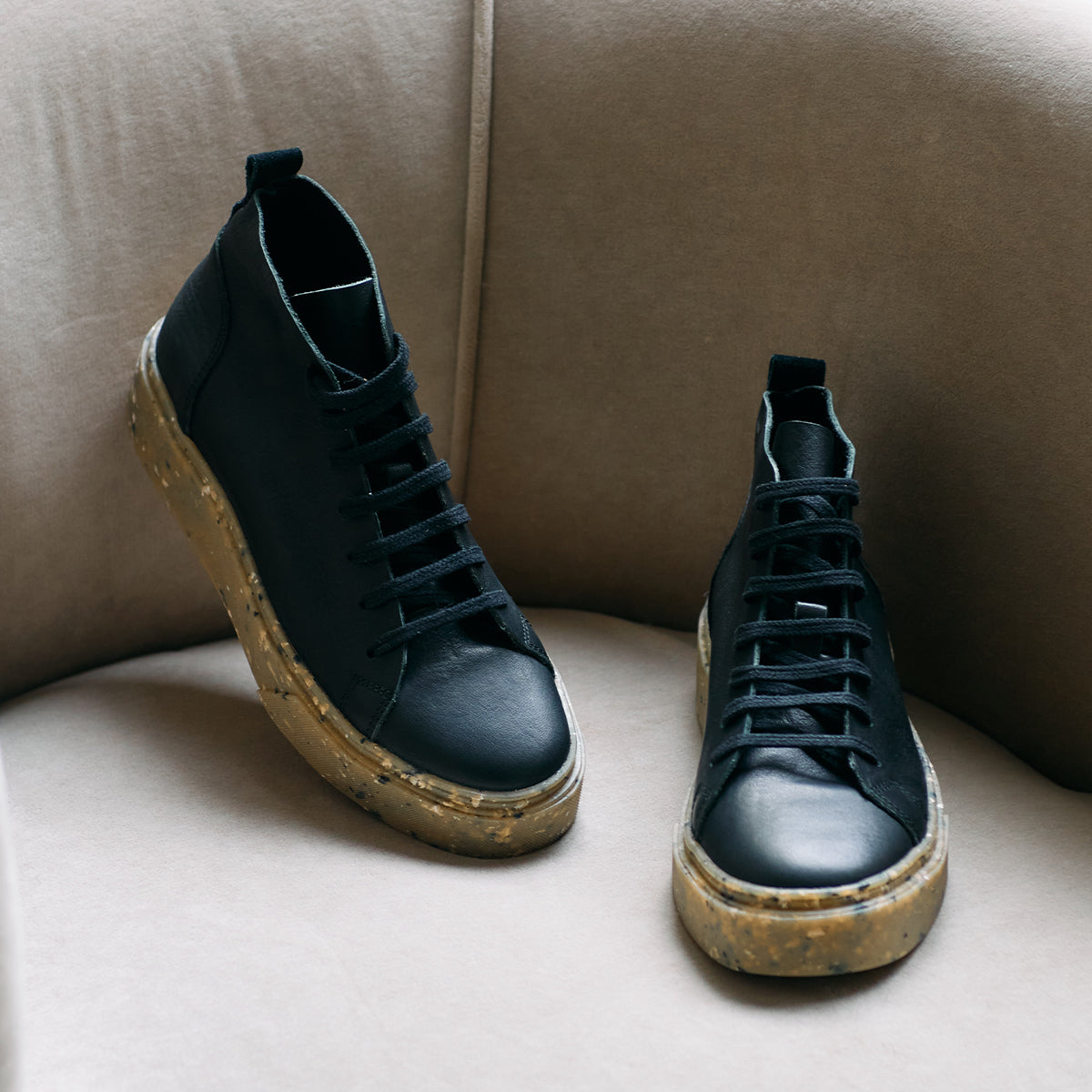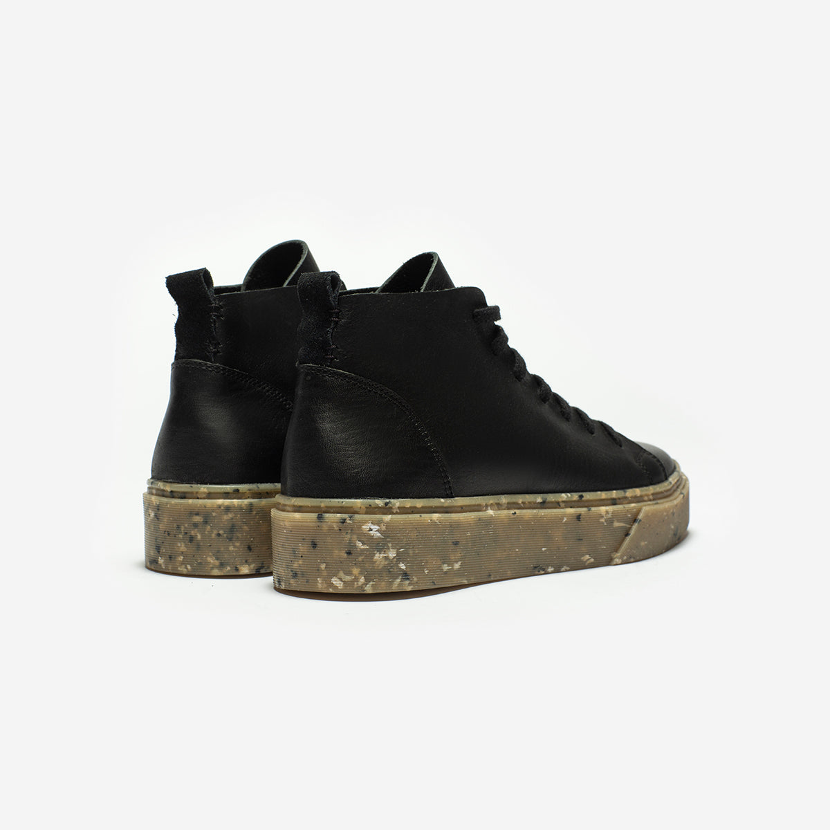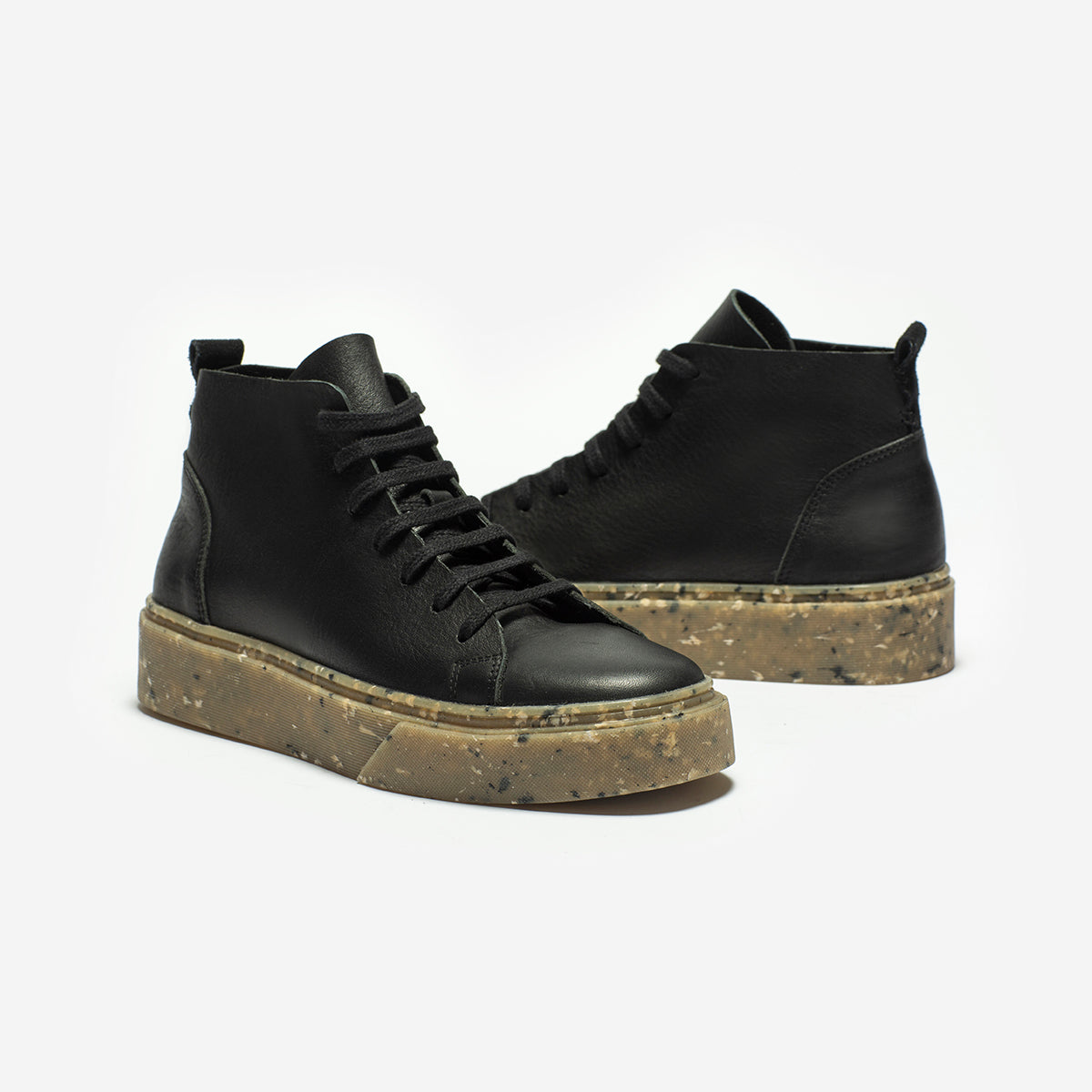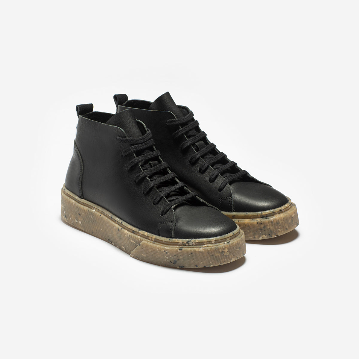 Sneakers Alhena Negro, exterior, interior y plantilla de cuero.