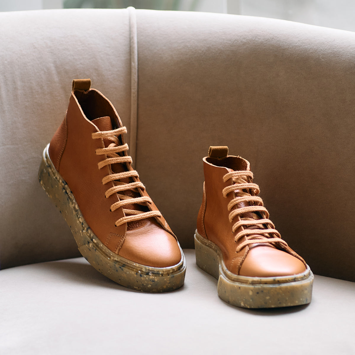 Sneakers Alhena Suela, exterior, interior y plantilla de cuero.