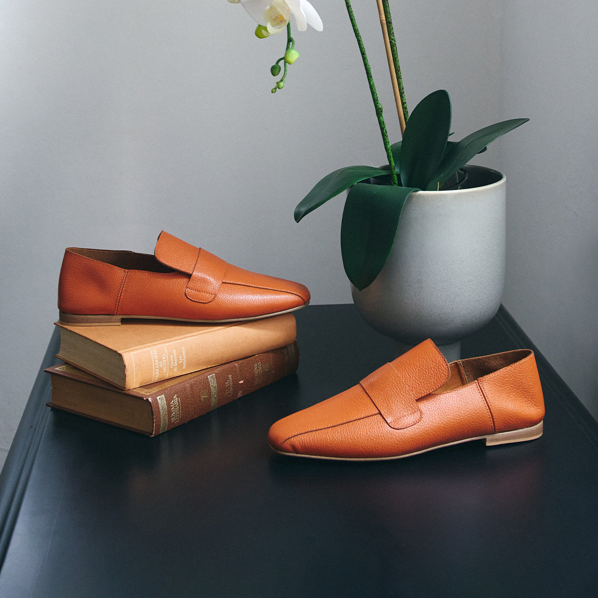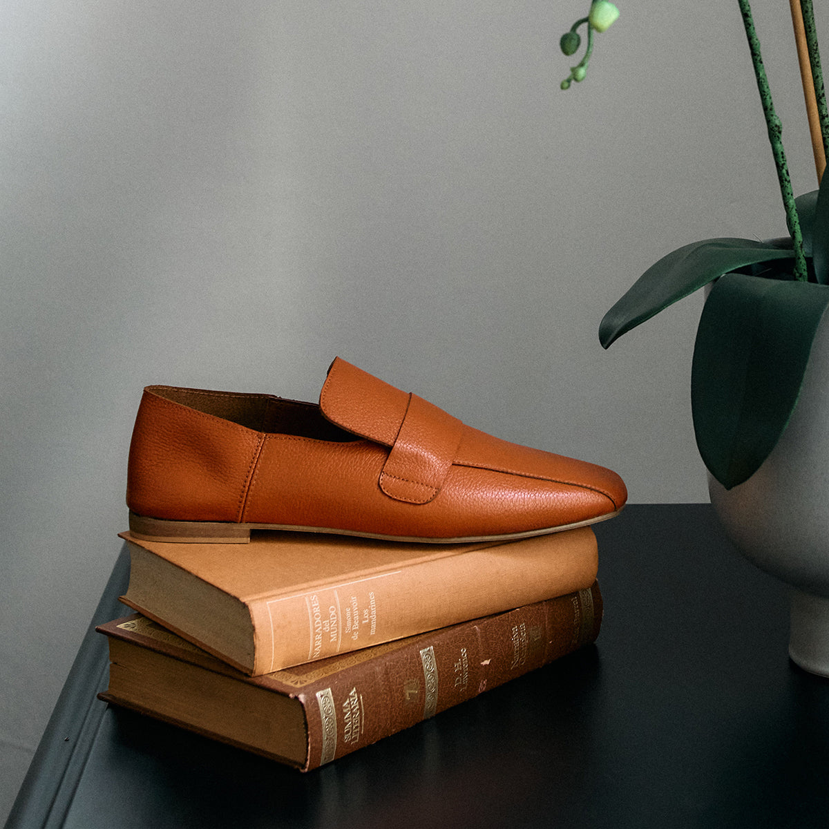Mocasín Benjamin Ladrillo, exterior, interior y plantilla de cuero.