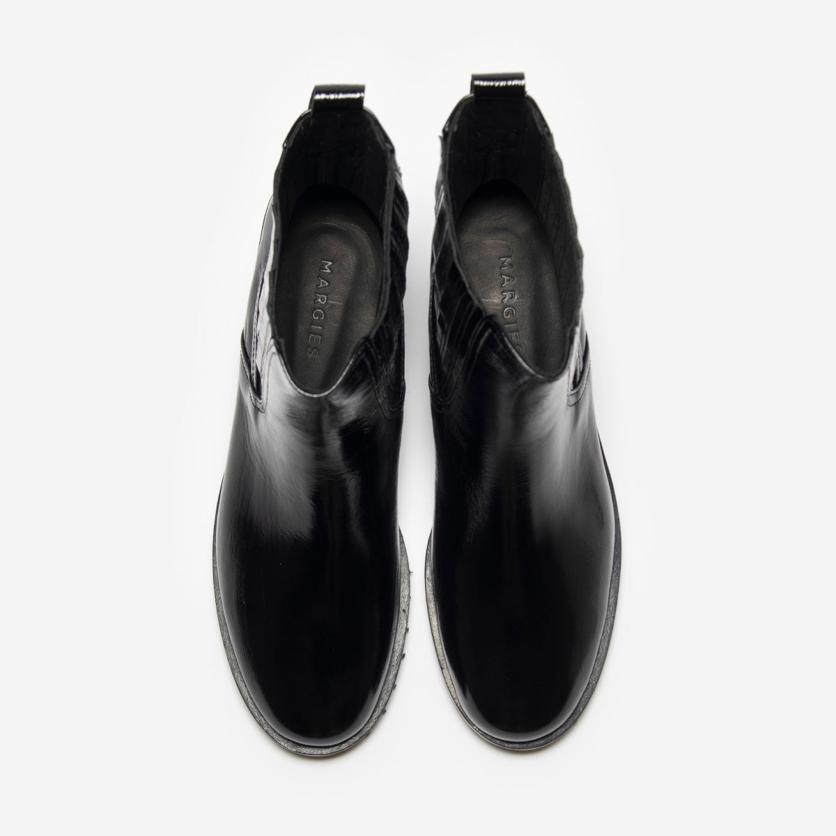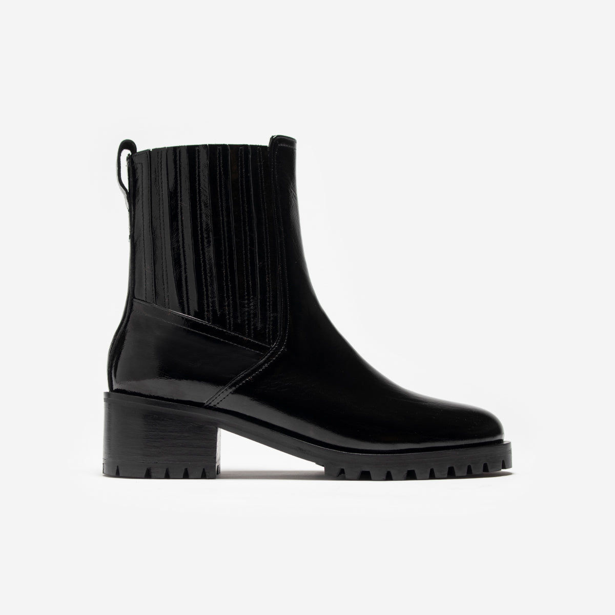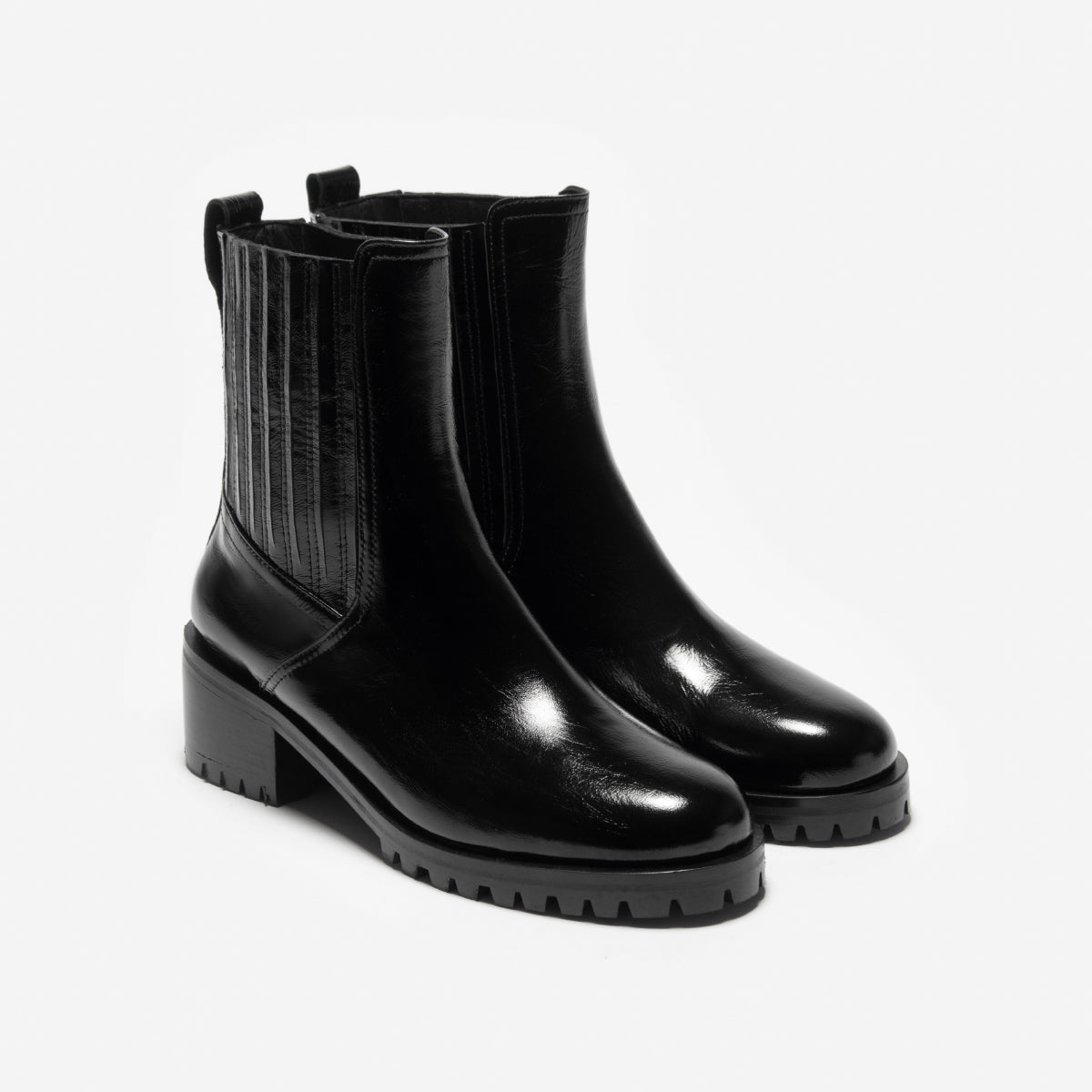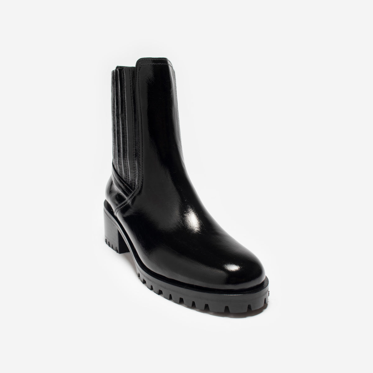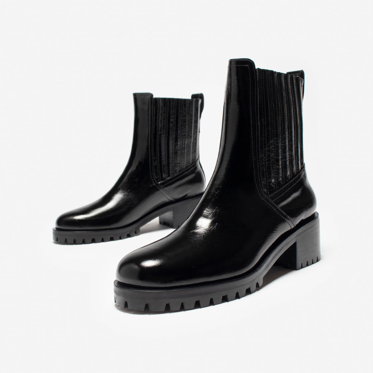 Bota Biarni Charol Negro, base goma 2 cm, exterior, interior y plantilla de cuero.