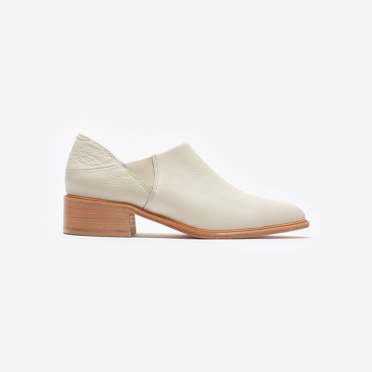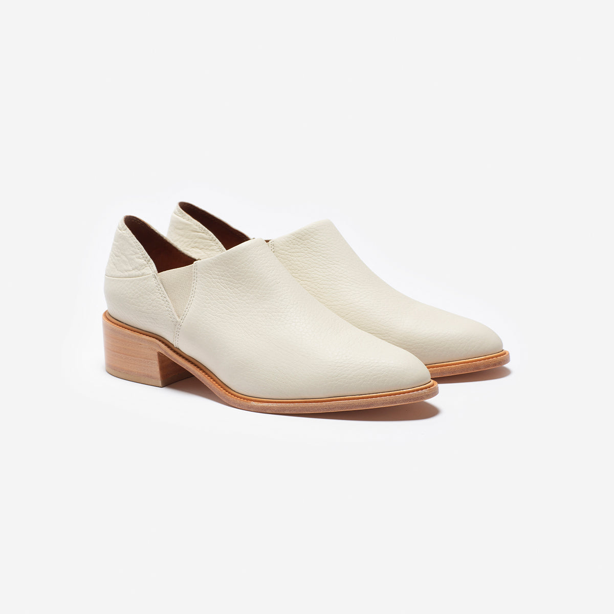Botineta Brecy Off White, base 3 cm, exterior, interior y plantilla de cuero.