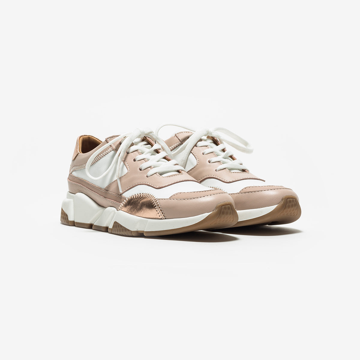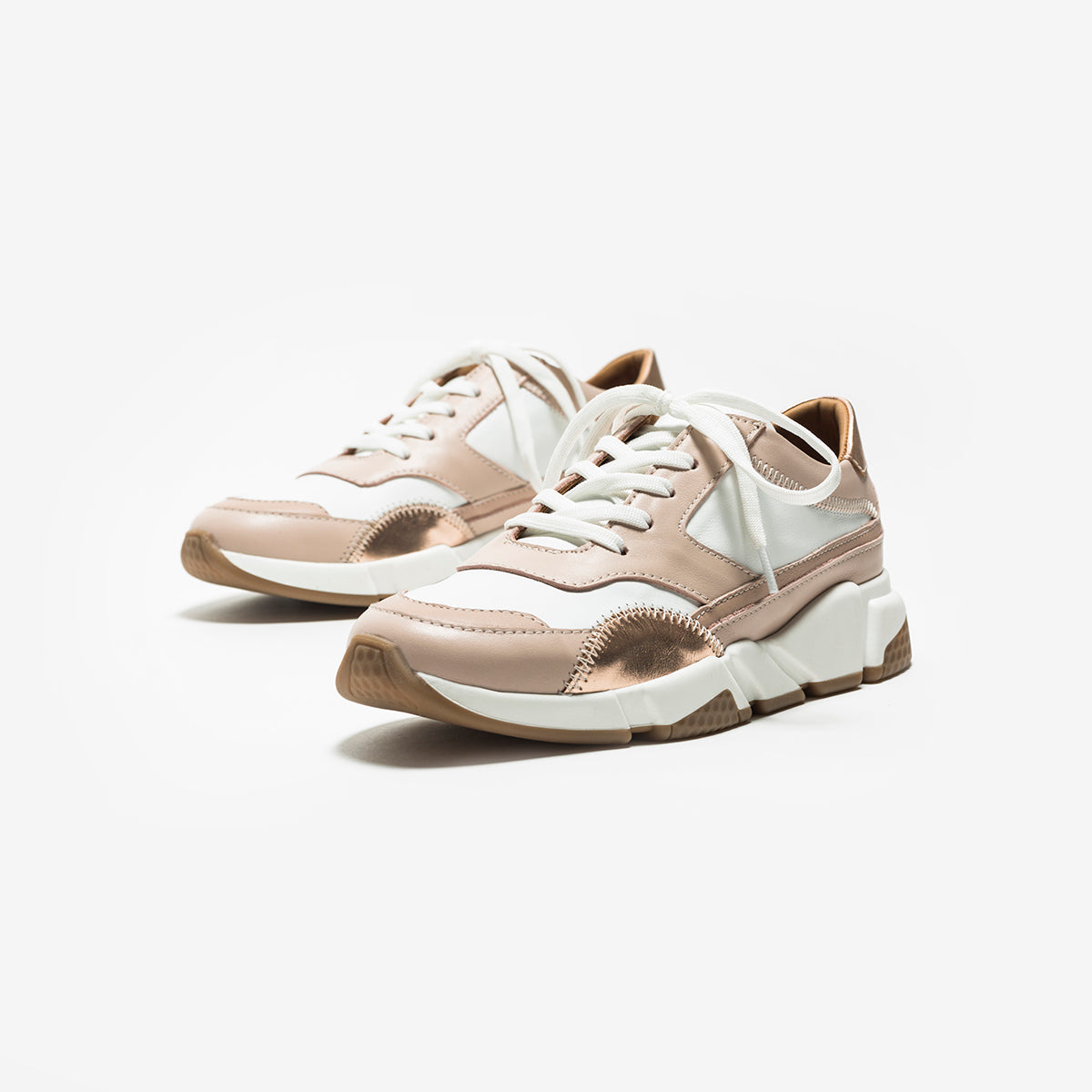 Sneakers Collin Blanco, Nude y Platino; Exterior, interior y plantilla de cuero.