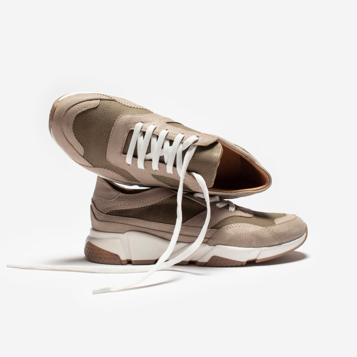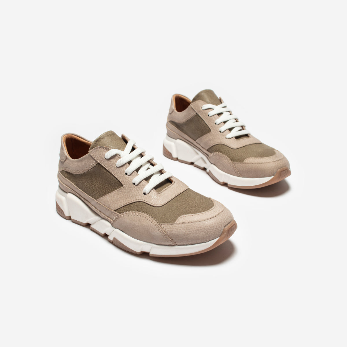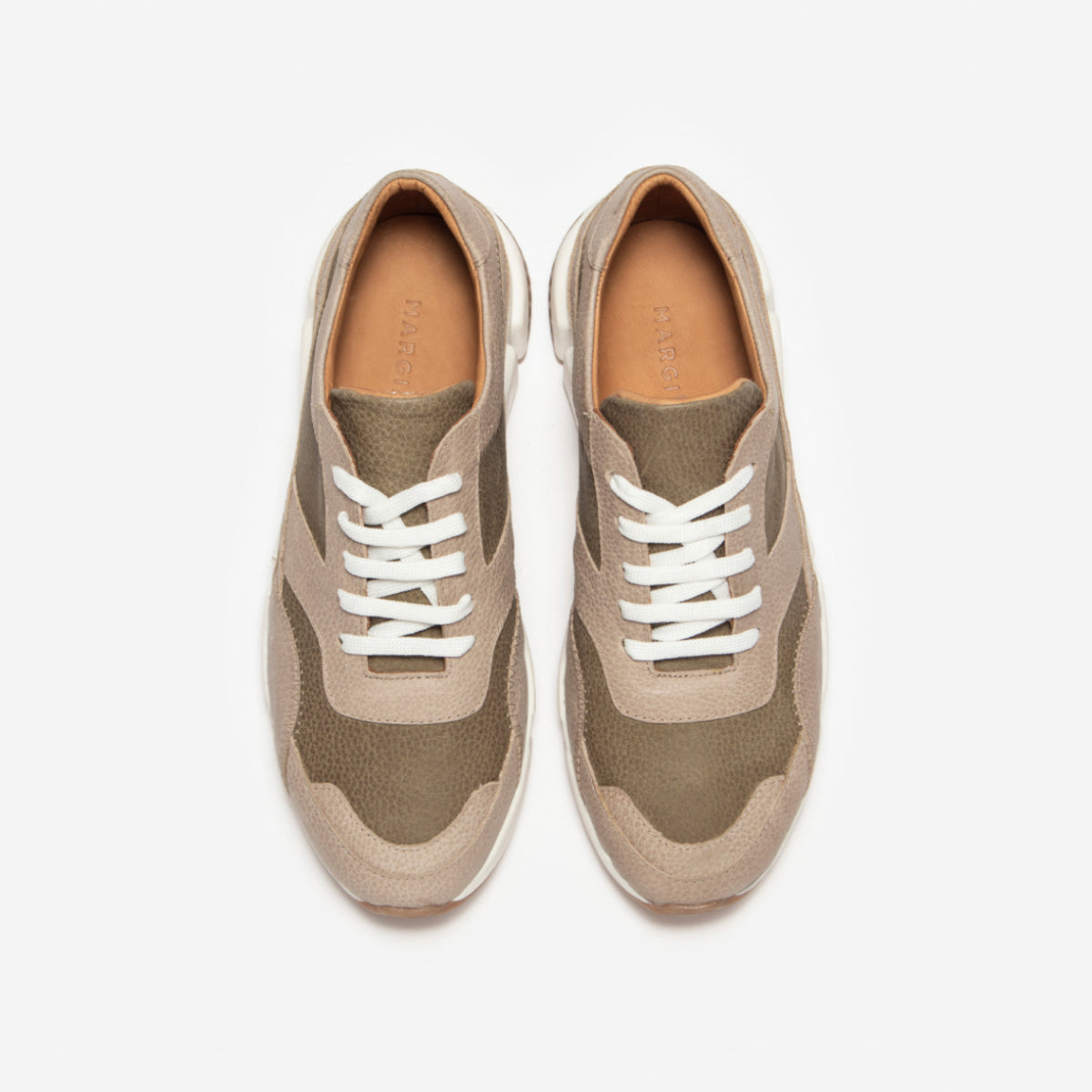 Sneakers Collin Verde, exterior, interior y plantilla de cuero.