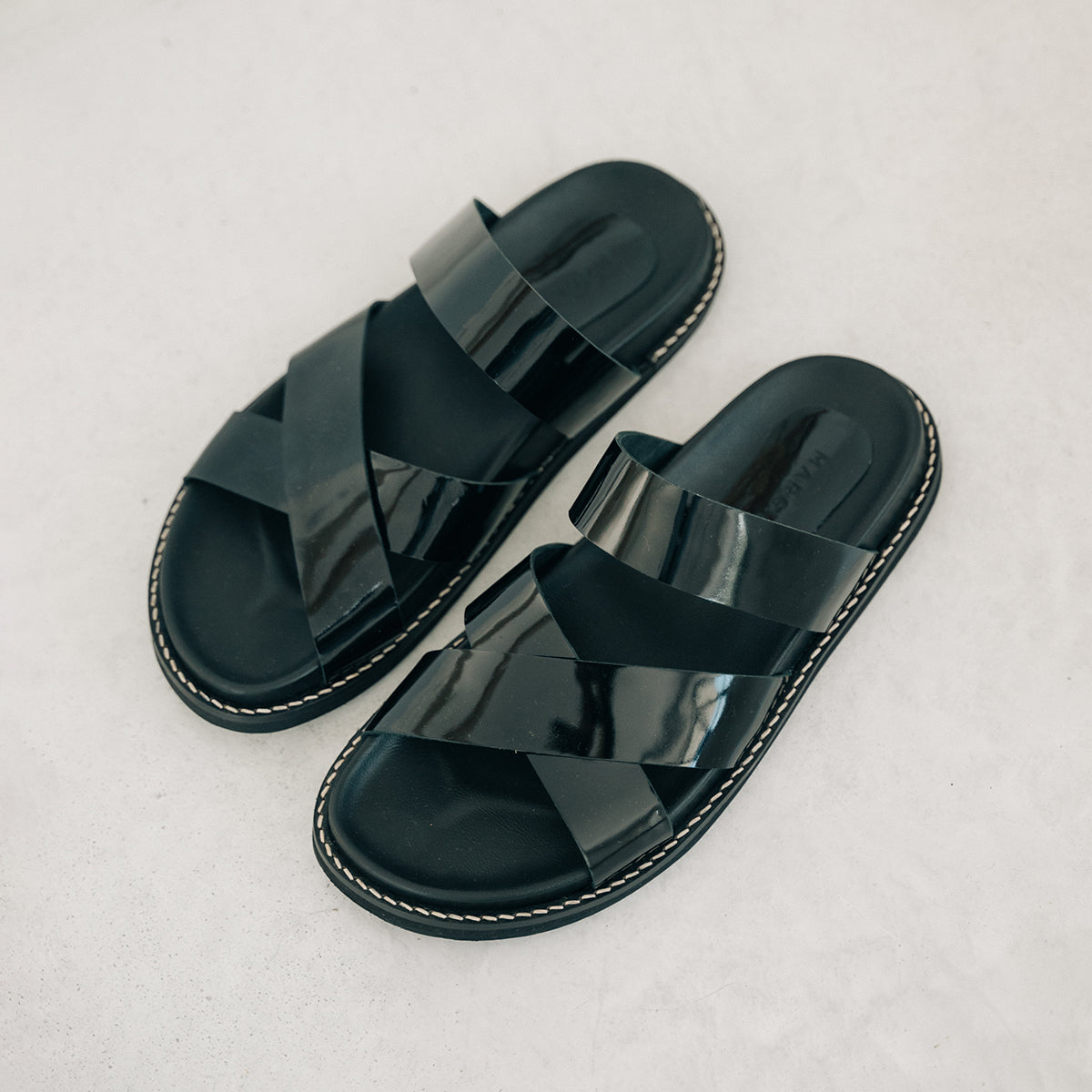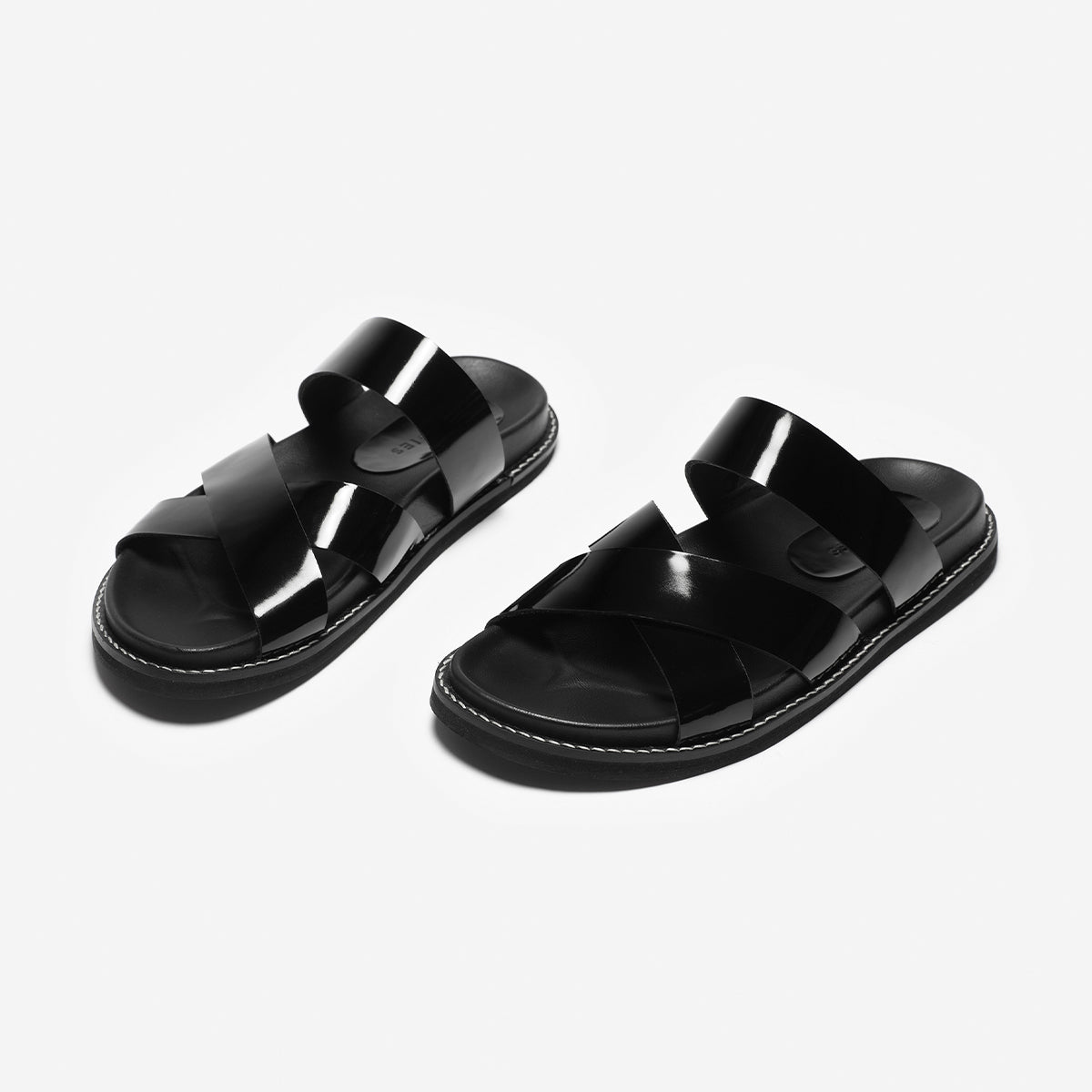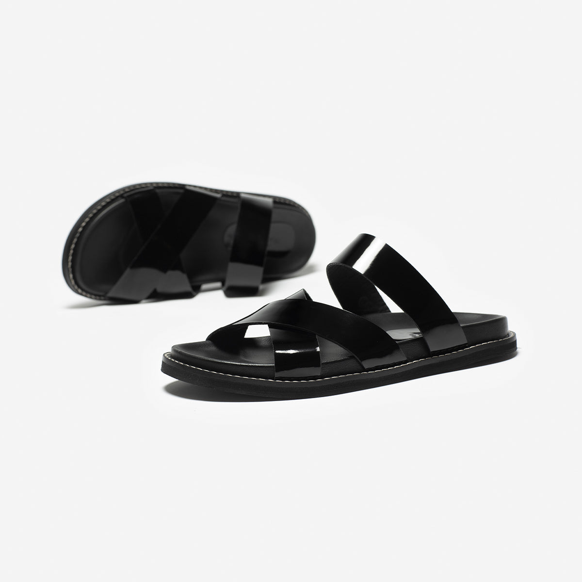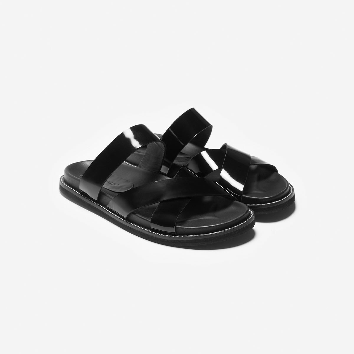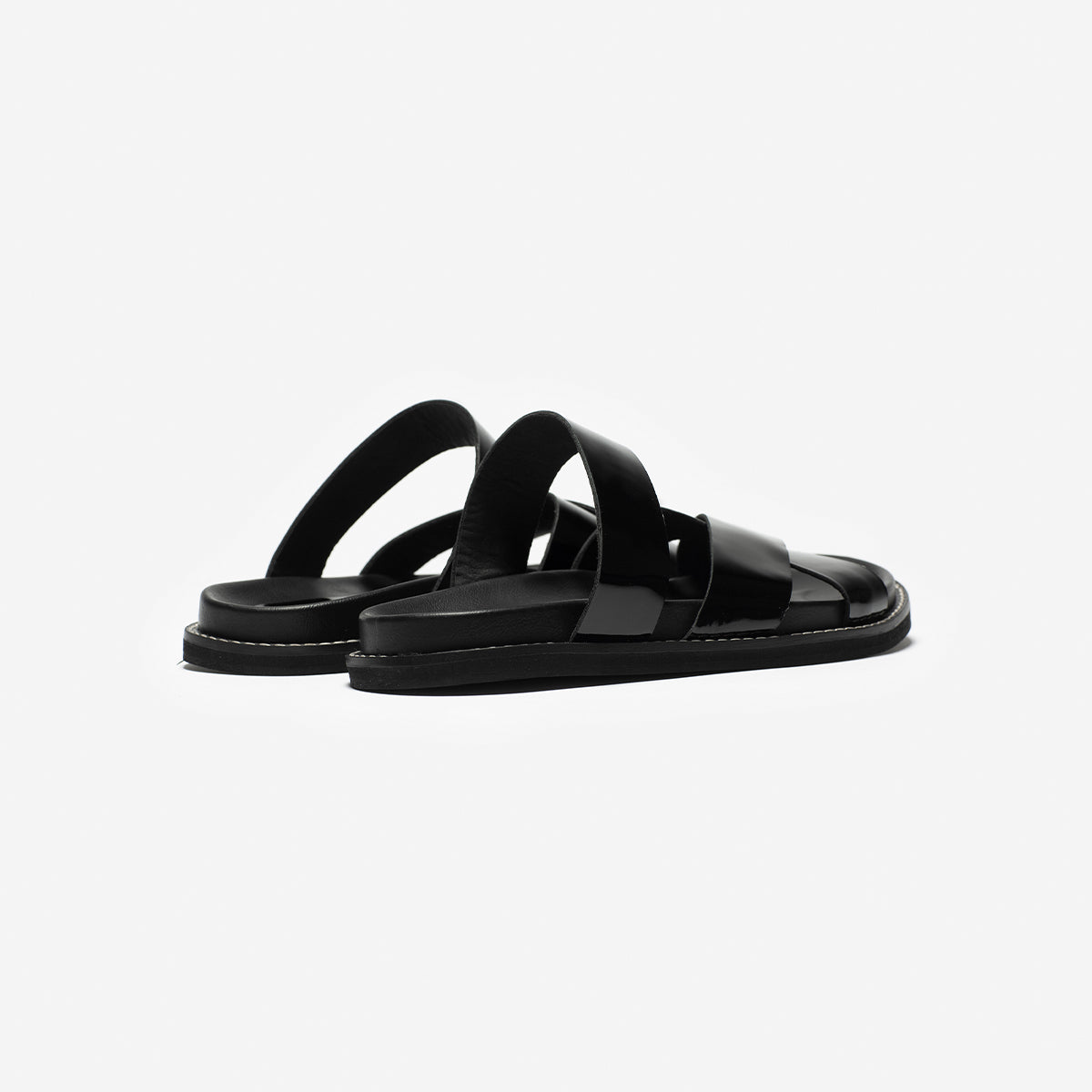 Sandalia Faro Negro, base 1 cm, interior y plantilla de cuero.