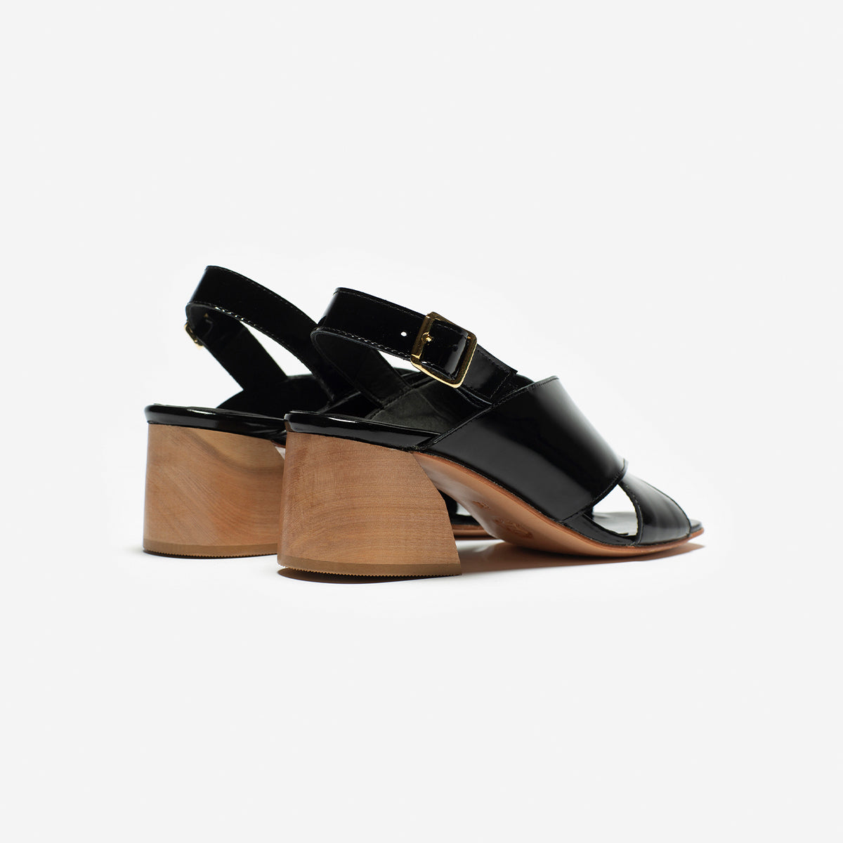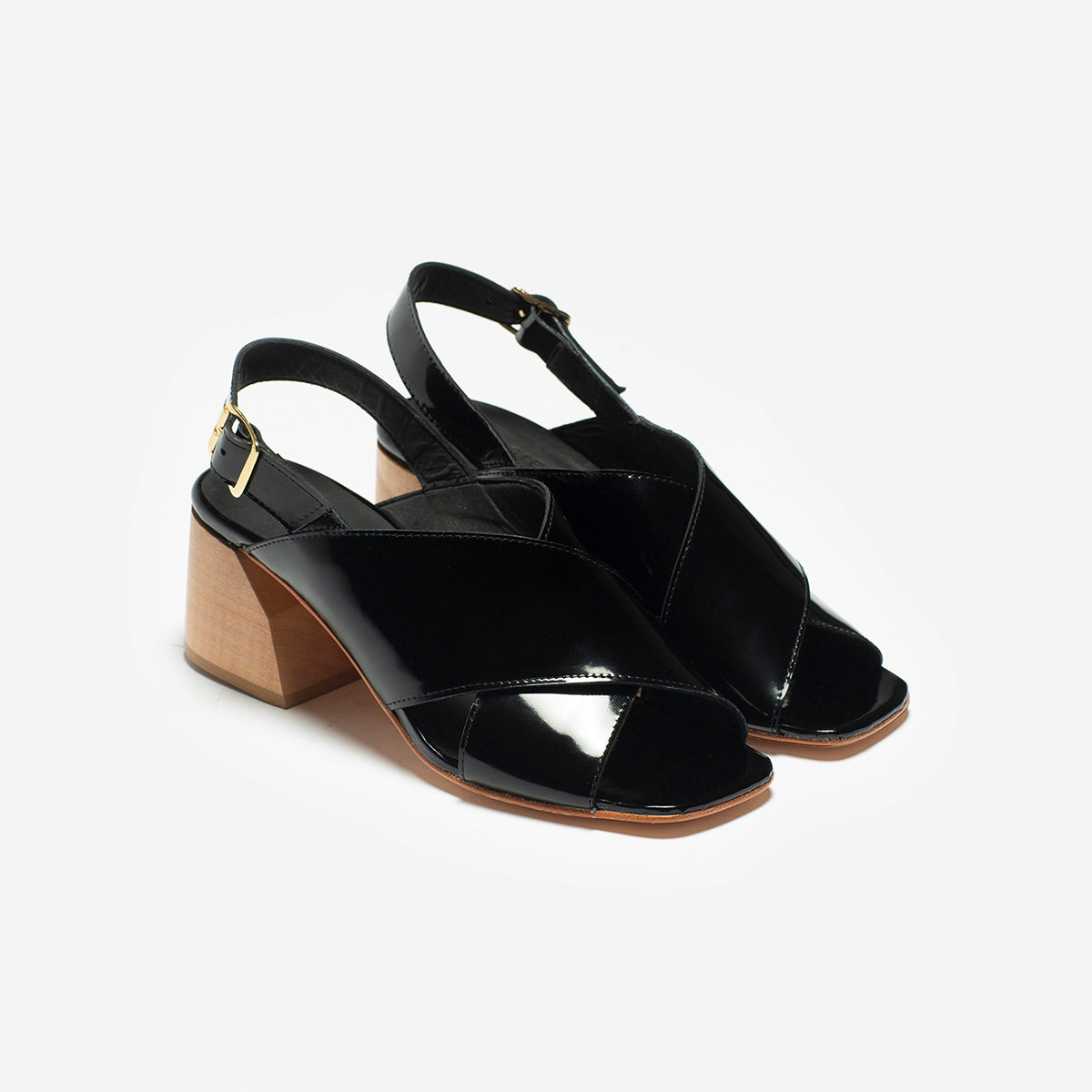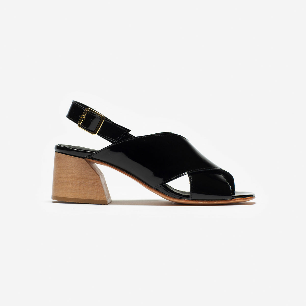 Sandalia Figo Charol Negro, interior y plantilla de cuero, taco 5.5 cm.