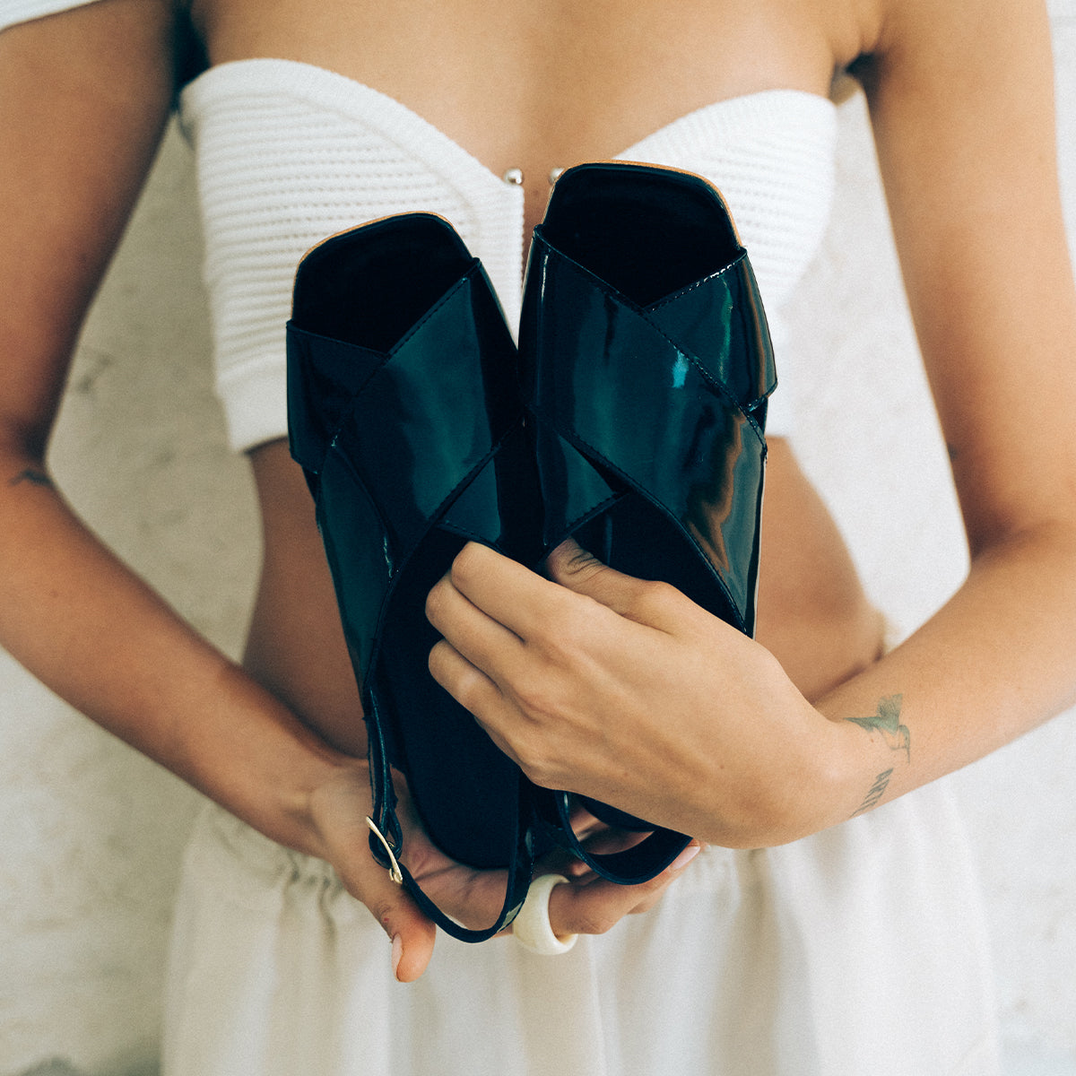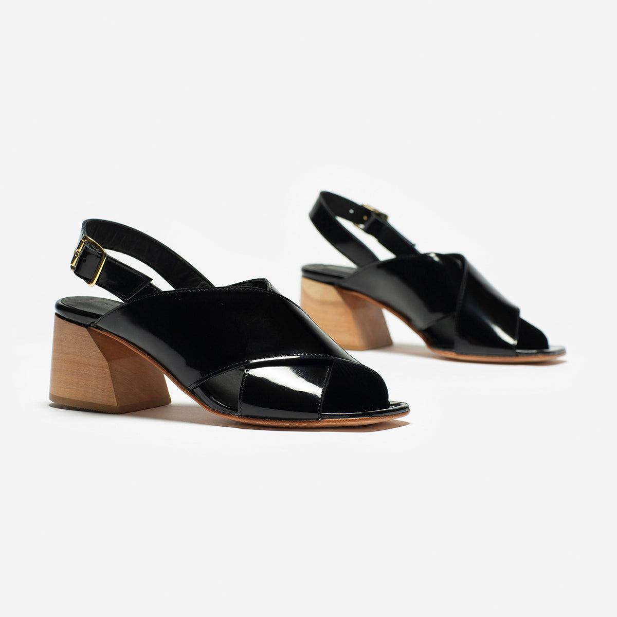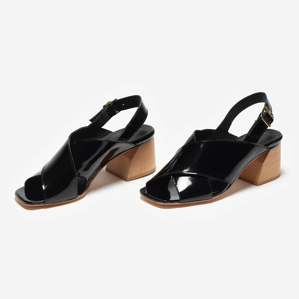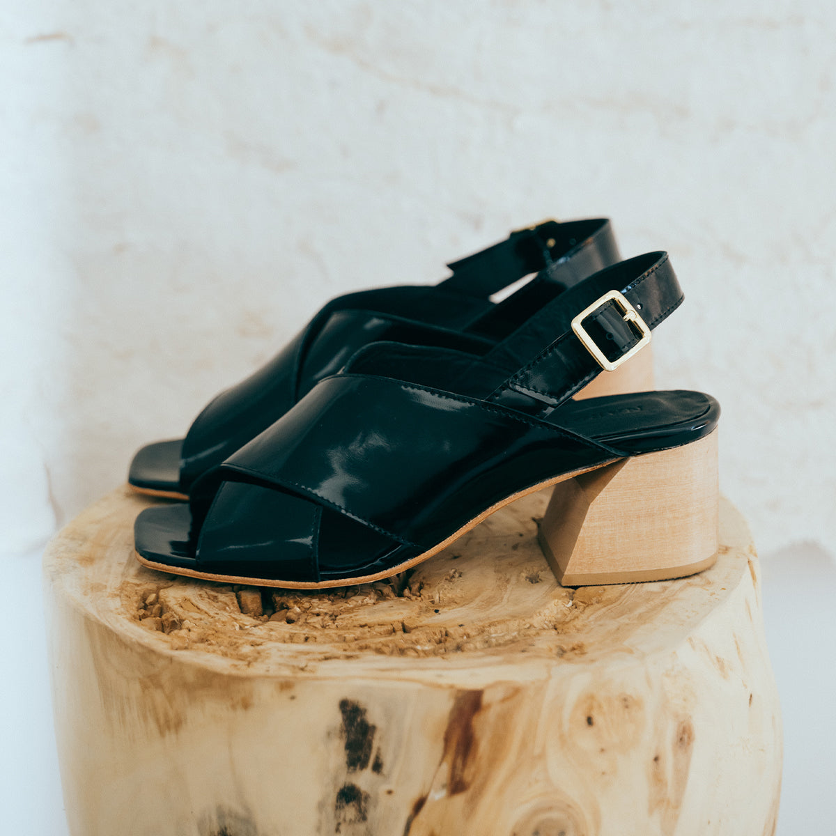 Sandalia Figo Charol Negro, interior y plantilla de cuero, taco 5.5 cm.