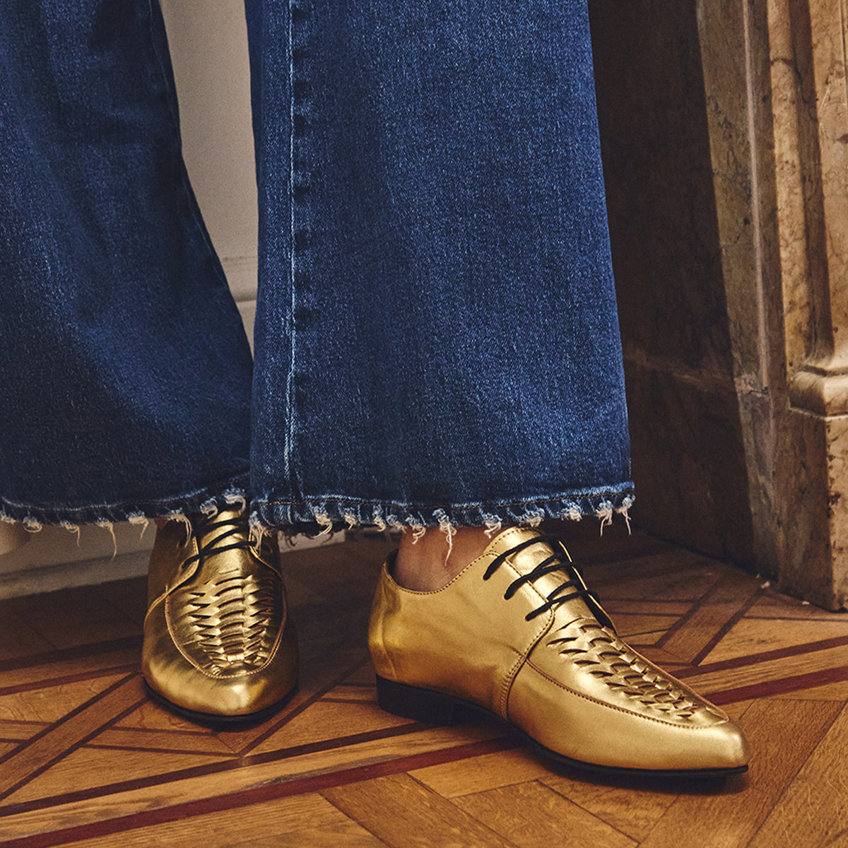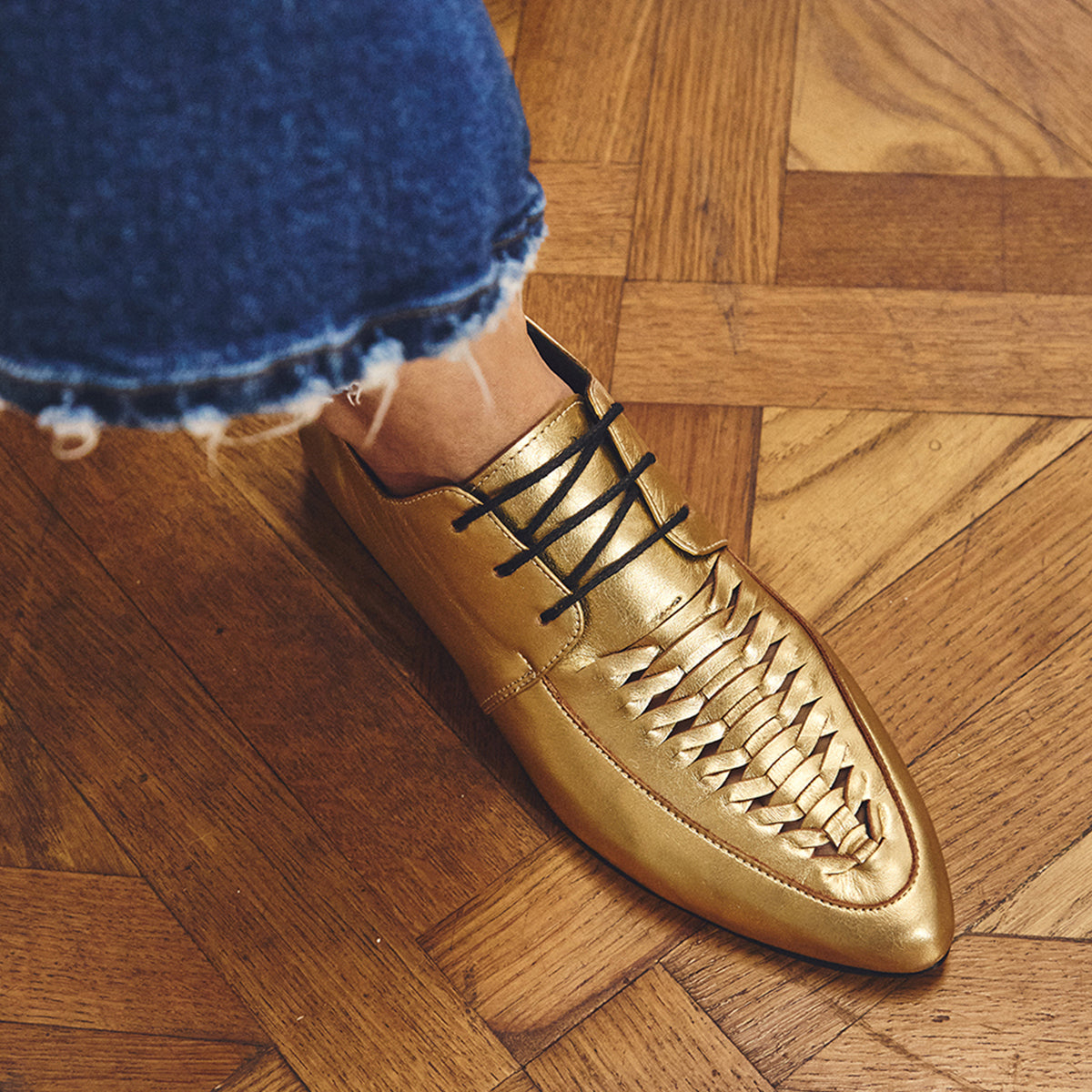 Abotinado Frederick Oro, interior y plantilla de cuero.