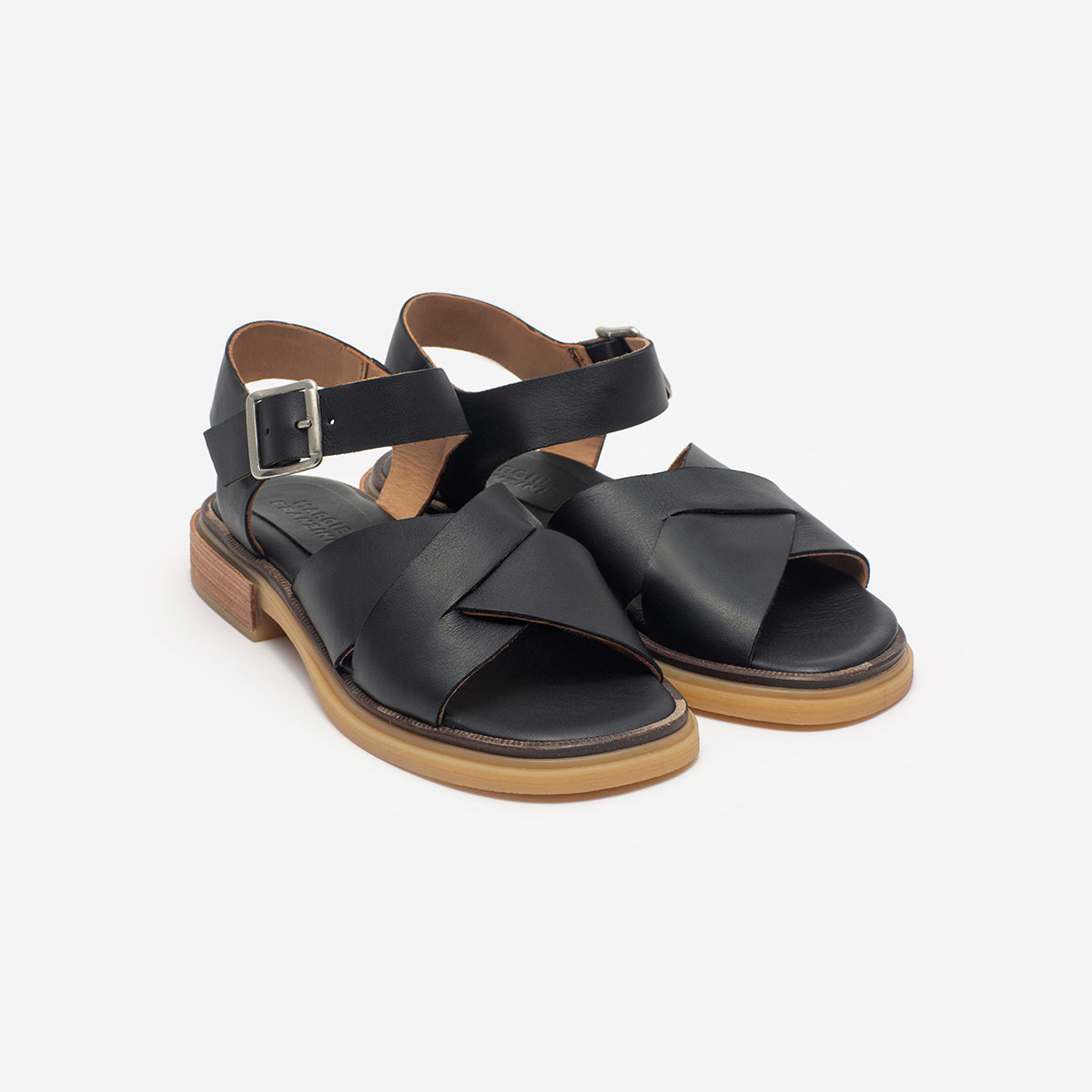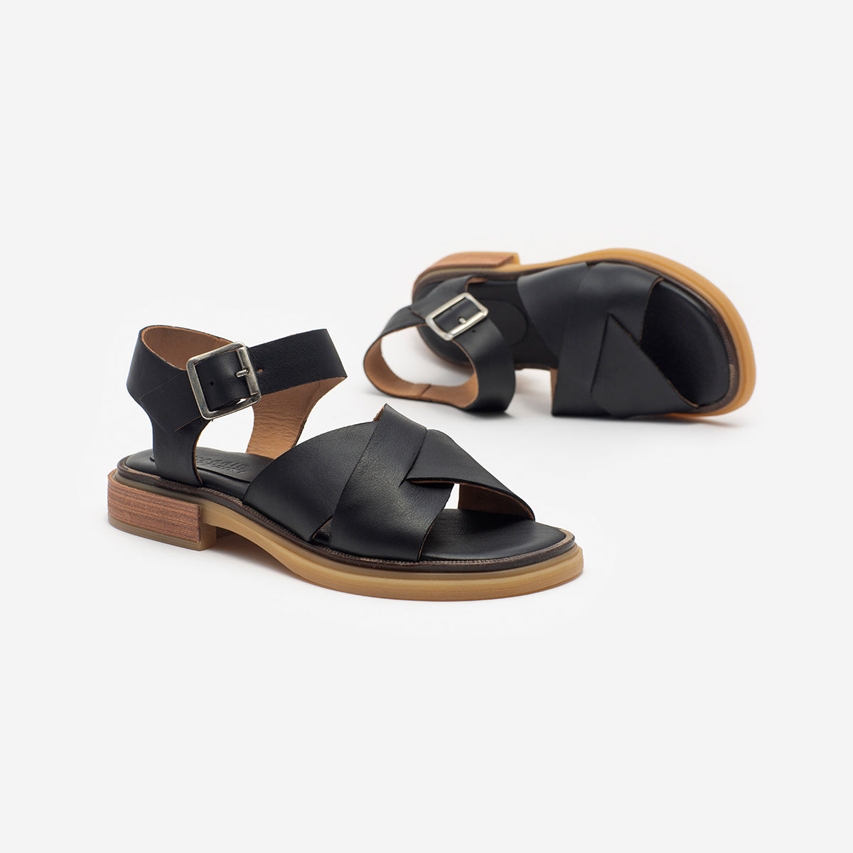 Sandalia Fuyu Negro, base 2 cm, interior y plantilla de cuero.