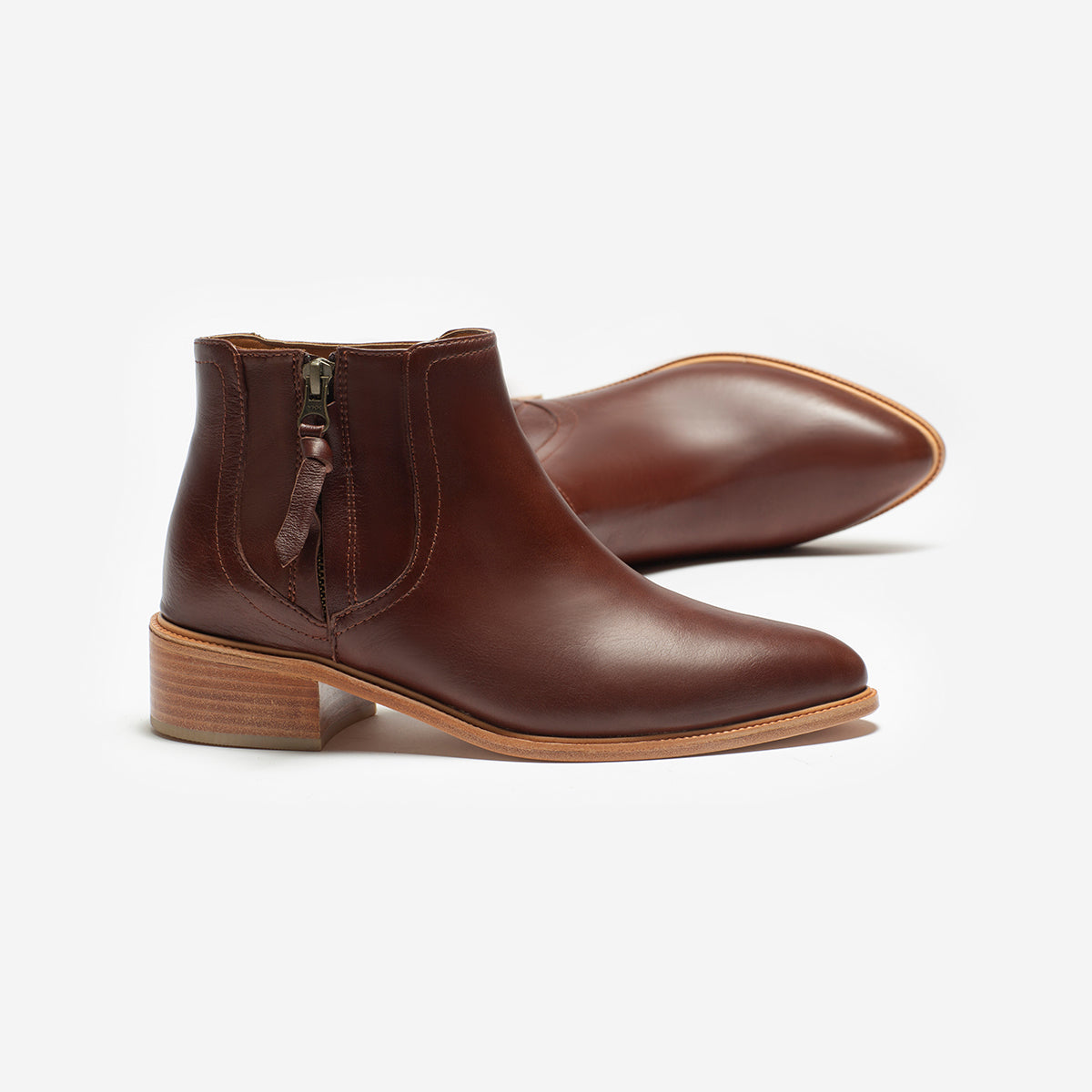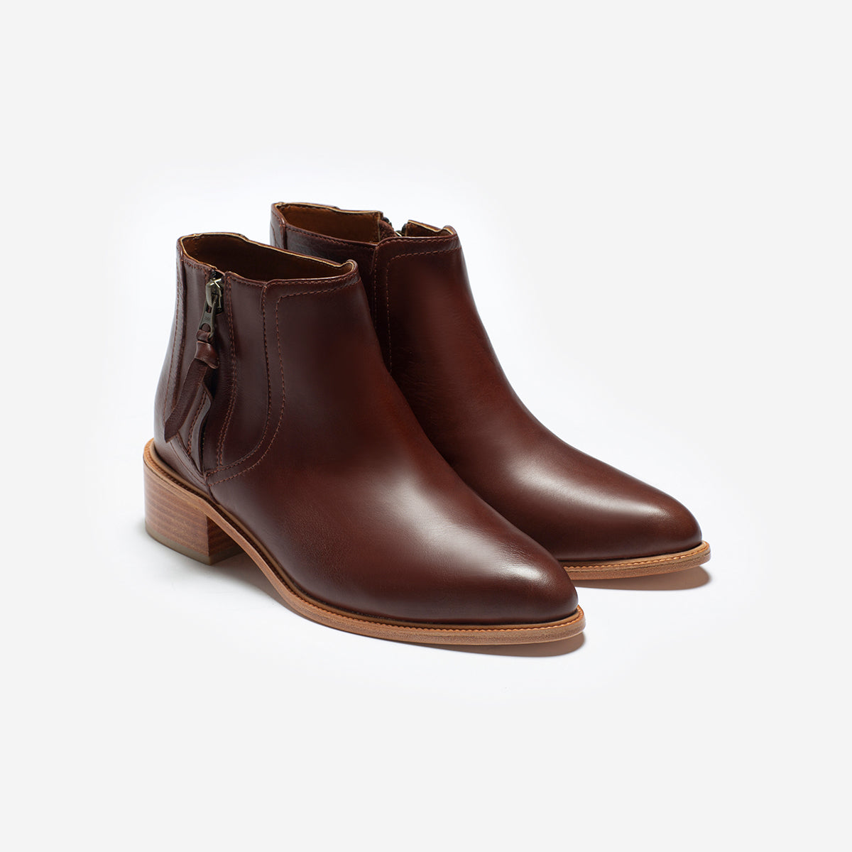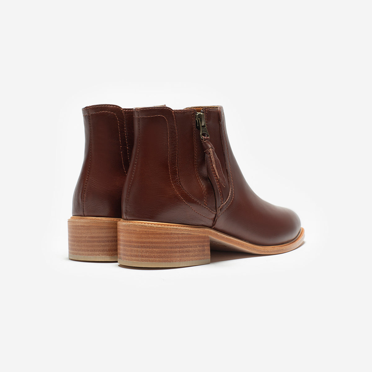 Botineta Harvey Chocolate, base 3 cm, exterior, interior y plantilla de cuero.