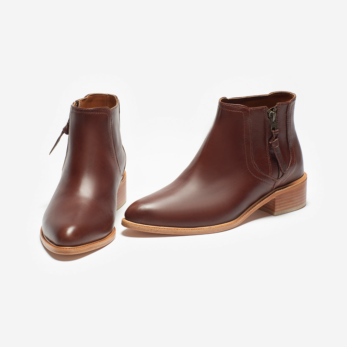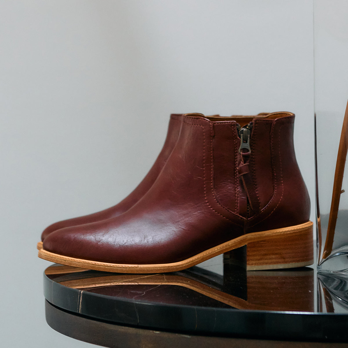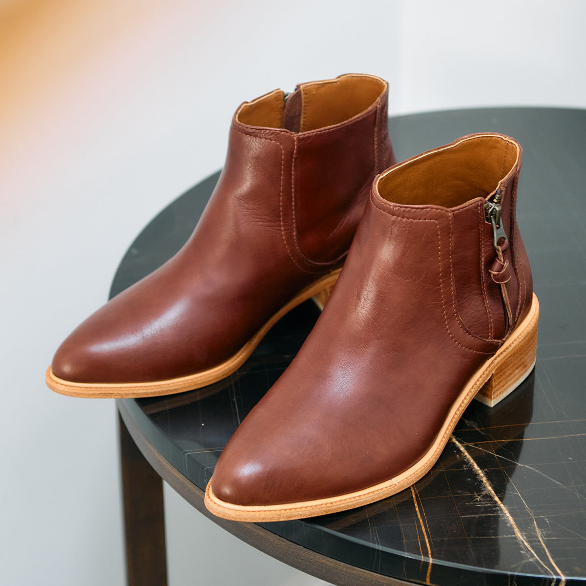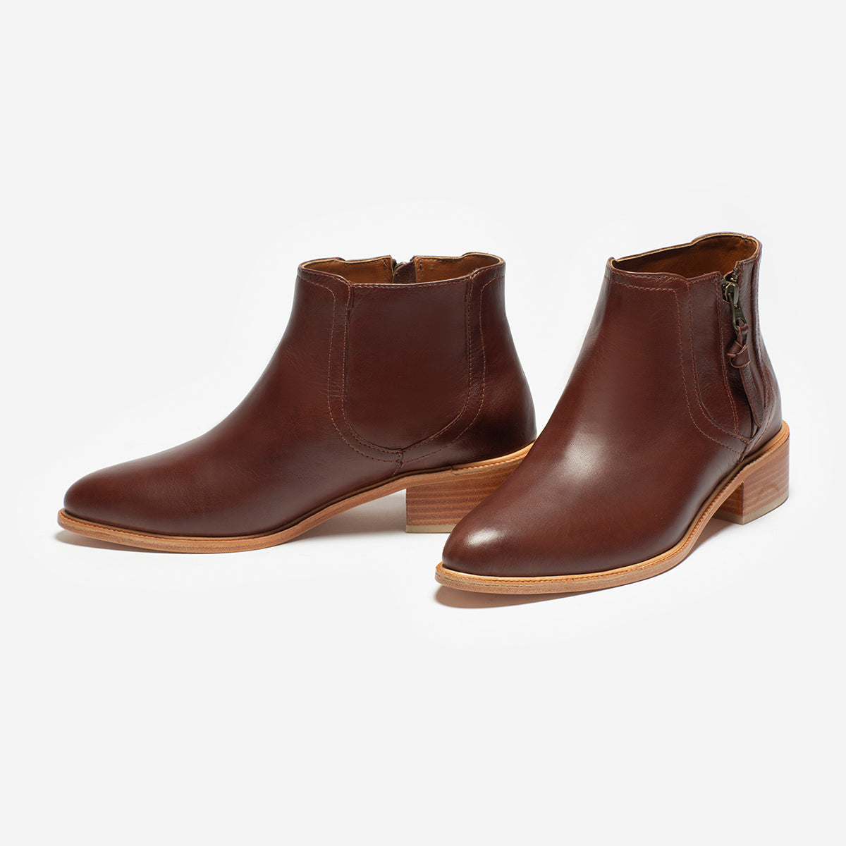 Botineta Harvey Chocolate, base 3 cm, exterior, interior y plantilla de cuero.