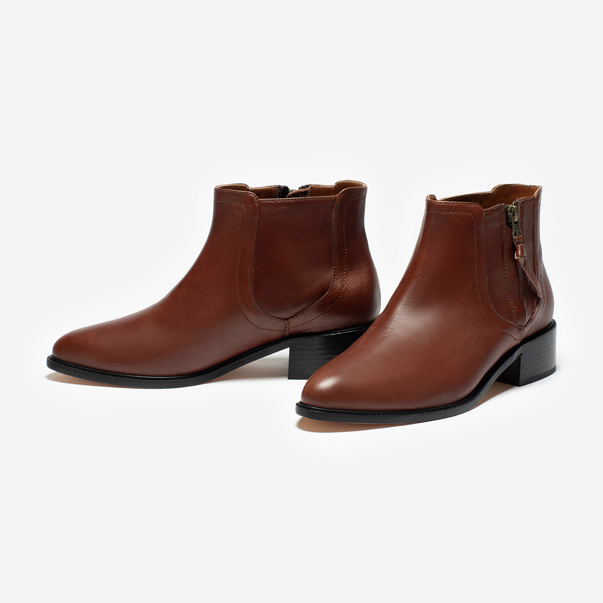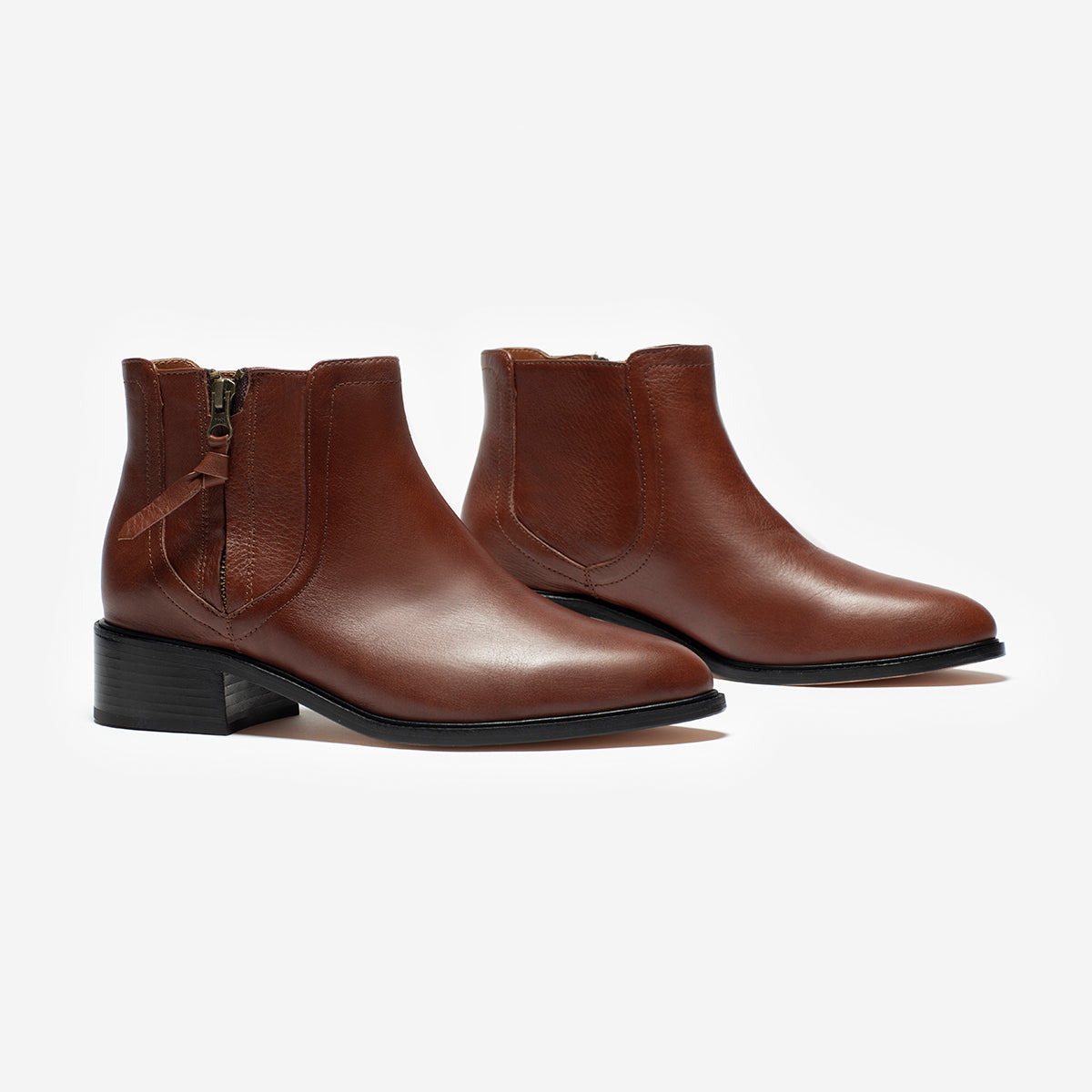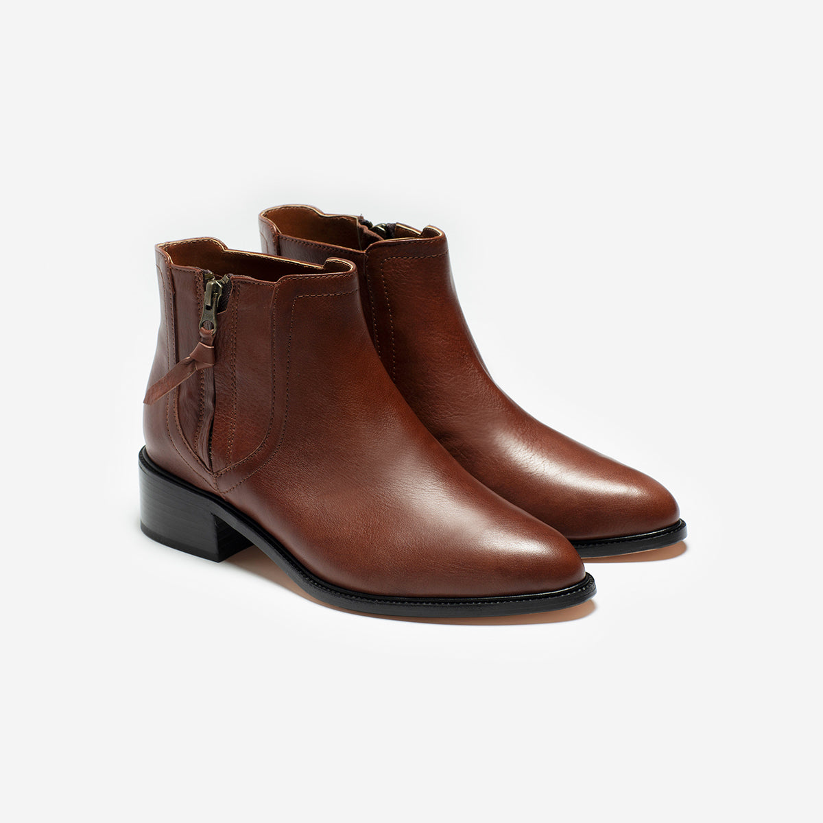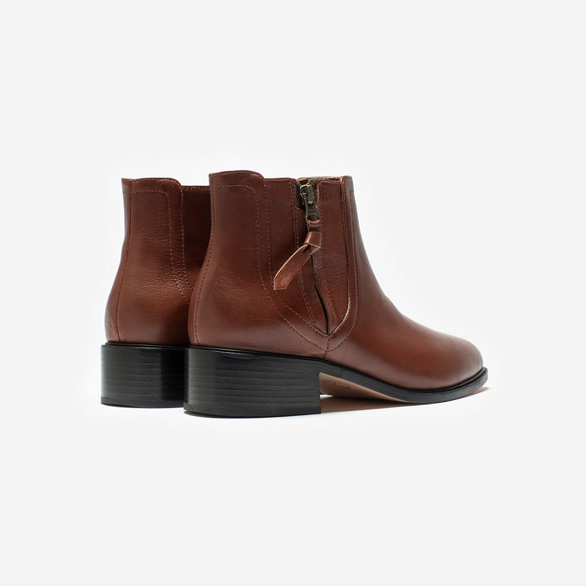 Botineta Harvey Chocolate Black, base 3 cm, exterior, interior y plantilla de cuero.