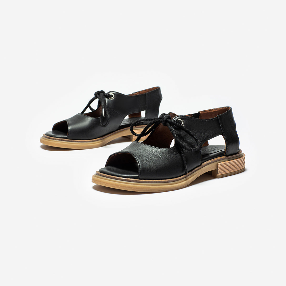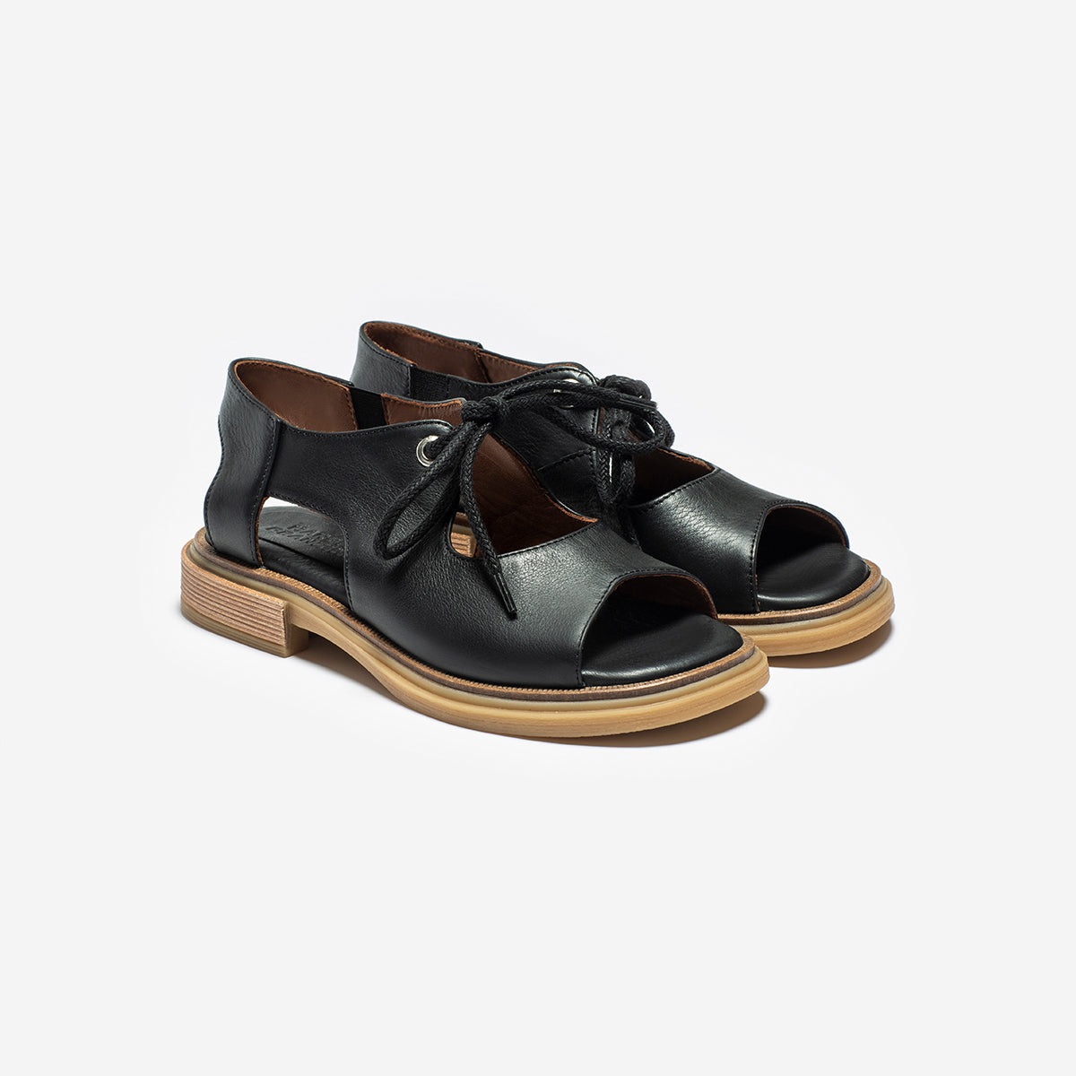 Abotinado Ishi Negro con cordón, base 2 cm, interior y plantilla de cuero.