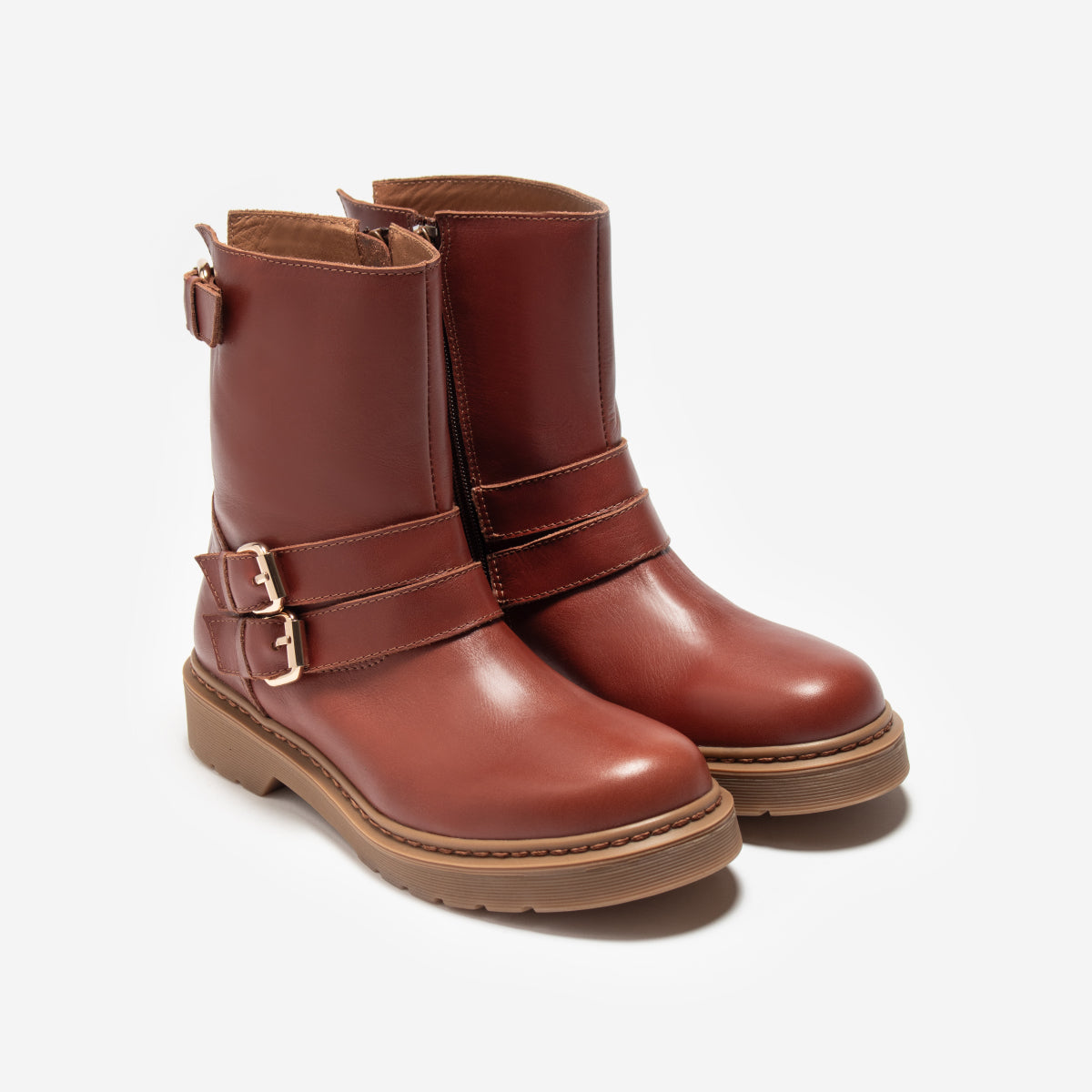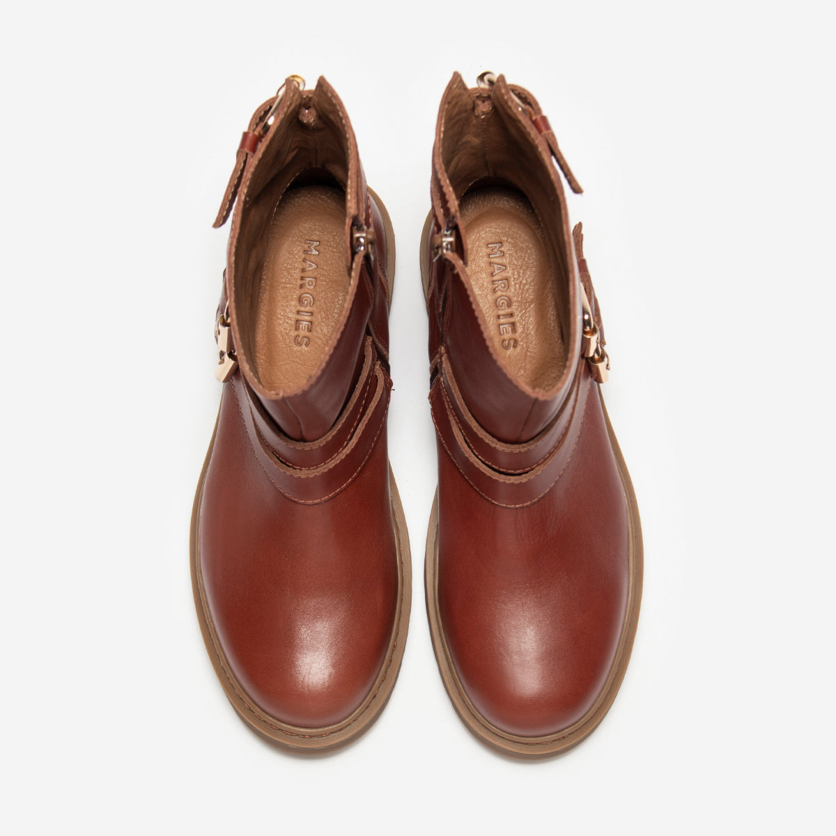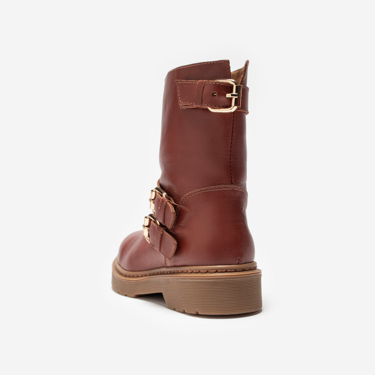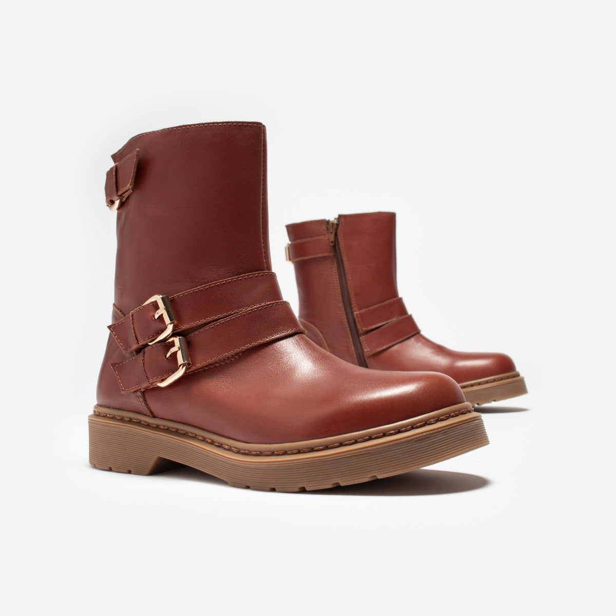 Bota Jansen Almendra, base goma 2 cm, exterior, interior y plantilla de cuero.