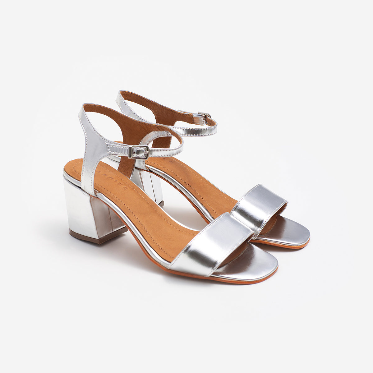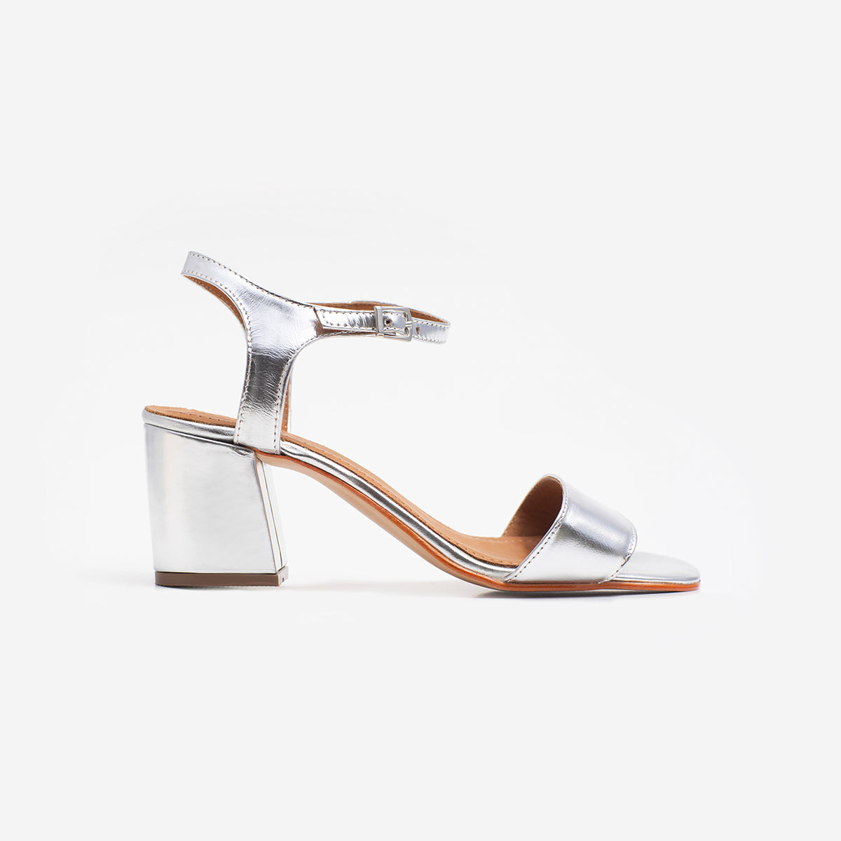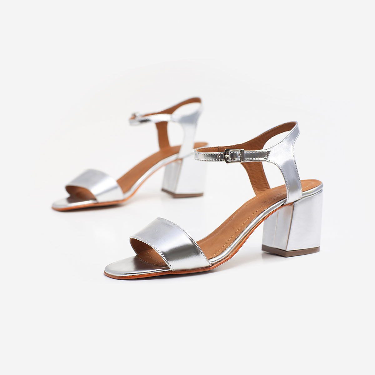Sandalia Kimi plateada, interior y plantilla de cuero, base de 7 cm.