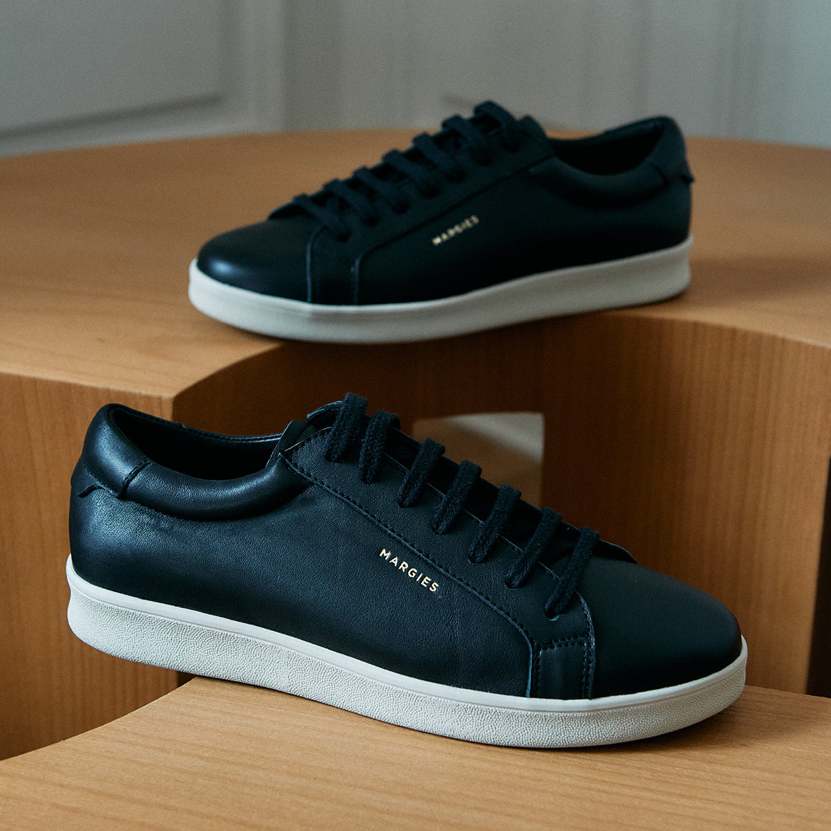 Sneakers Leda Negro, exterior, interior y plantilla de cuero.