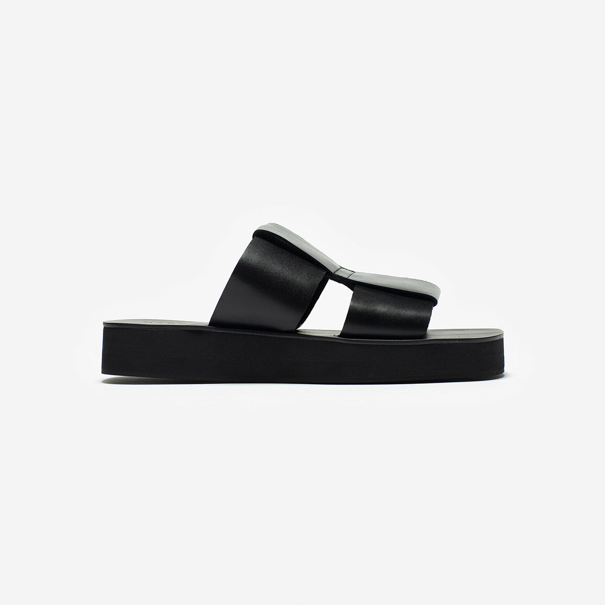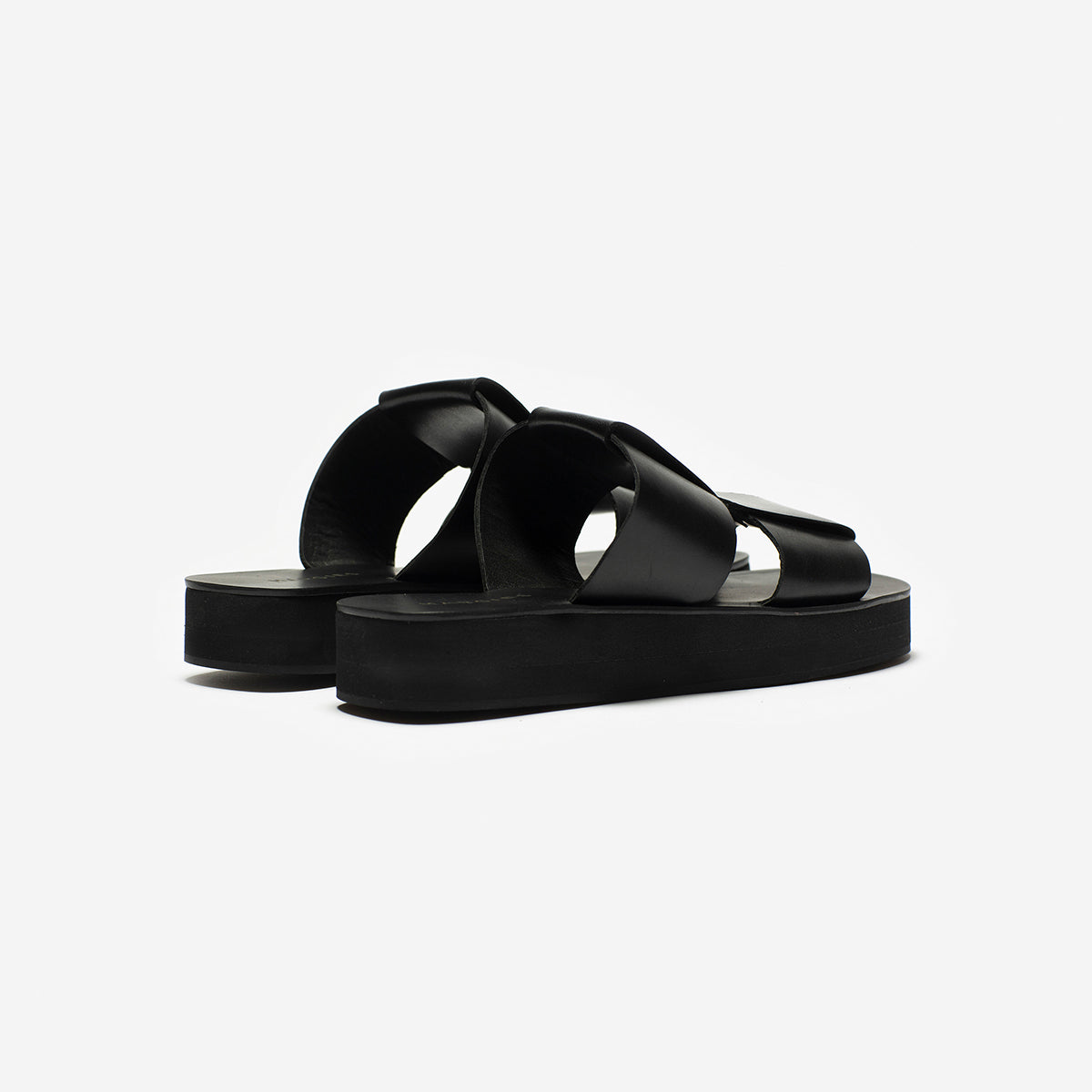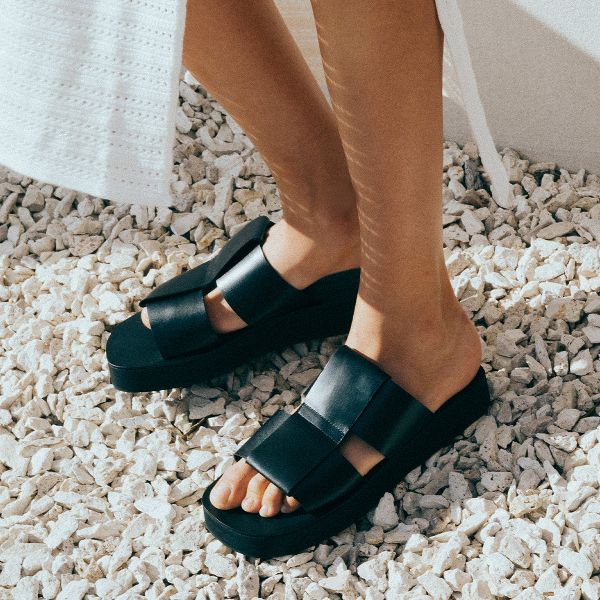 Sandalia Lisboa cuero negro, base de goma de 3cm.