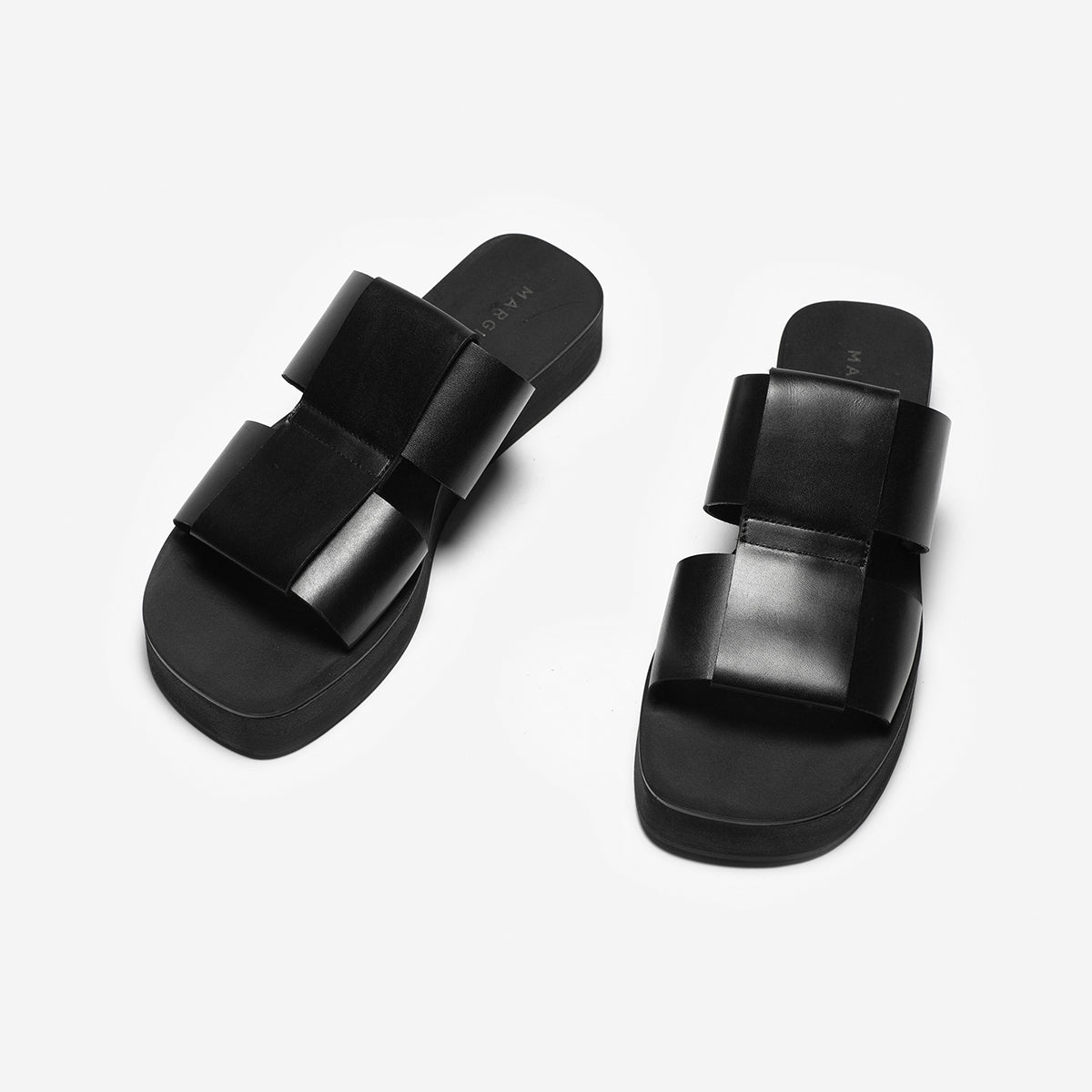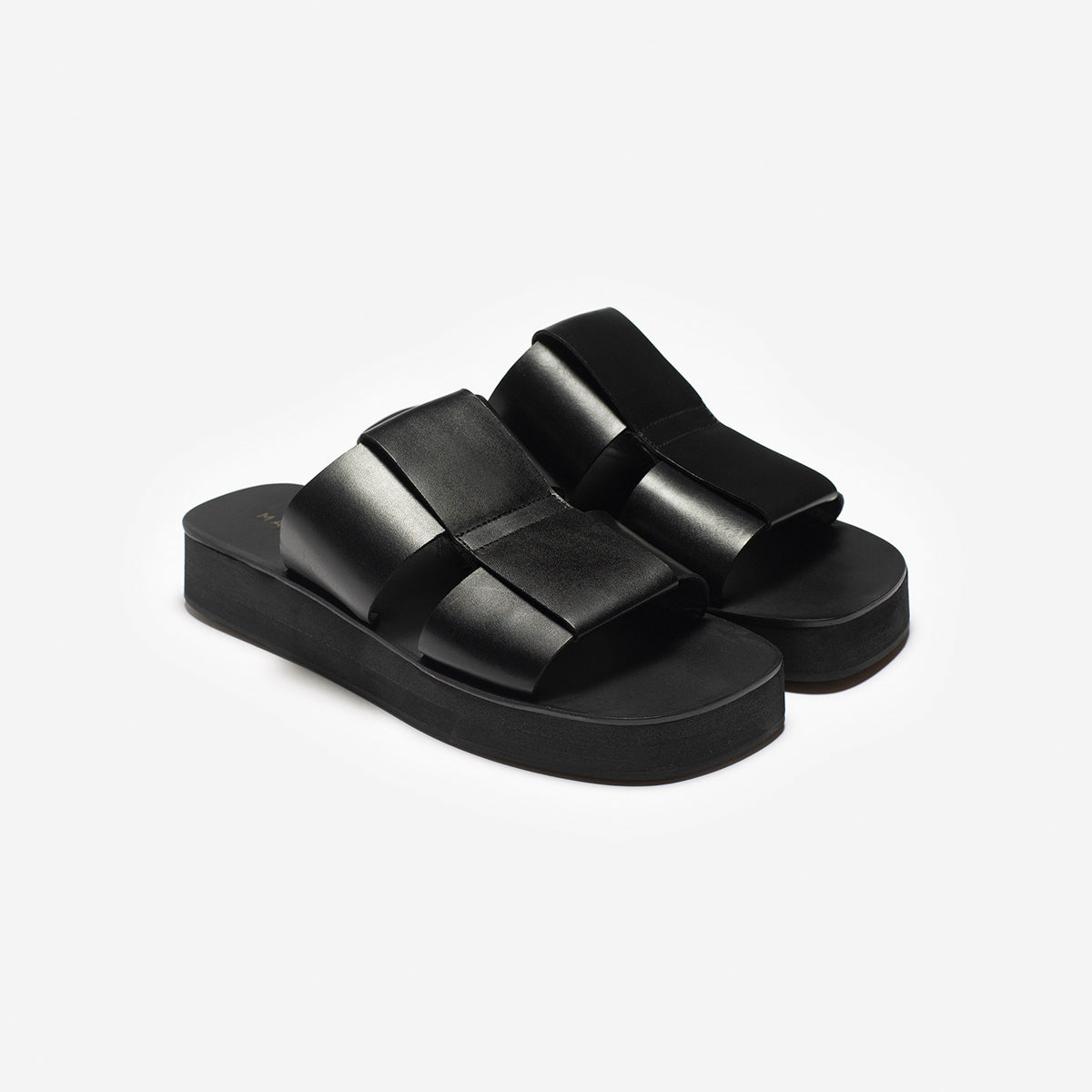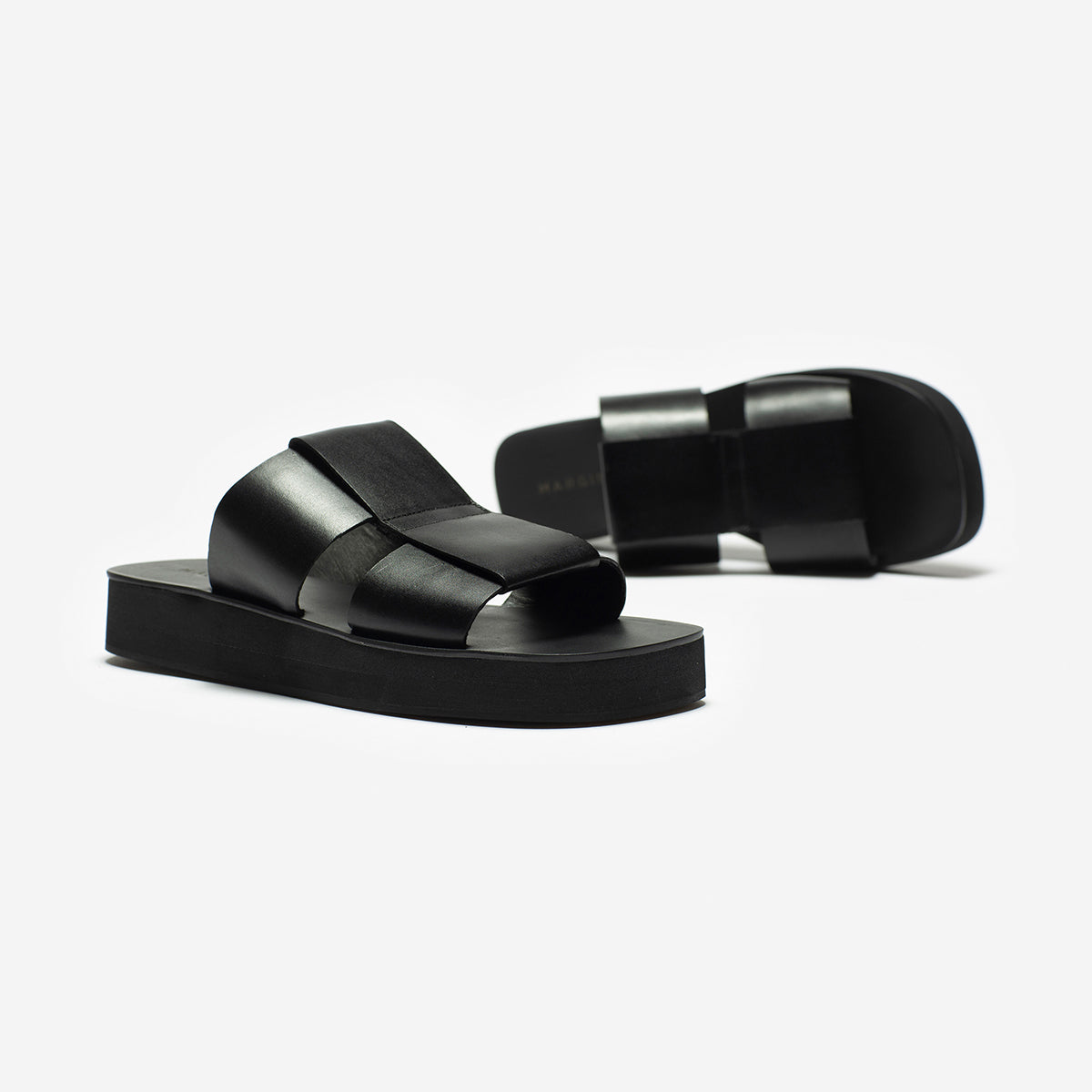 Sandalia Lisboa cuero negro, base de goma de 3cm.