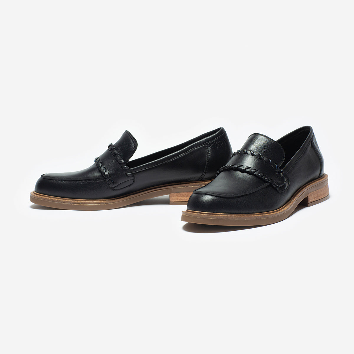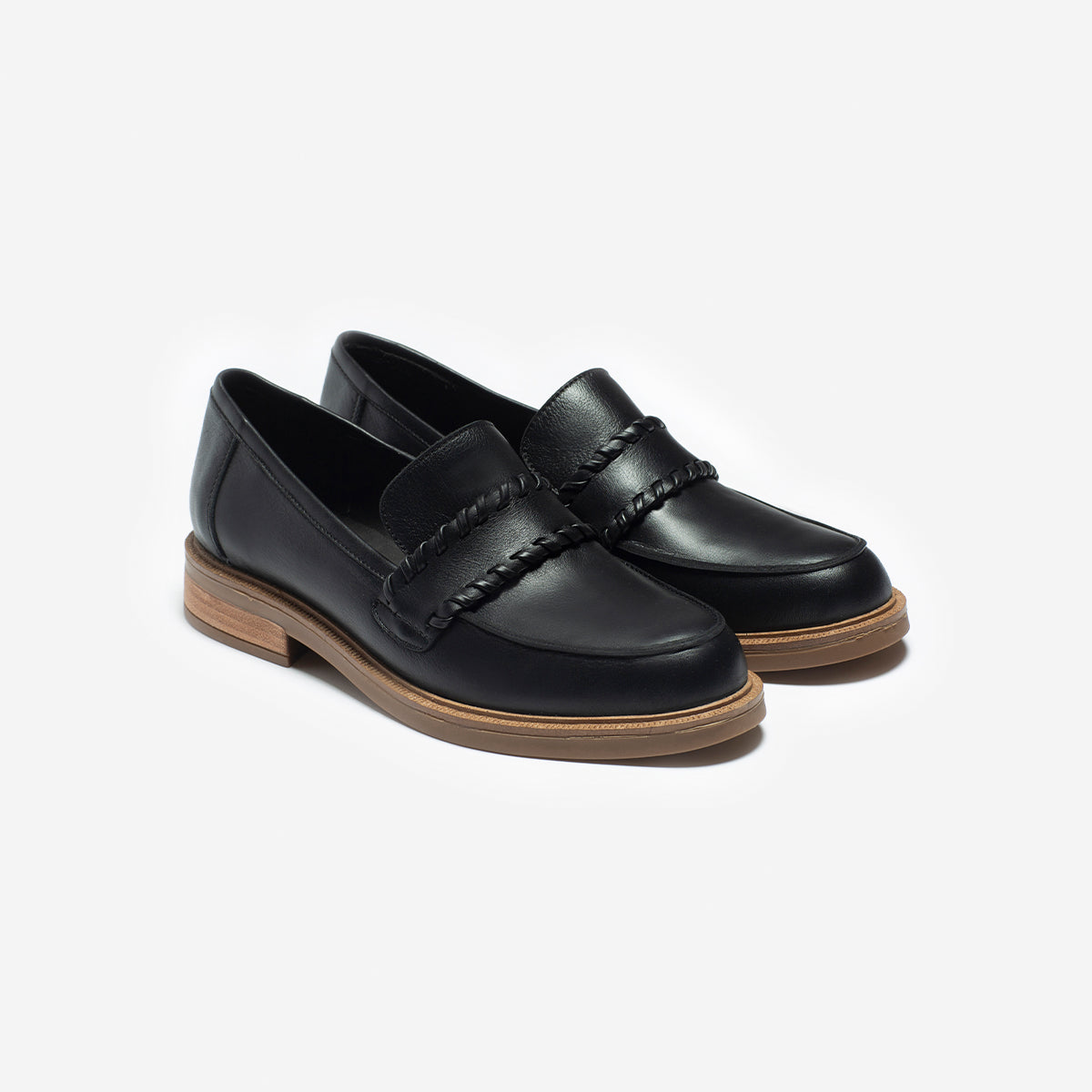 Mocasín Lyra Negro, exterior, interior y plantilla de cuero.