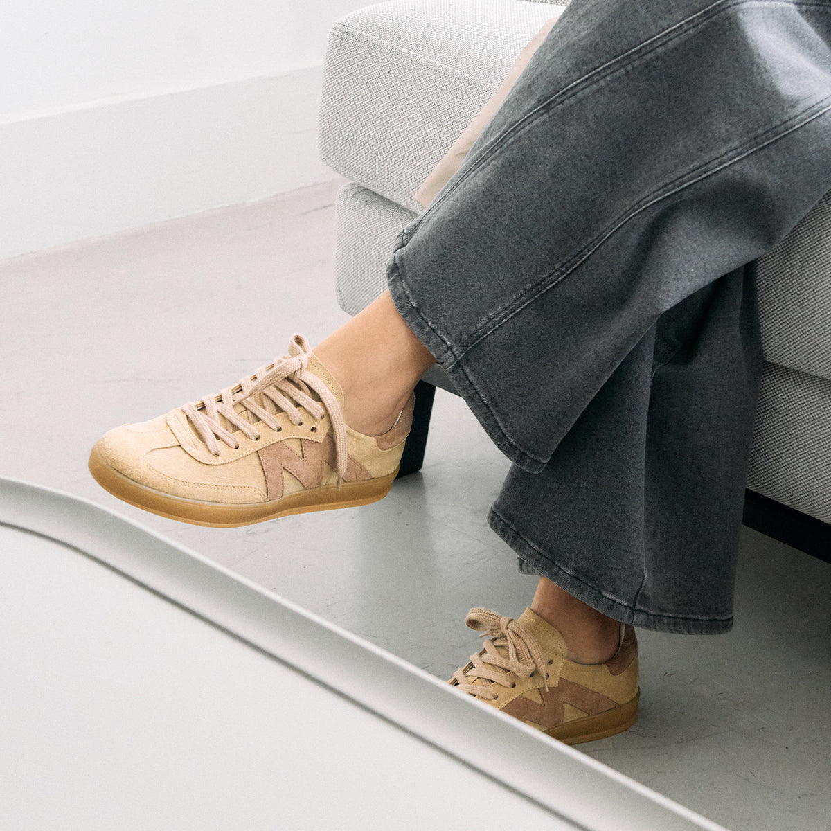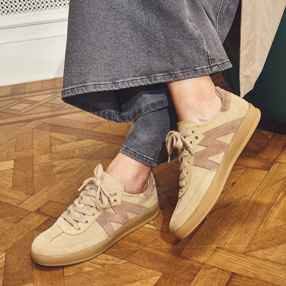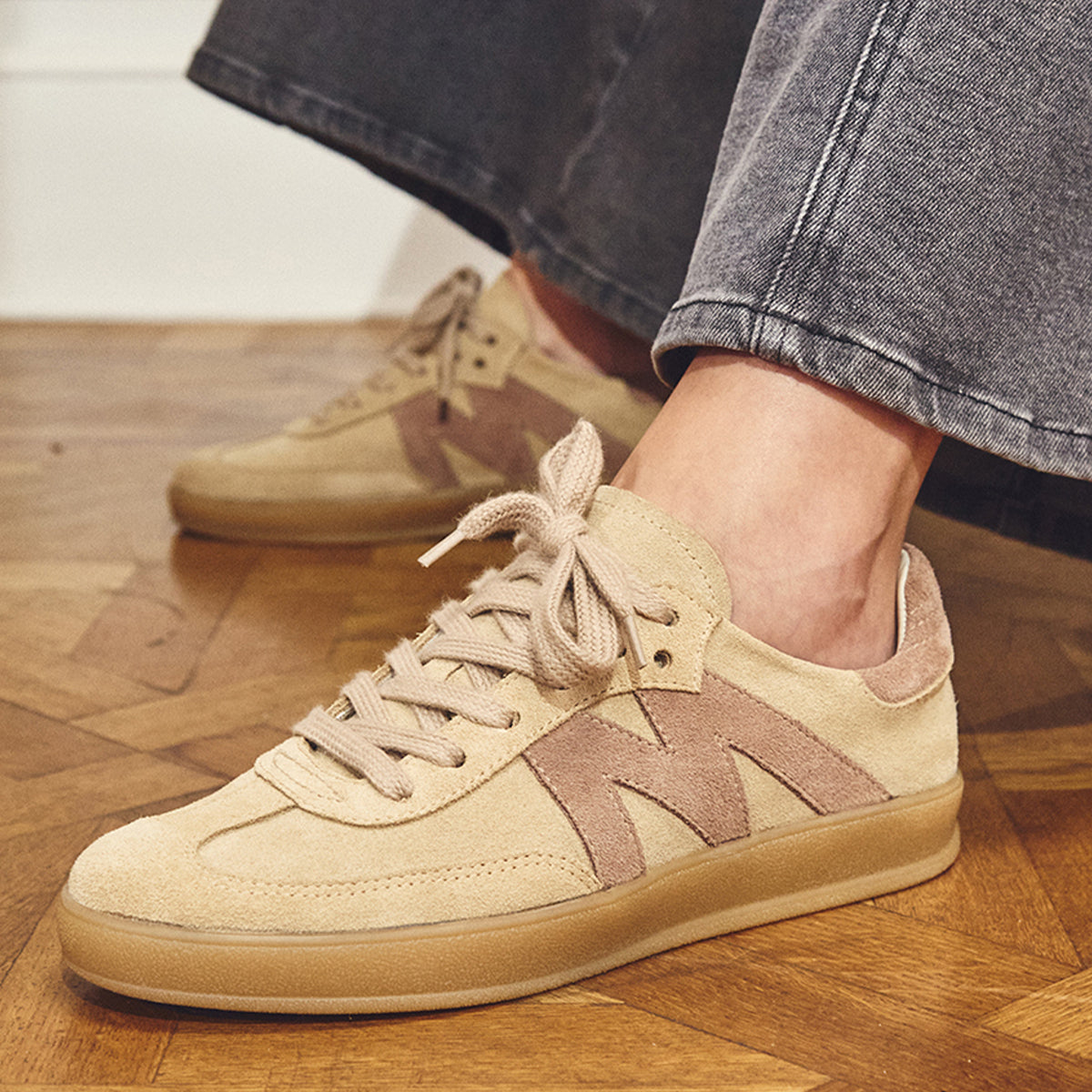 Sneakers Mab Camel, exterior, interior y plantilla de cuero.