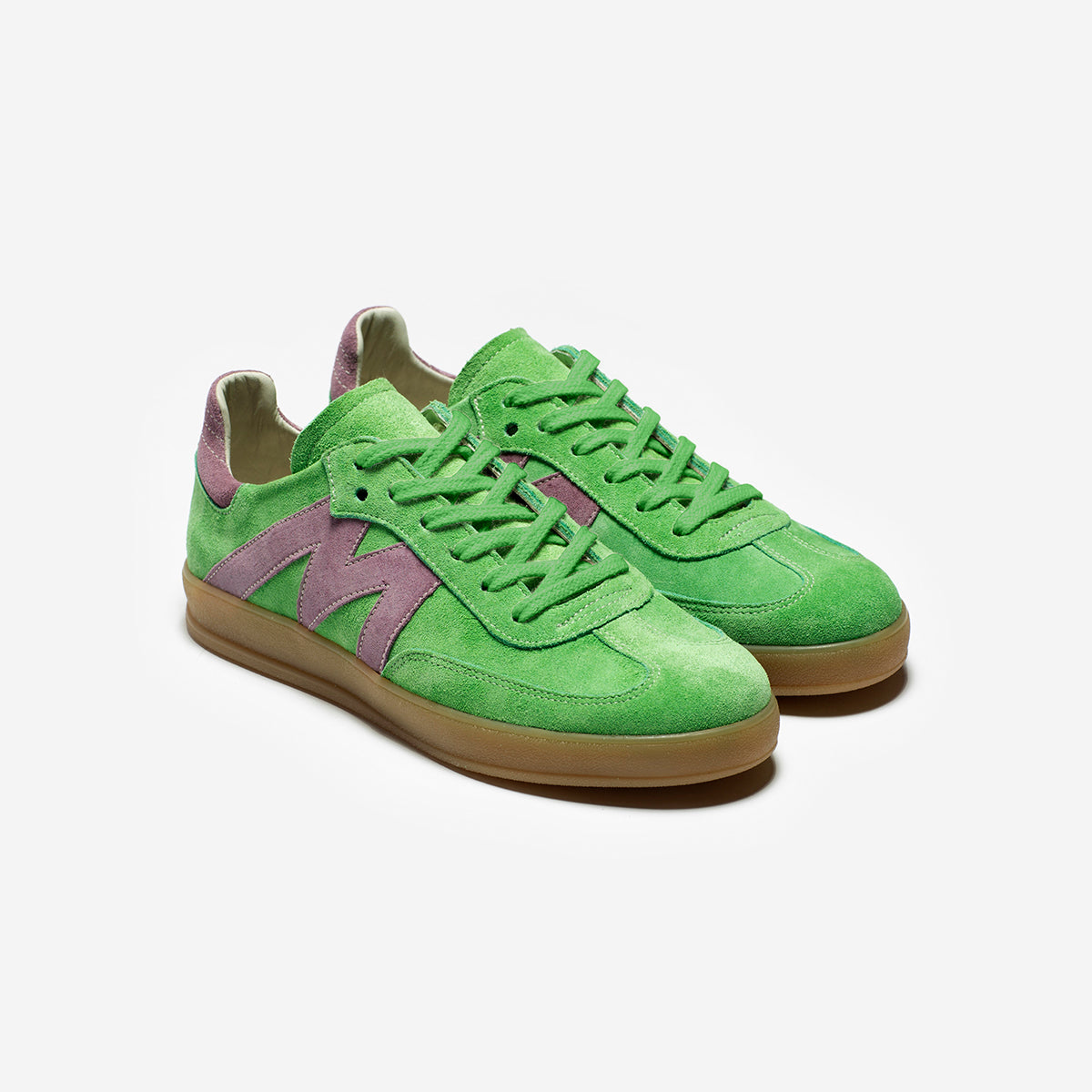 Sneakers Mab Verde, exterior, interior y plantilla de cuero.