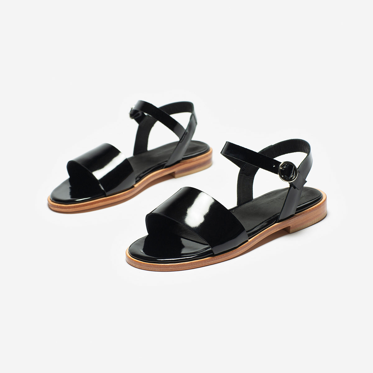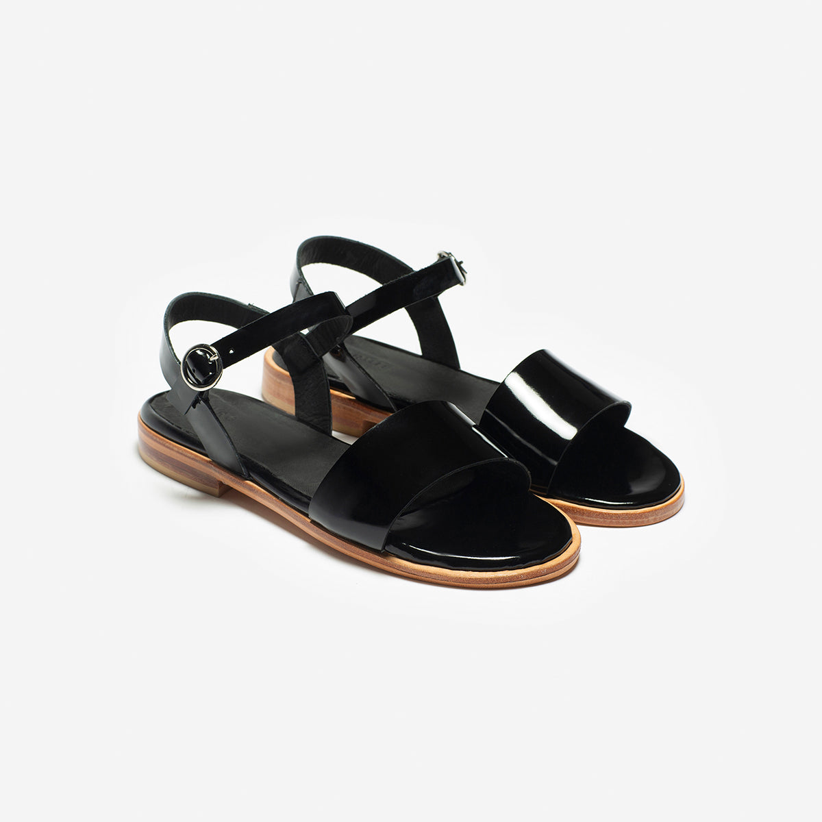 Sandalia Maiko Negro, interior y plantilla de cuero.