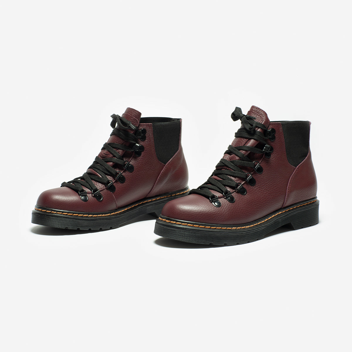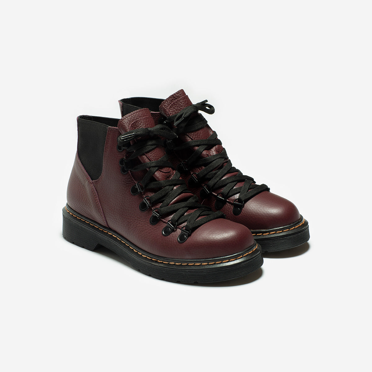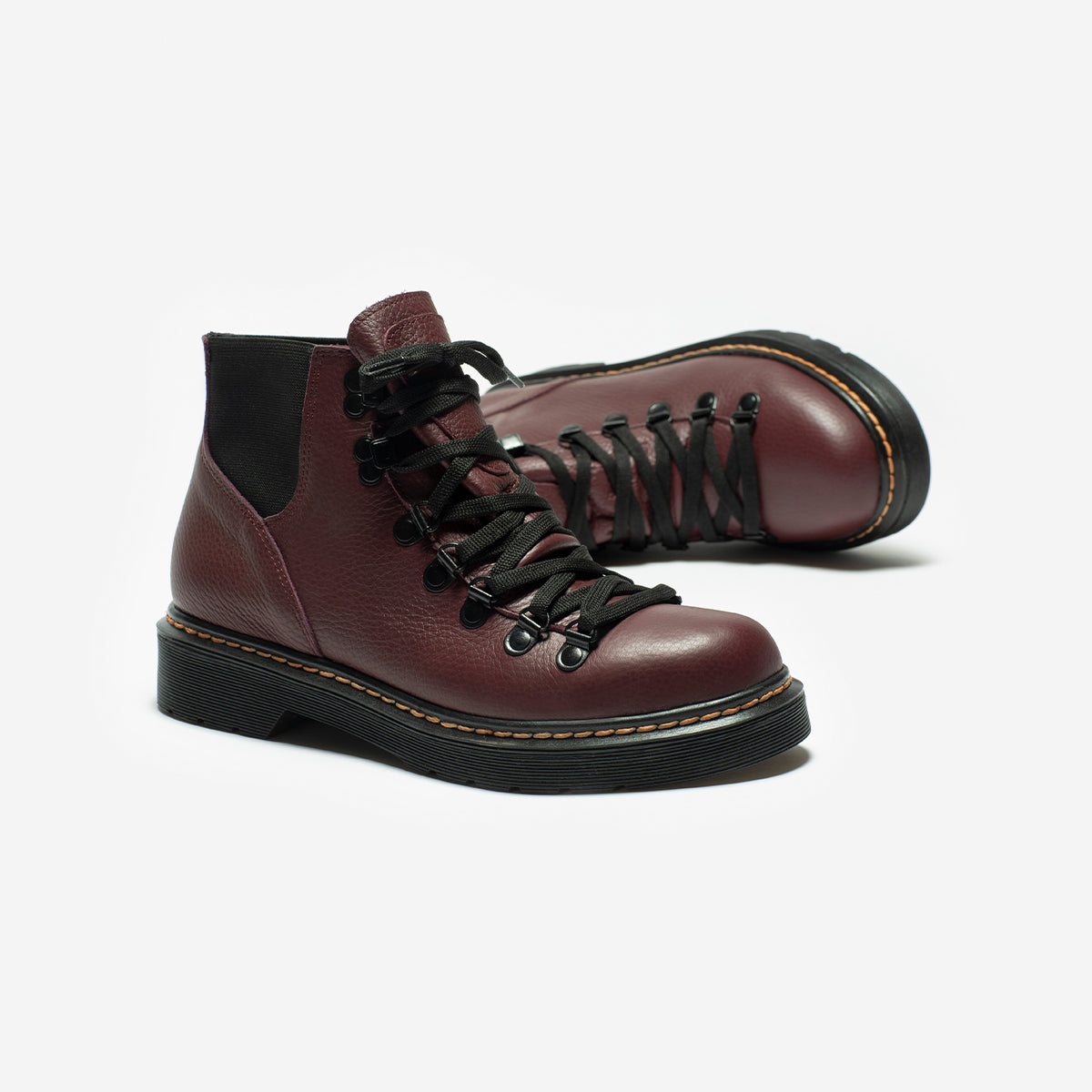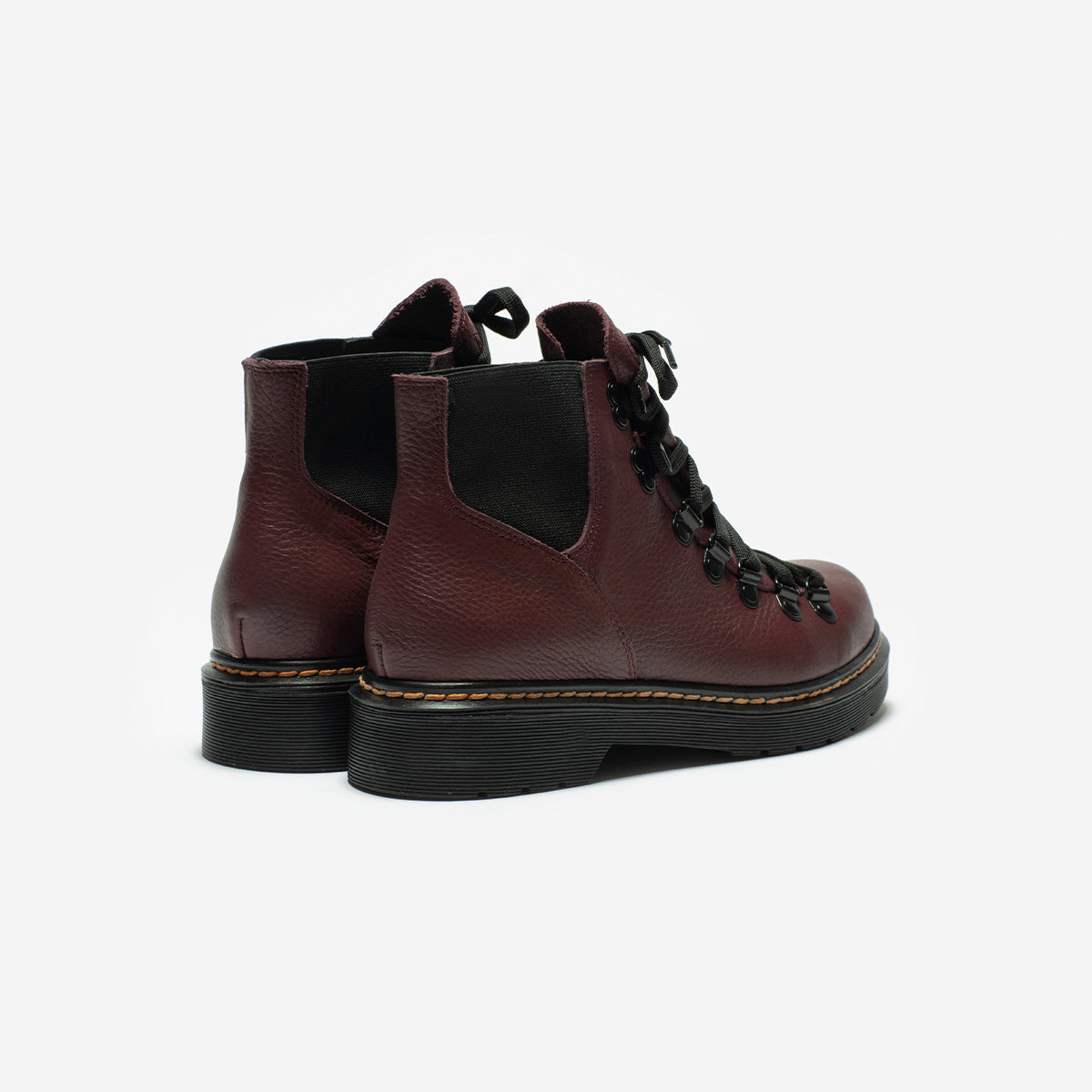 Borcego Mayenne Borgoña, base goma 3 cm, interior y plantilla de cuero.