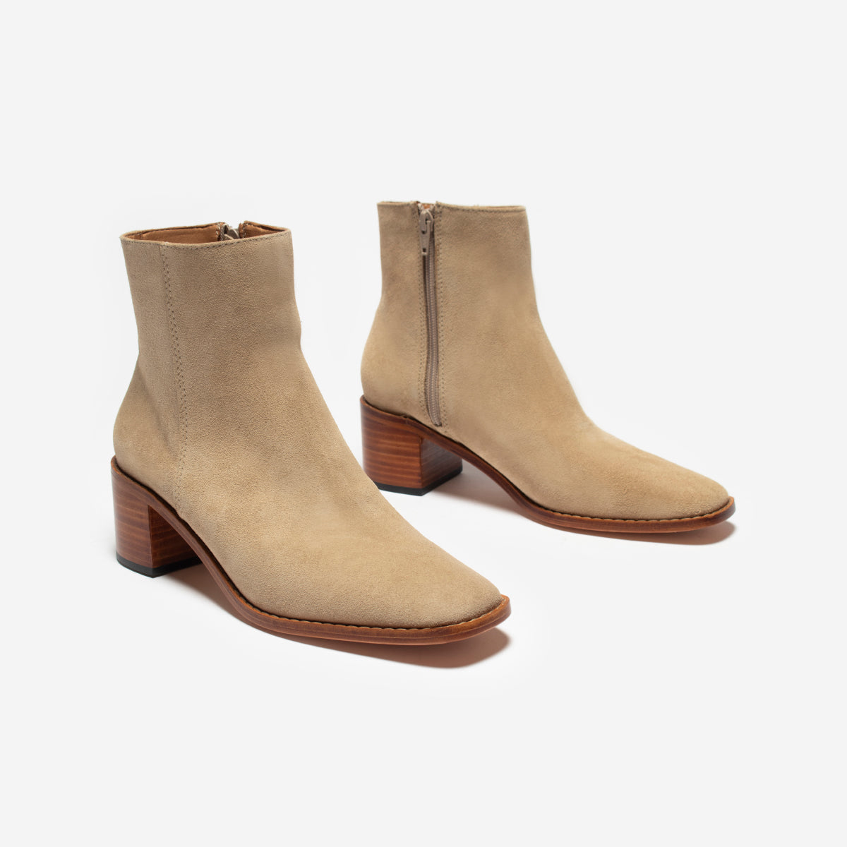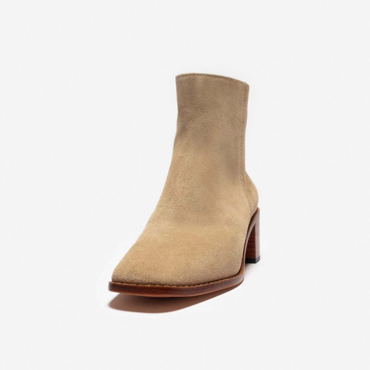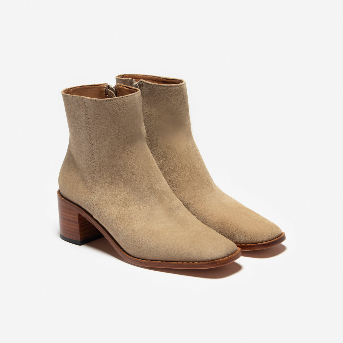 Bota Nansem Nude, exterior, interior y plantilla de cuero. Taco de madera de 5 cm de alto