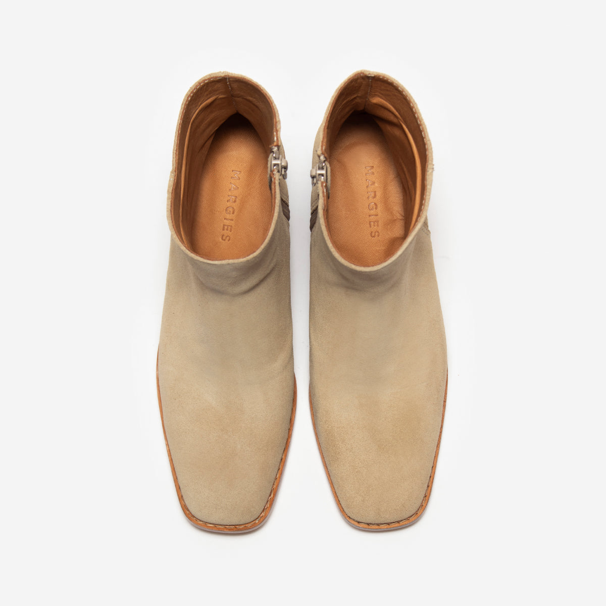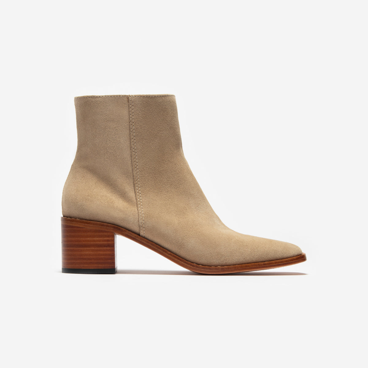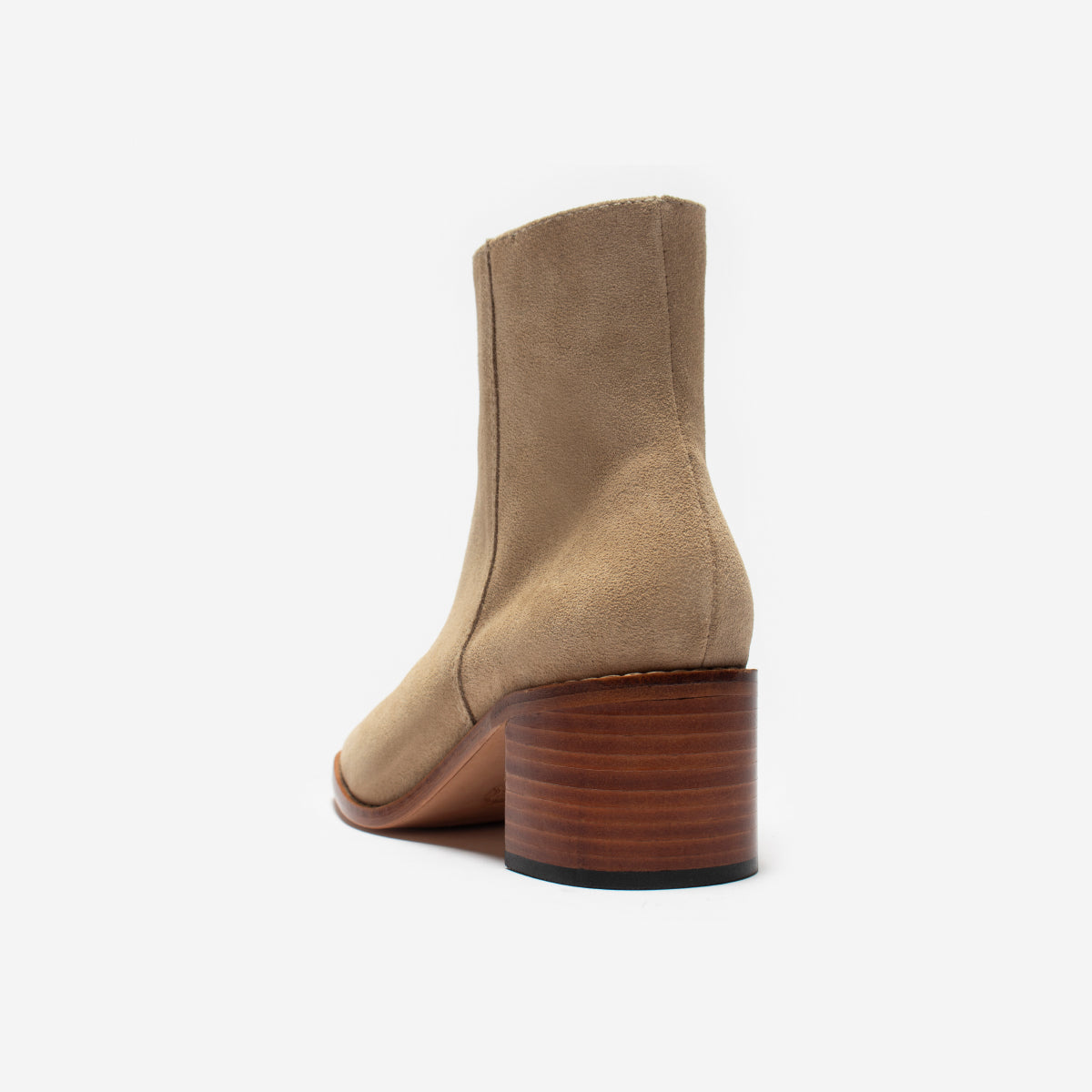 Bota Nansem Nude, exterior, interior y plantilla de cuero. Taco de madera de 5 cm de alto