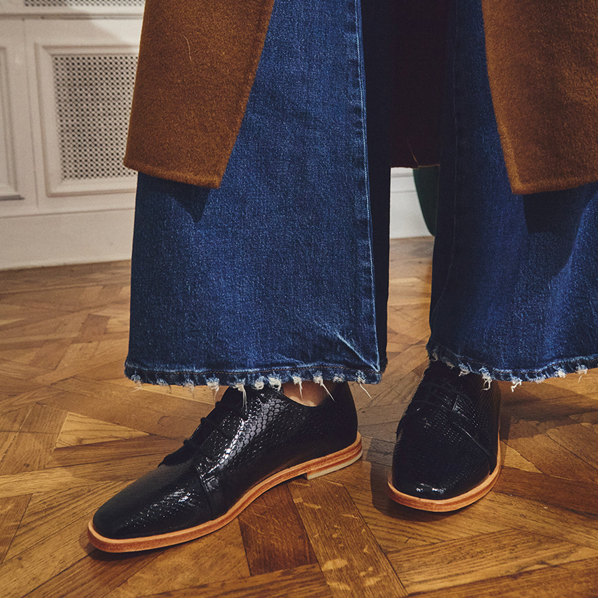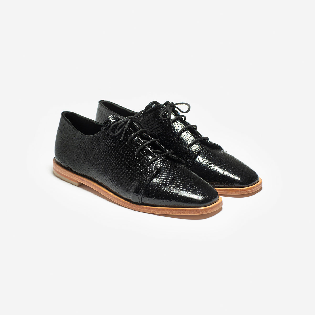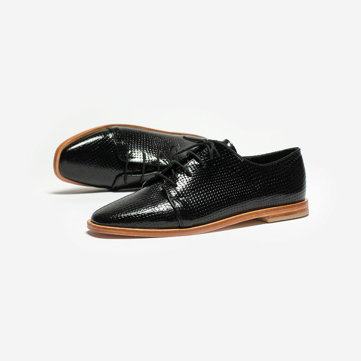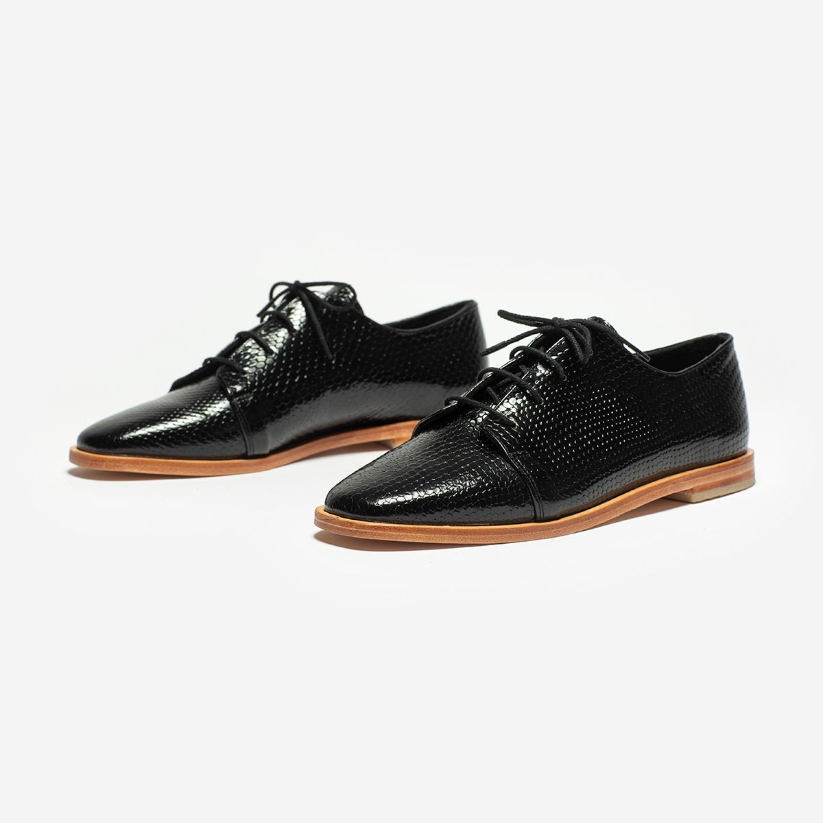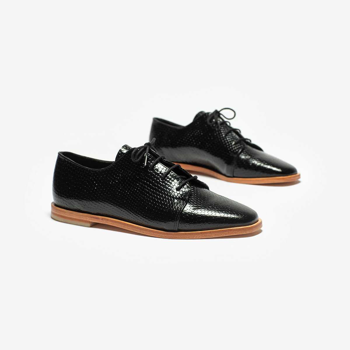 Abotinado Ofelia Charol Negro, interior y plantilla de cuero.
