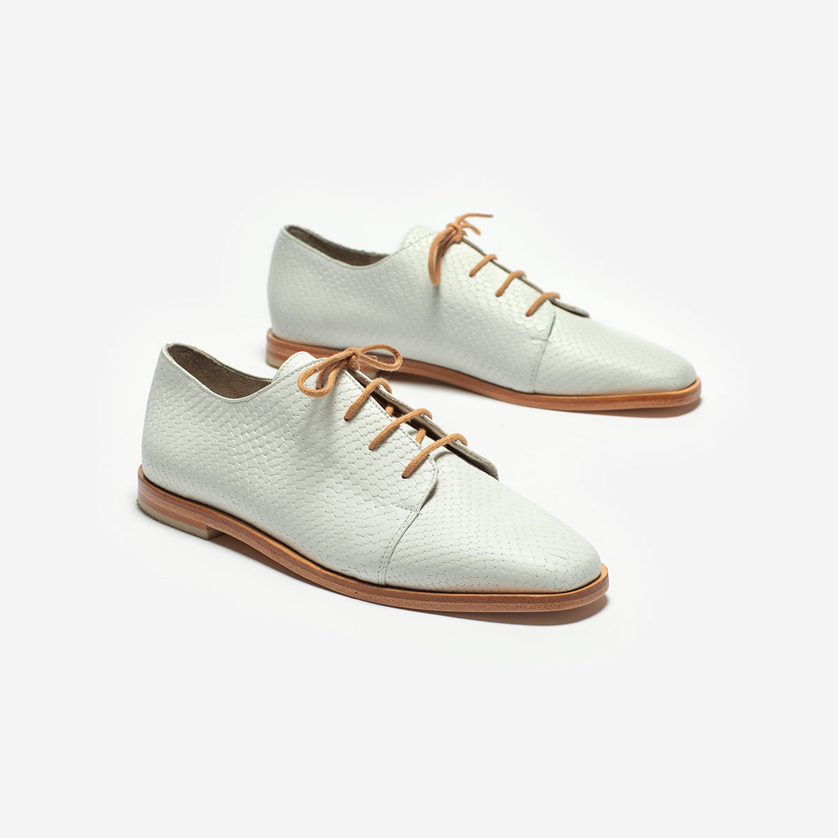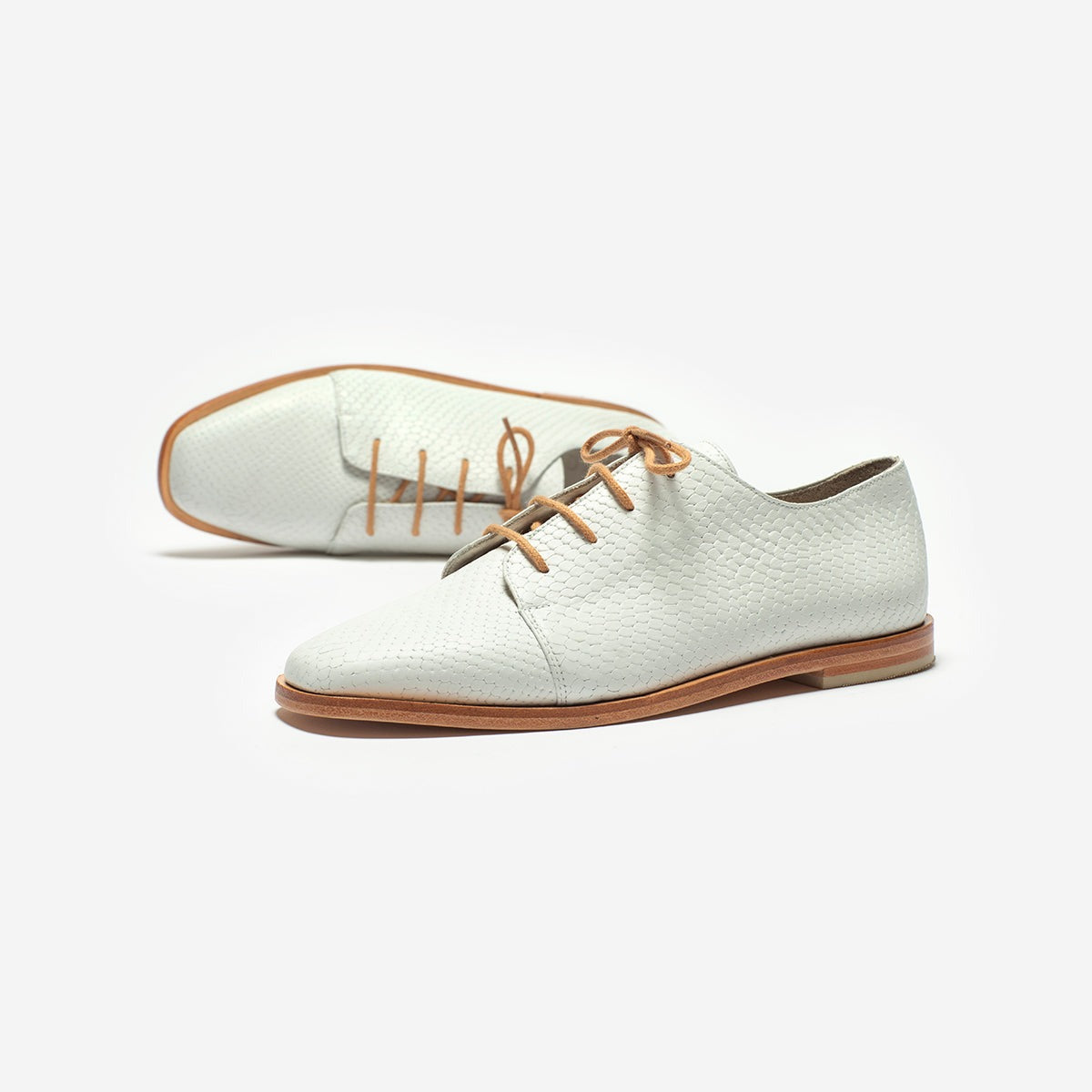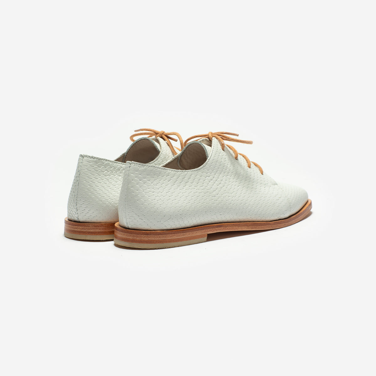 Abotinado Ofelia Charol Off White, interior y plantilla de cuero.