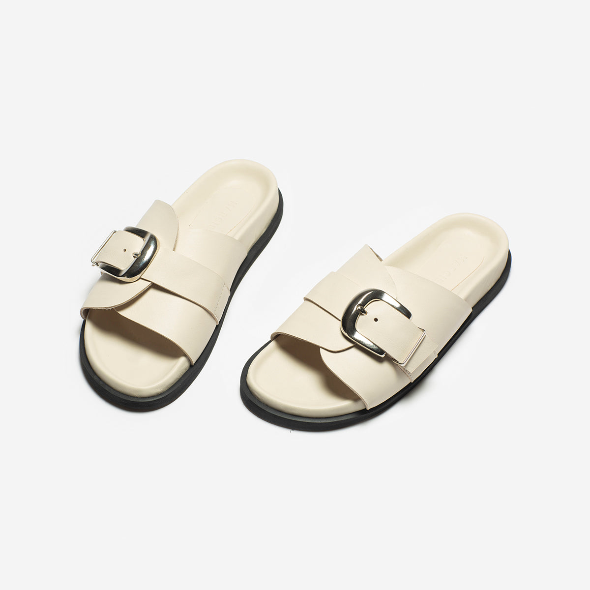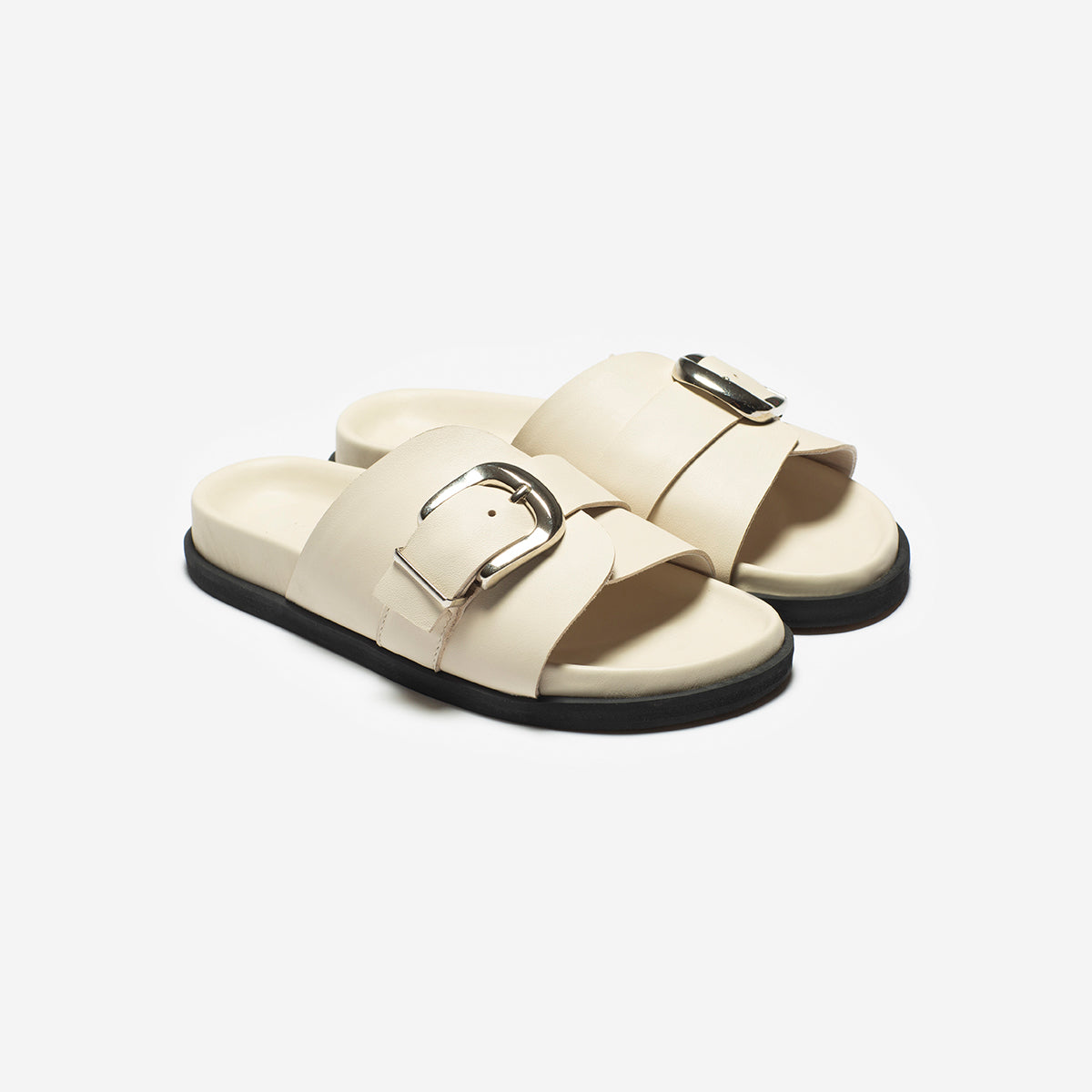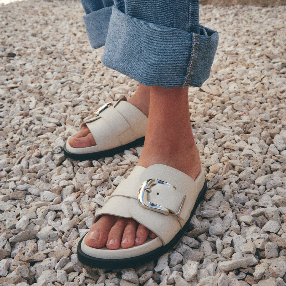 Sandalia Oporto Off White, base 2 cm, interior y plantilla de cuero.