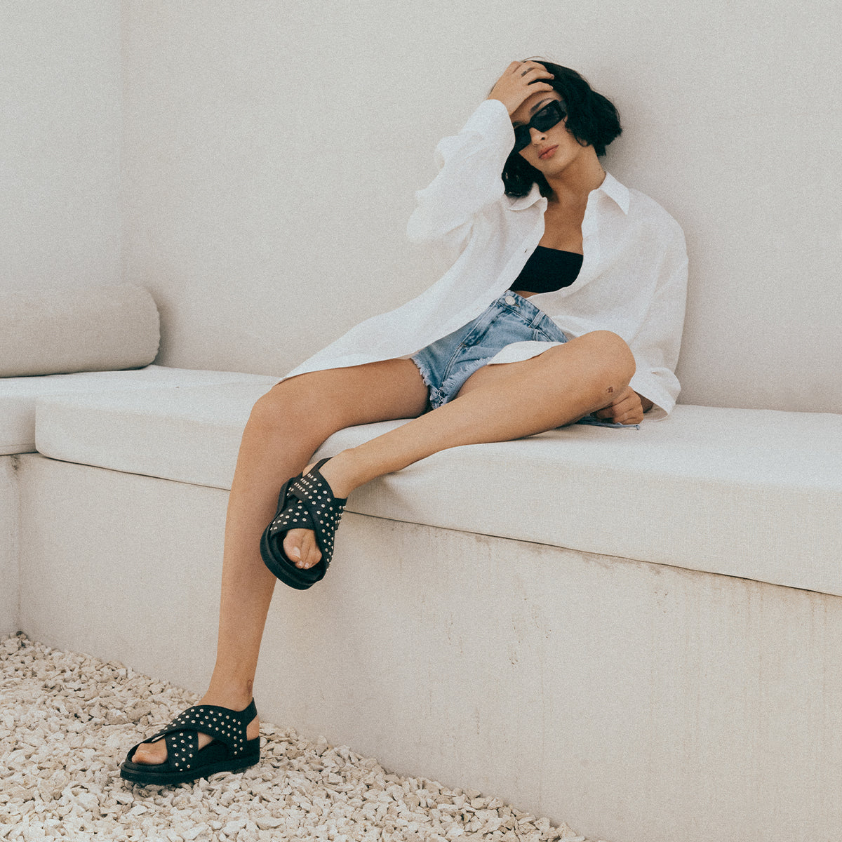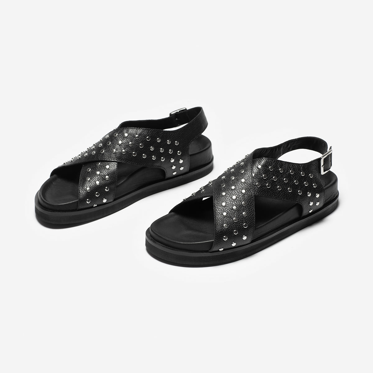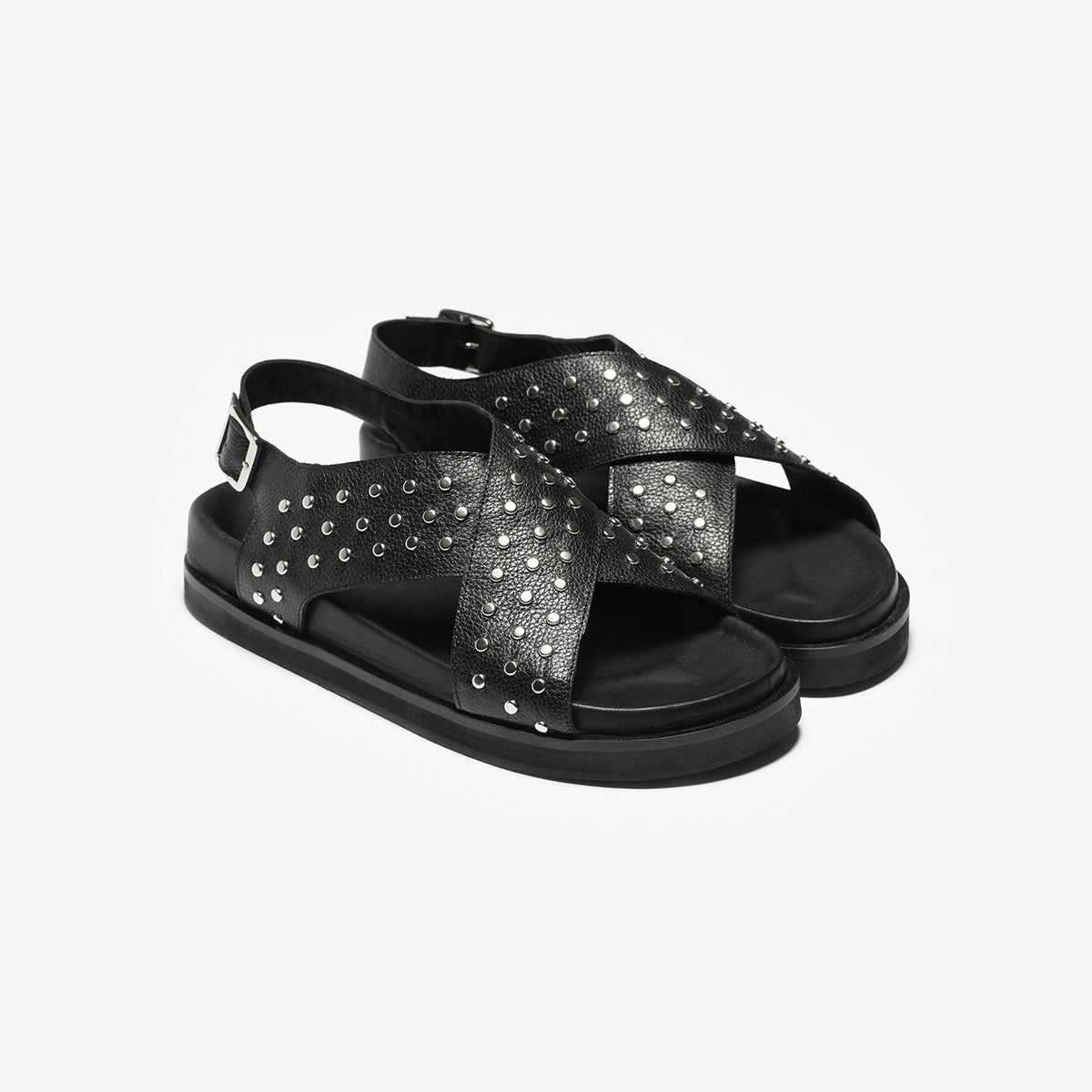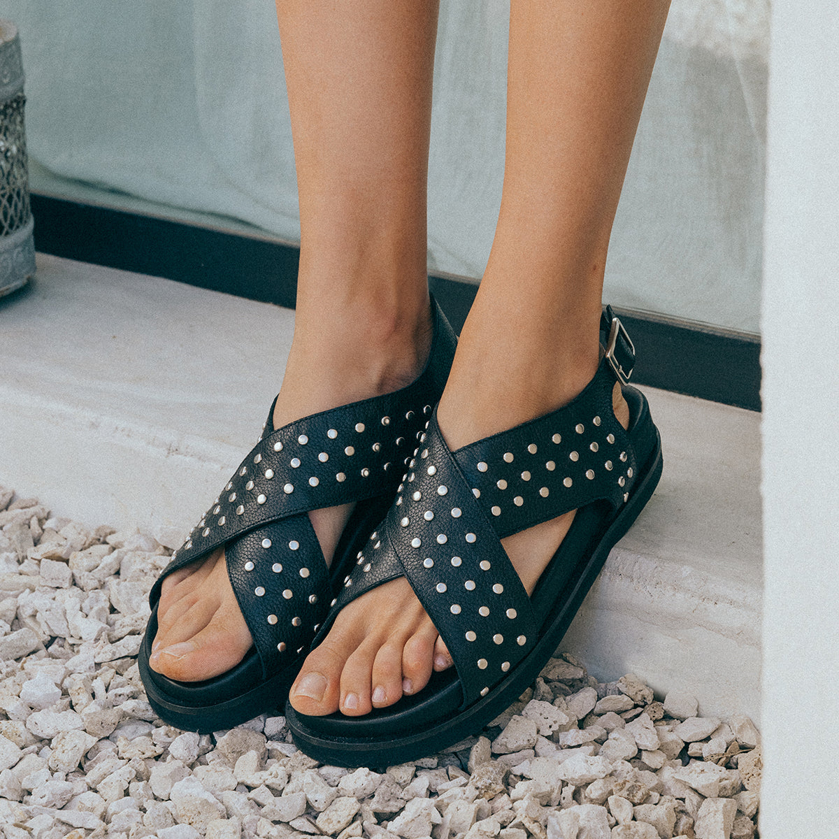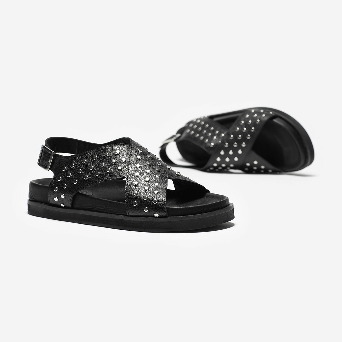 Sandalia Palma Negro, base 1 cm, interior y plantilla de cuero.