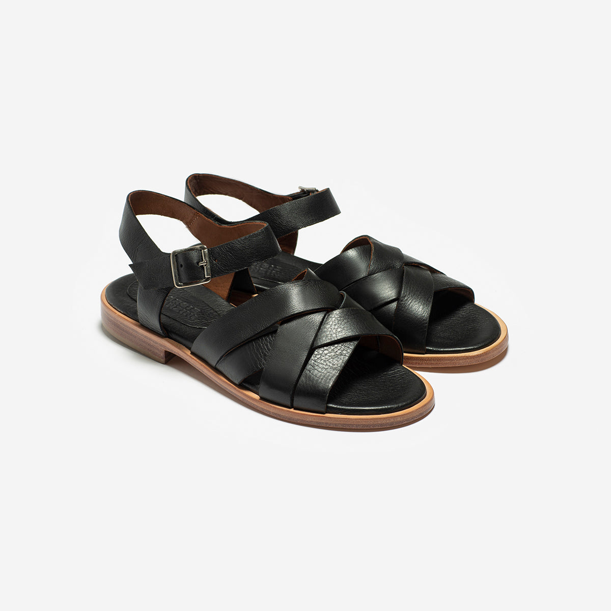 Sandalia Pamplona Negro, interior y plantilla de cuero.