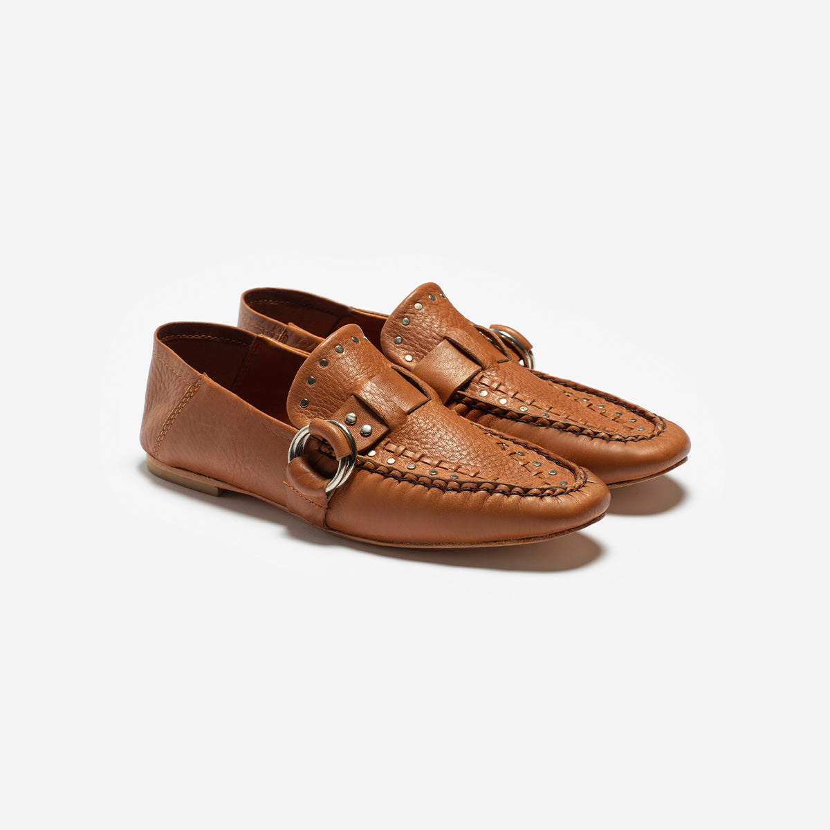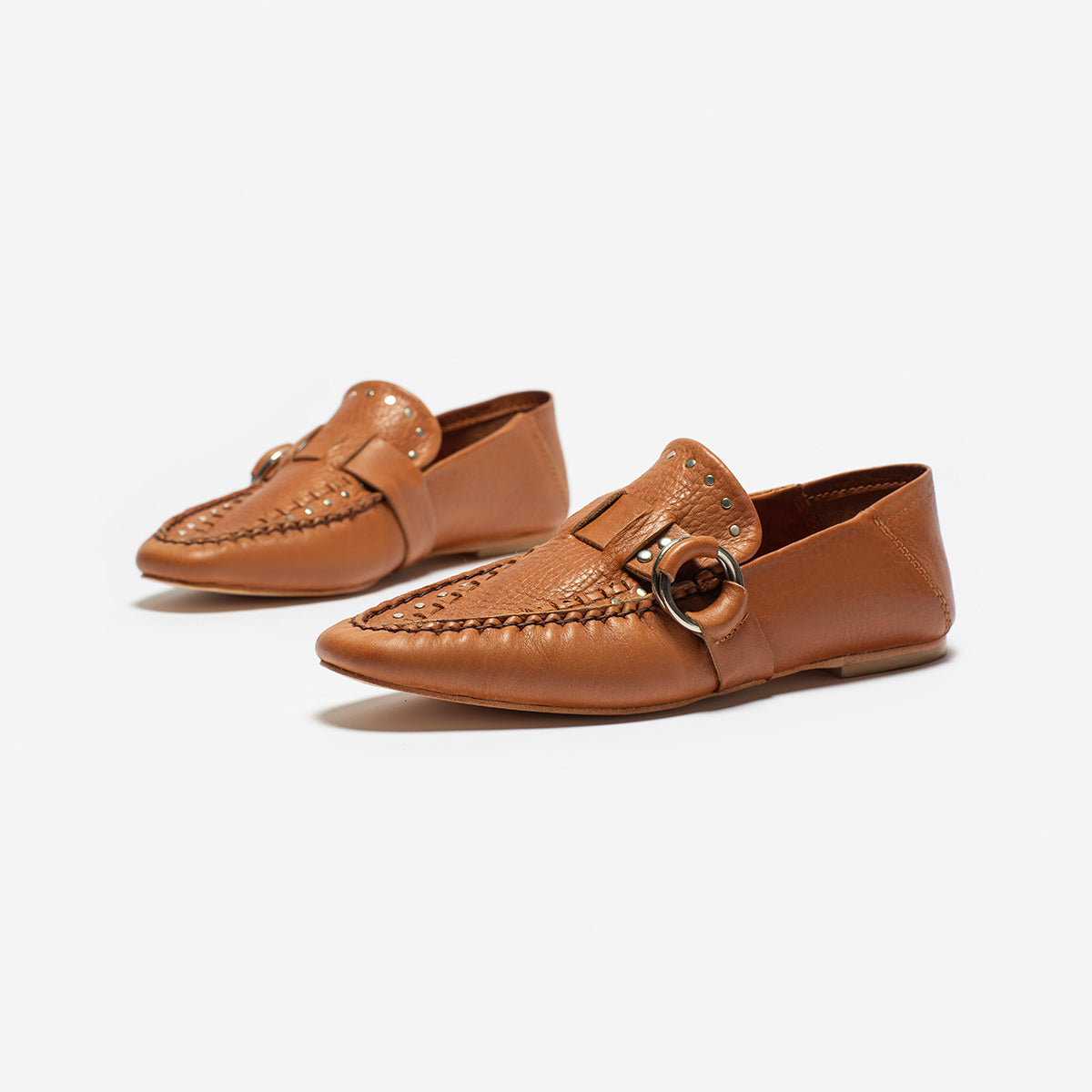 Mocasín Ringo Almendra, exterior, interior y plantilla de cuero.