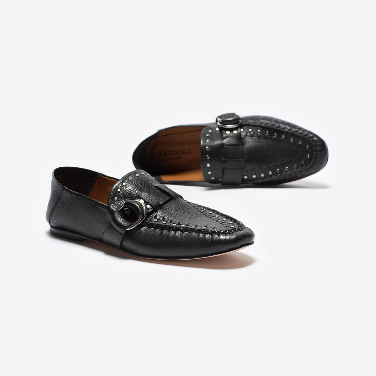 Mocasín Ringo Negro, exterior, interior y plantilla de cuero.