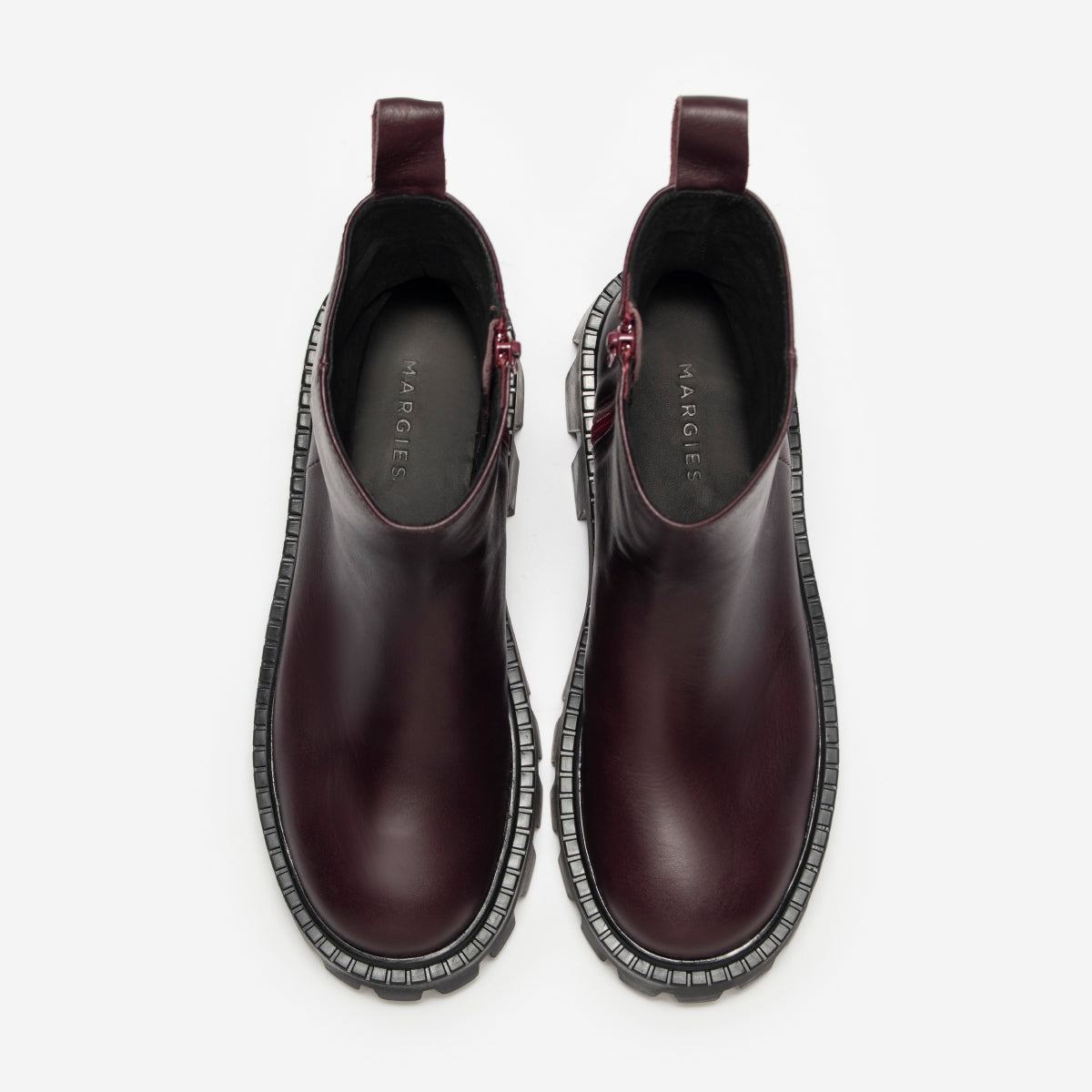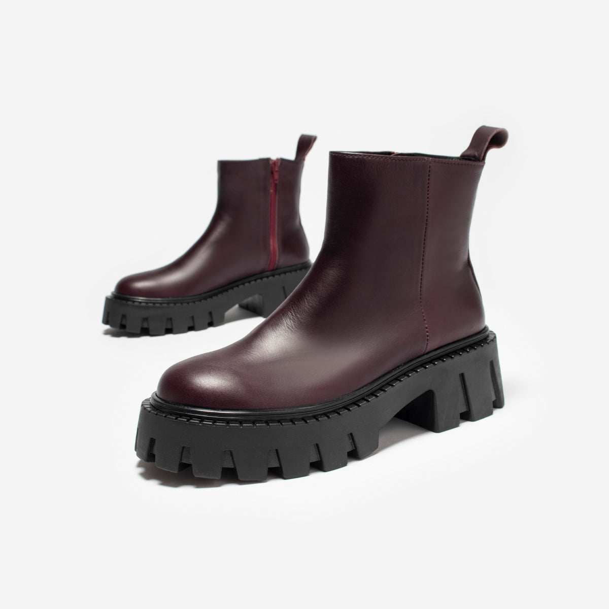 Bota Rolf Burgundy, exterior, interior y plantilla de cuero.
