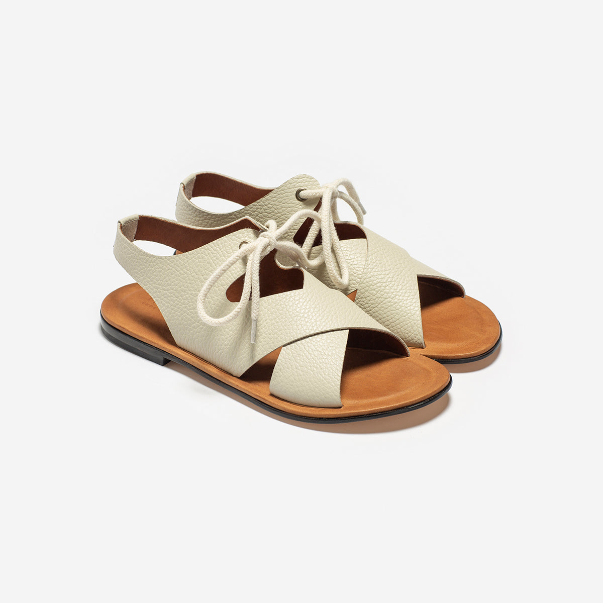 Sandalia Sevilla Off White, interior y plantilla de cuero.