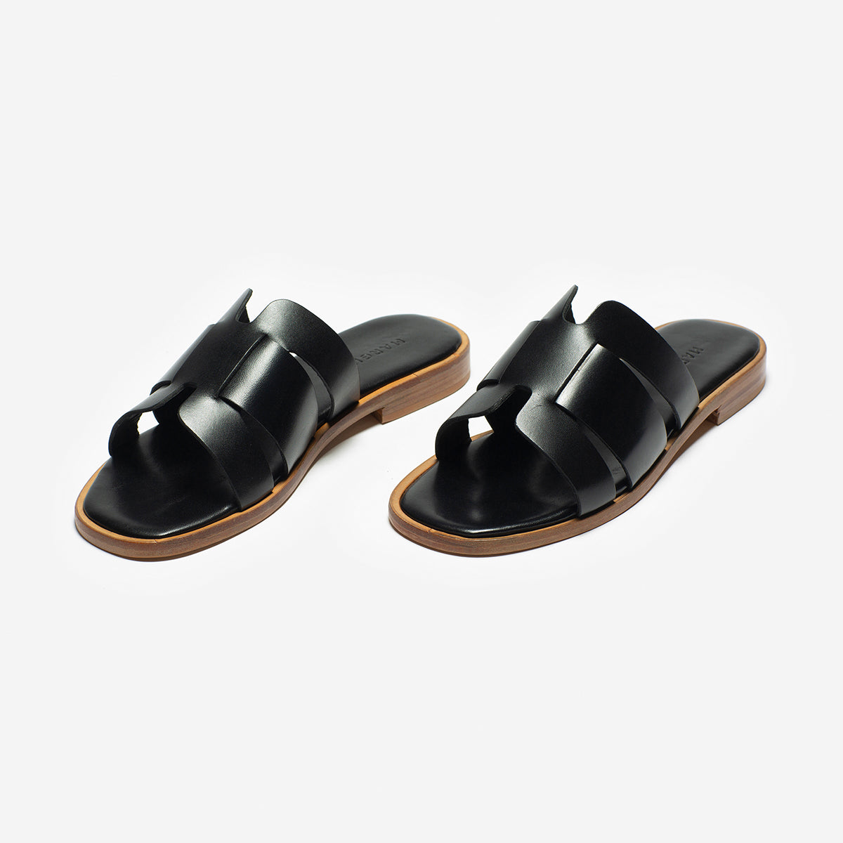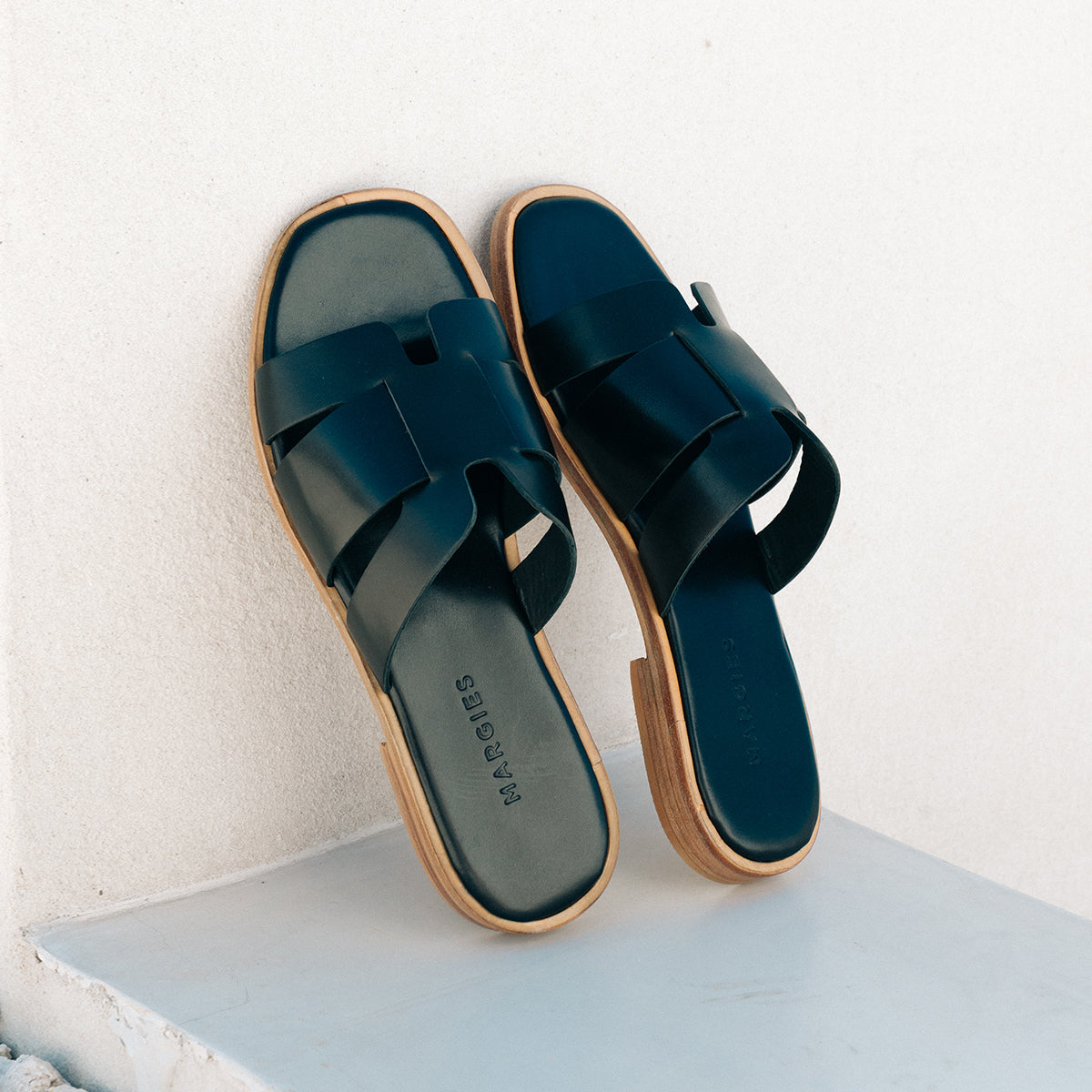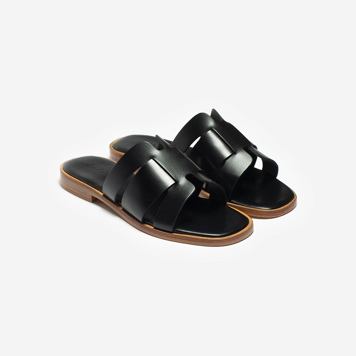 Sandalia Sintra Negro, interior y plantilla de cuero.