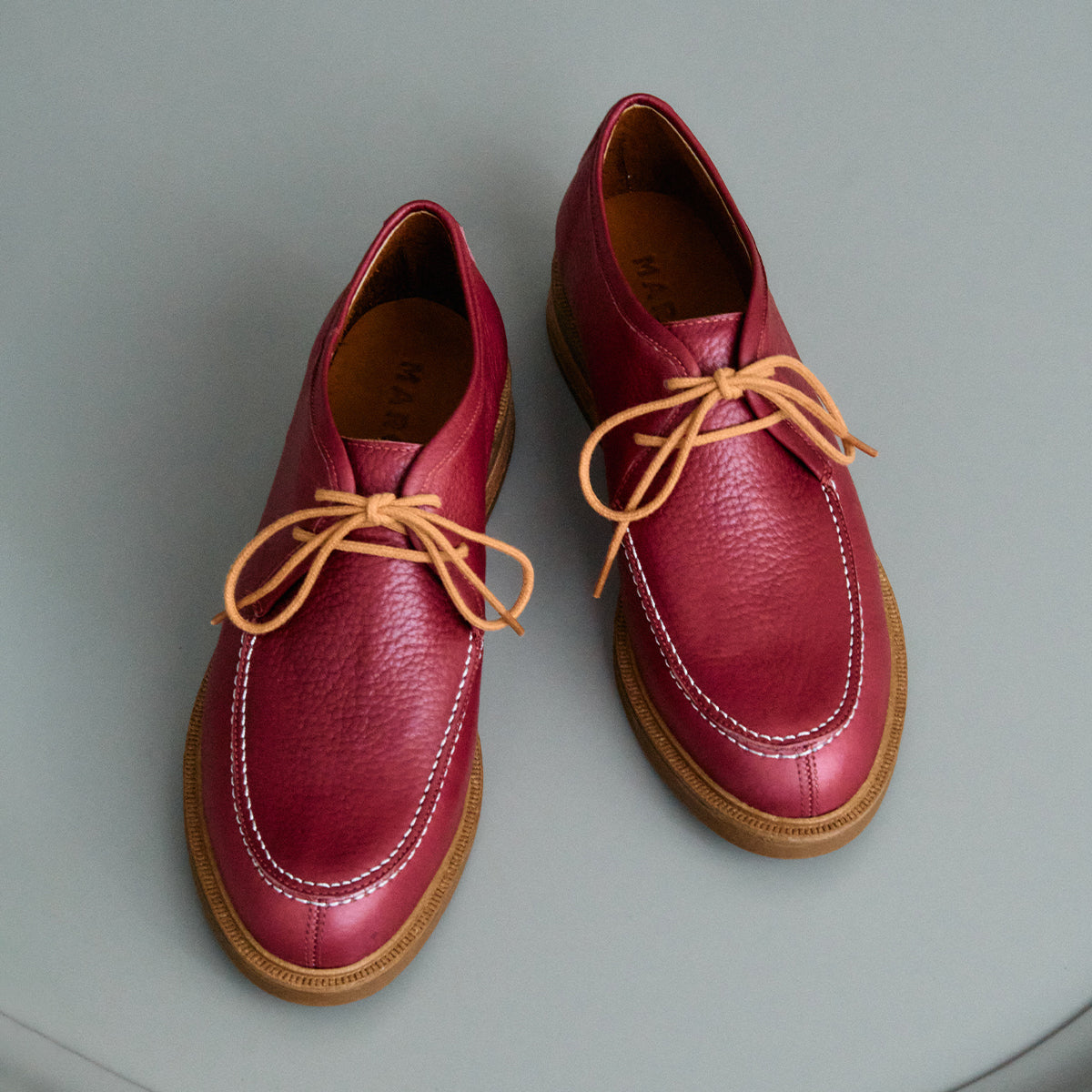 Abotinado Steve Borgoña, exterior, interior y plantilla de cuero.
