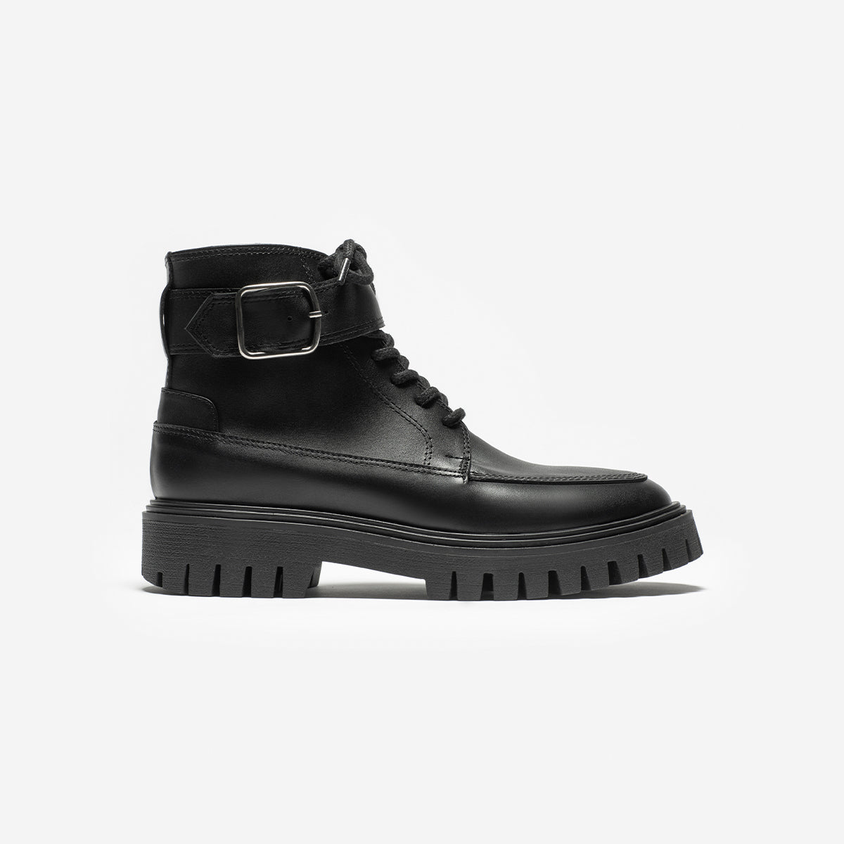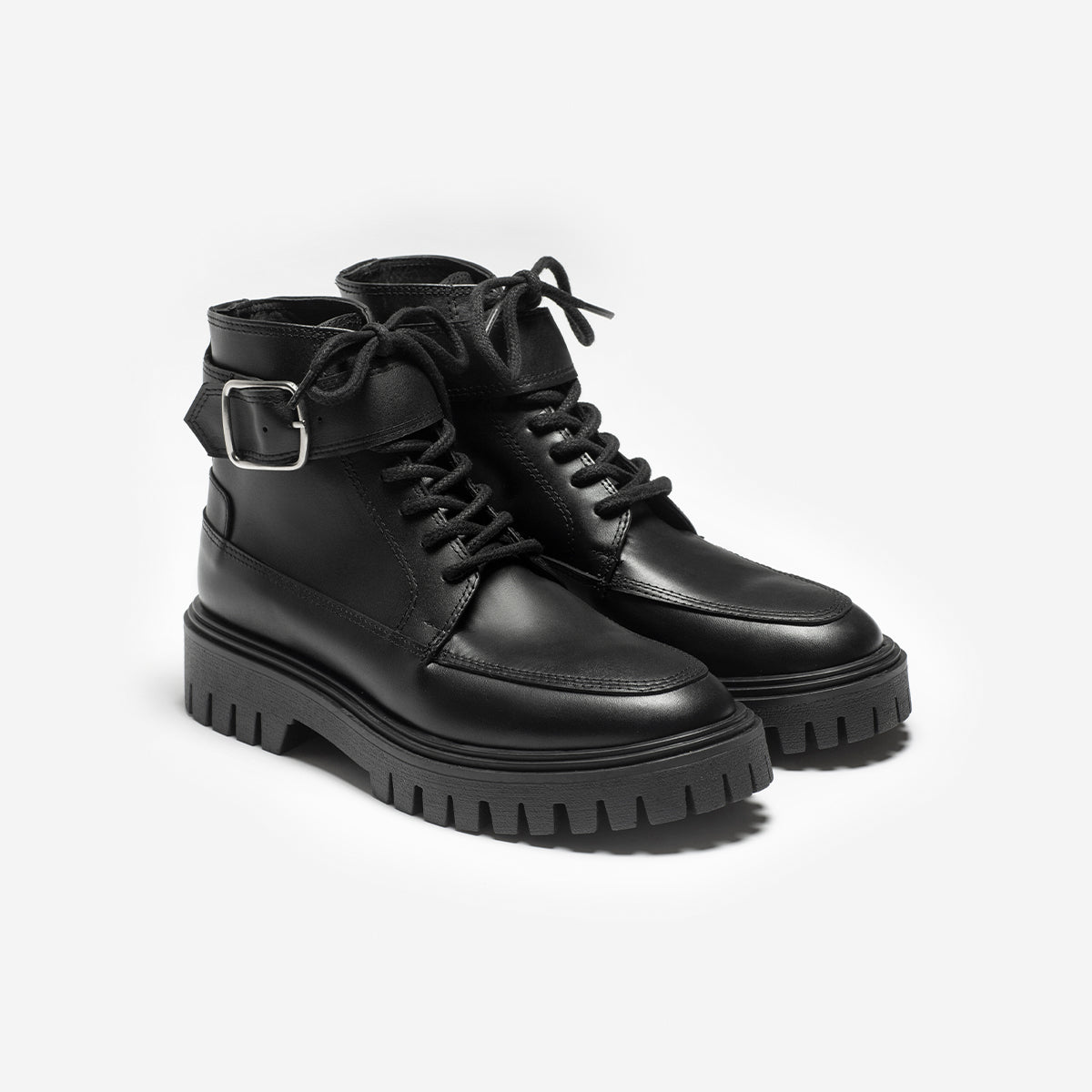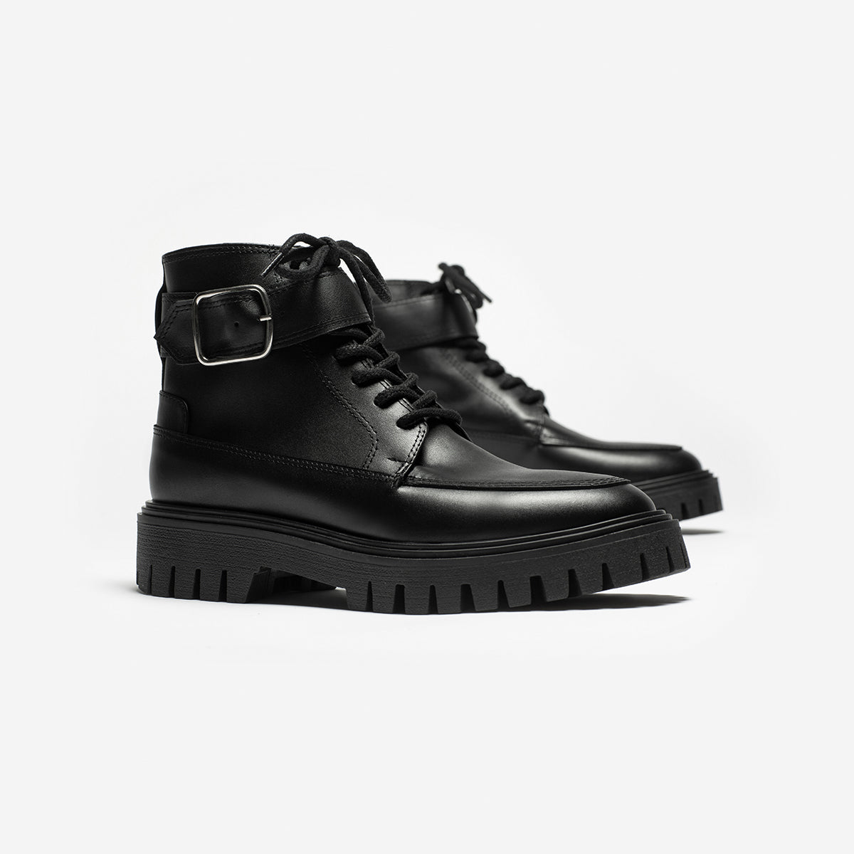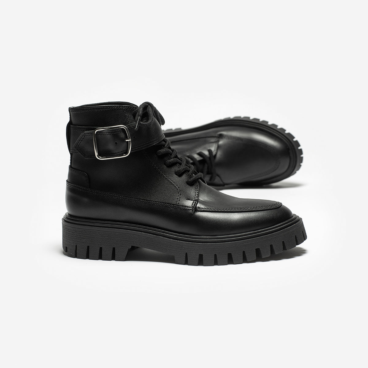 Borcego Tarvos Negro, exterior, interior y plantilla de cuero.