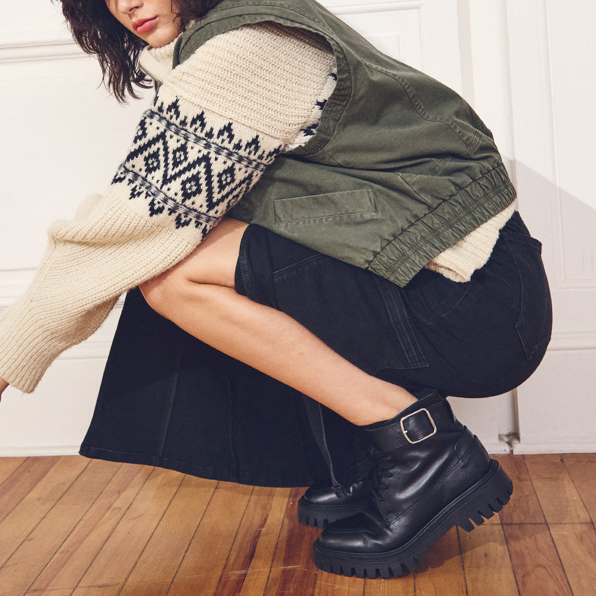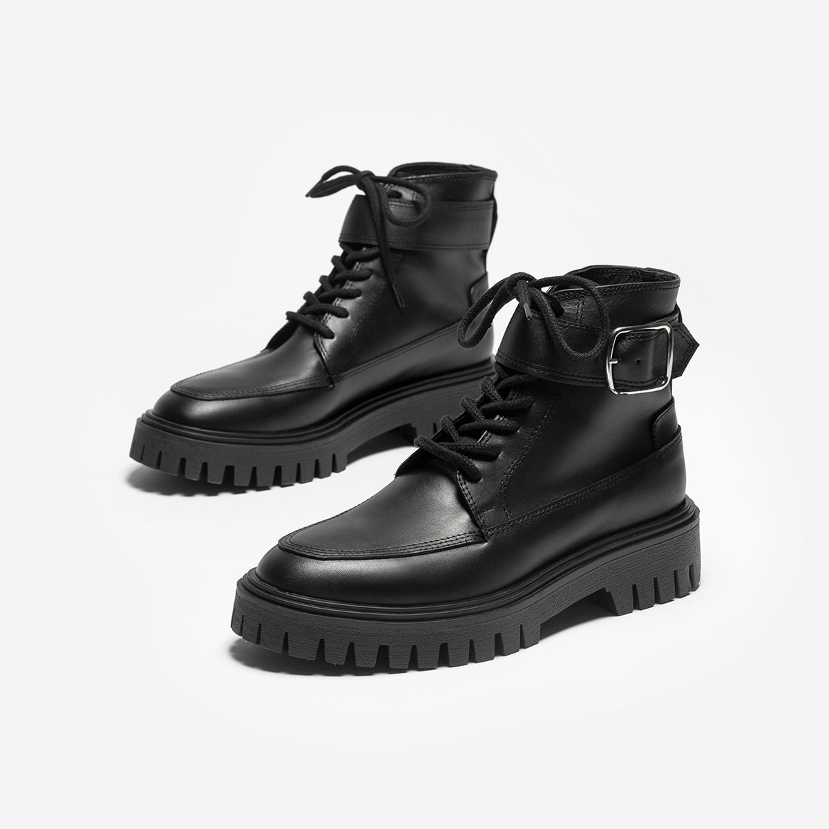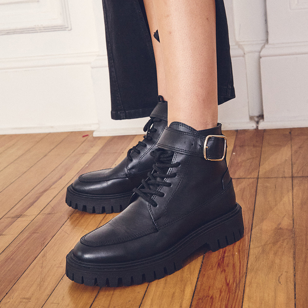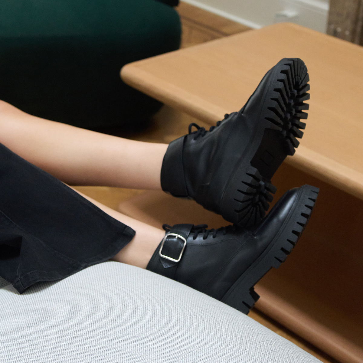 Borcego Tarvos Negro, exterior, interior y plantilla de cuero.