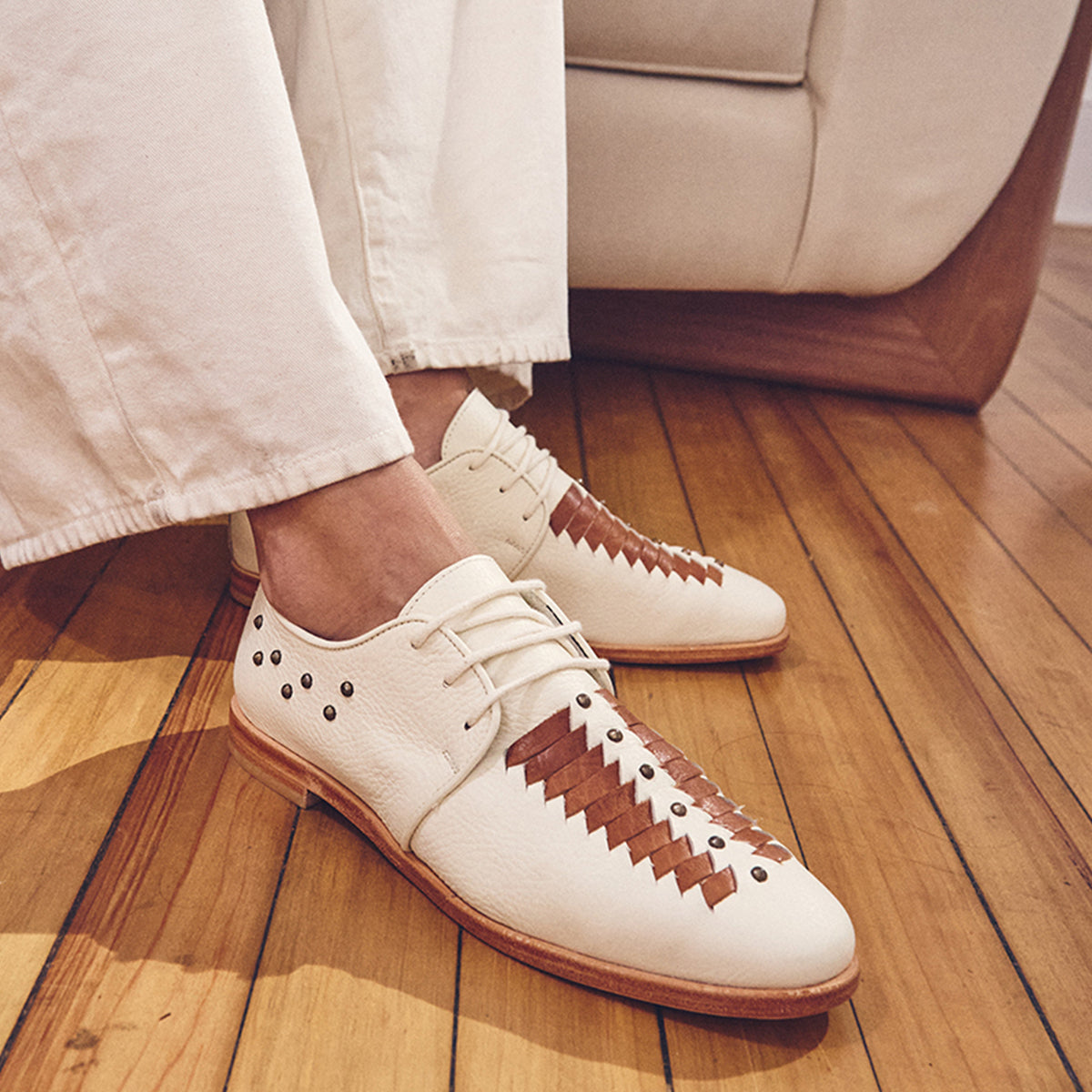 Abotinado Tavo Off White, interior y plantilla de cuero.