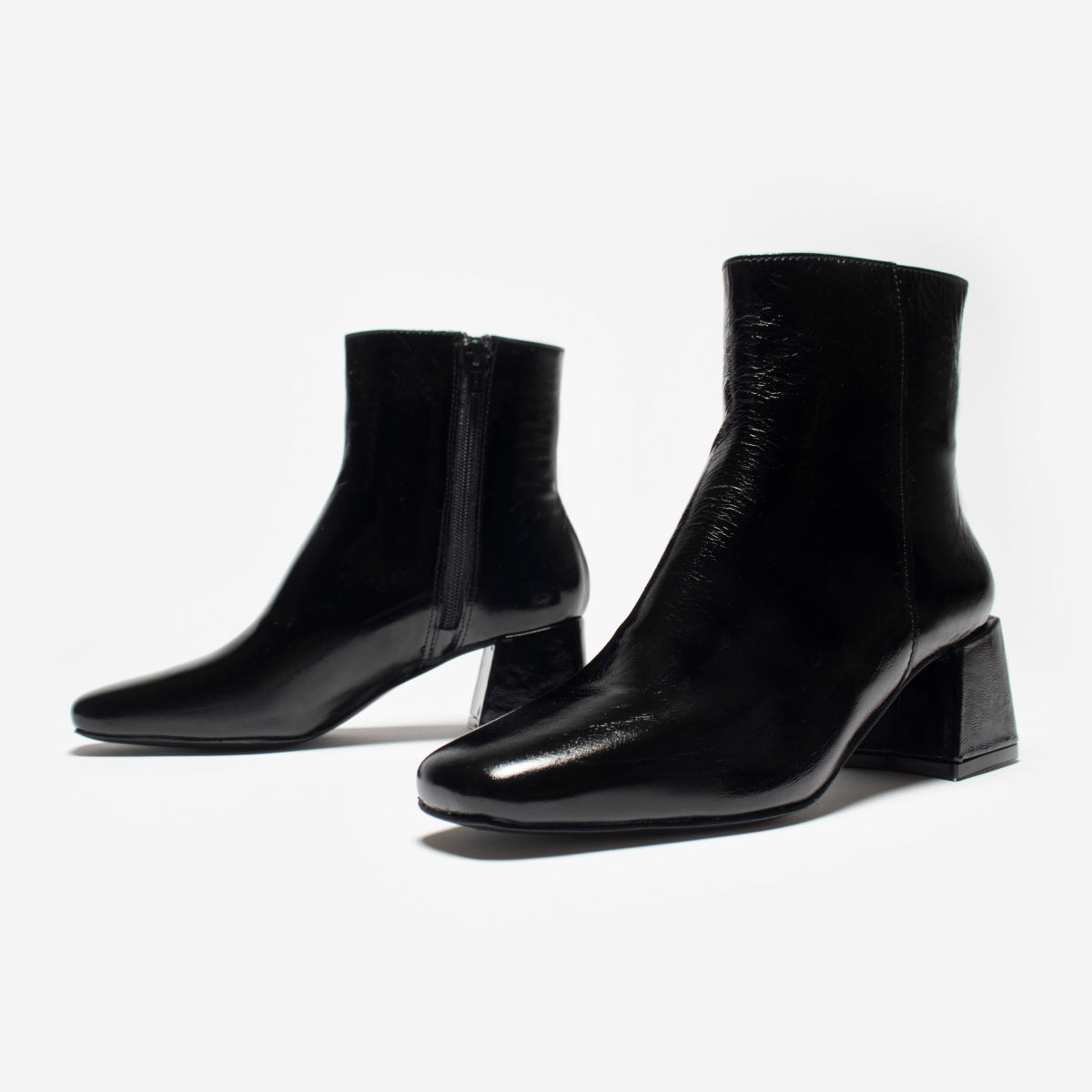 Bota Ursa Charol Negro, exterior, interior y plantilla de cuero.
