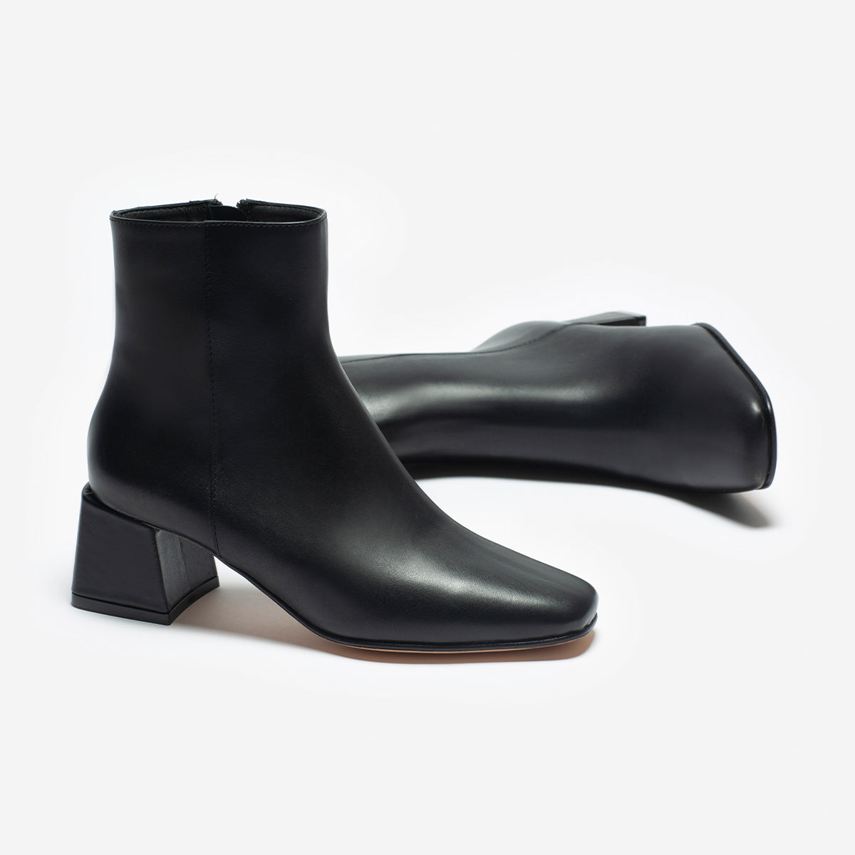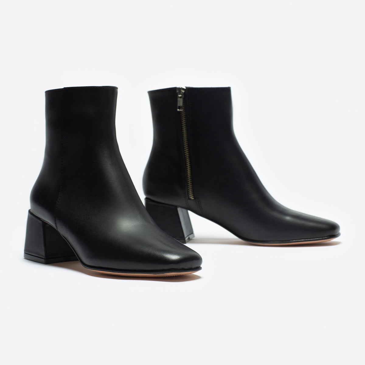 Botineta Ursa Negro, exterior, interior y plantilla de cuero.