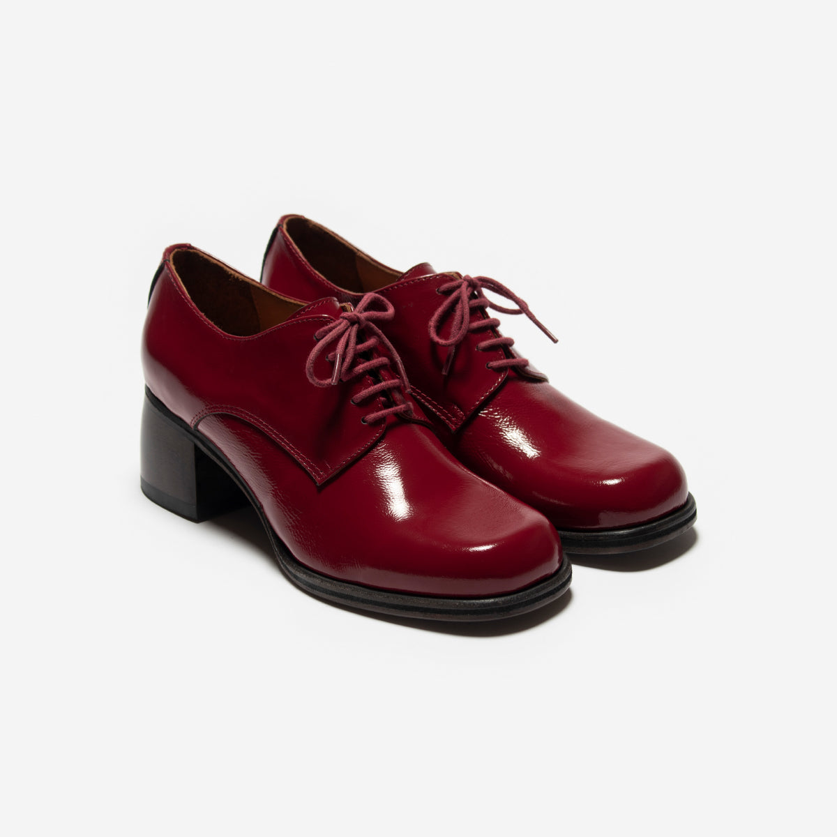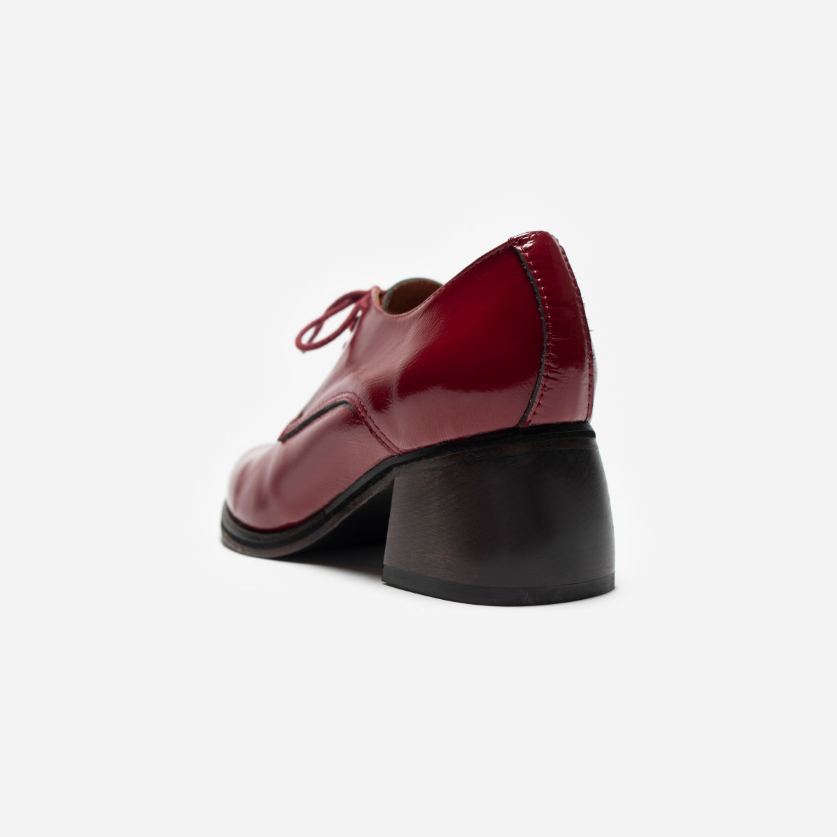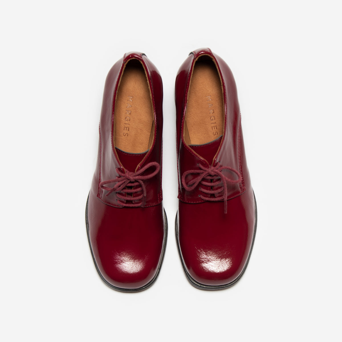 Abotinado Vali Charol Bordeaux, exterior, interior y plantilla de cuero. Taco de 5cm de alto de madera oscura