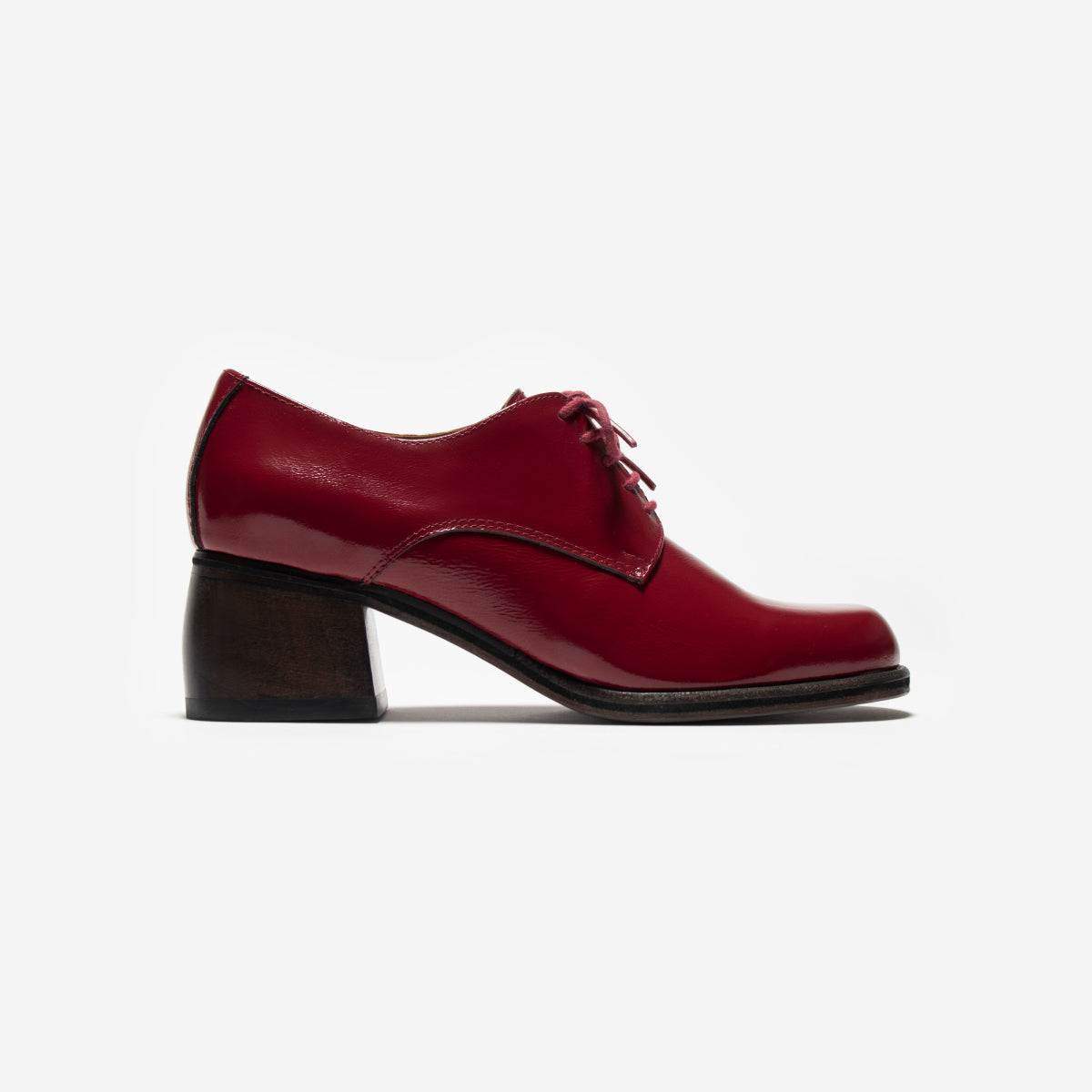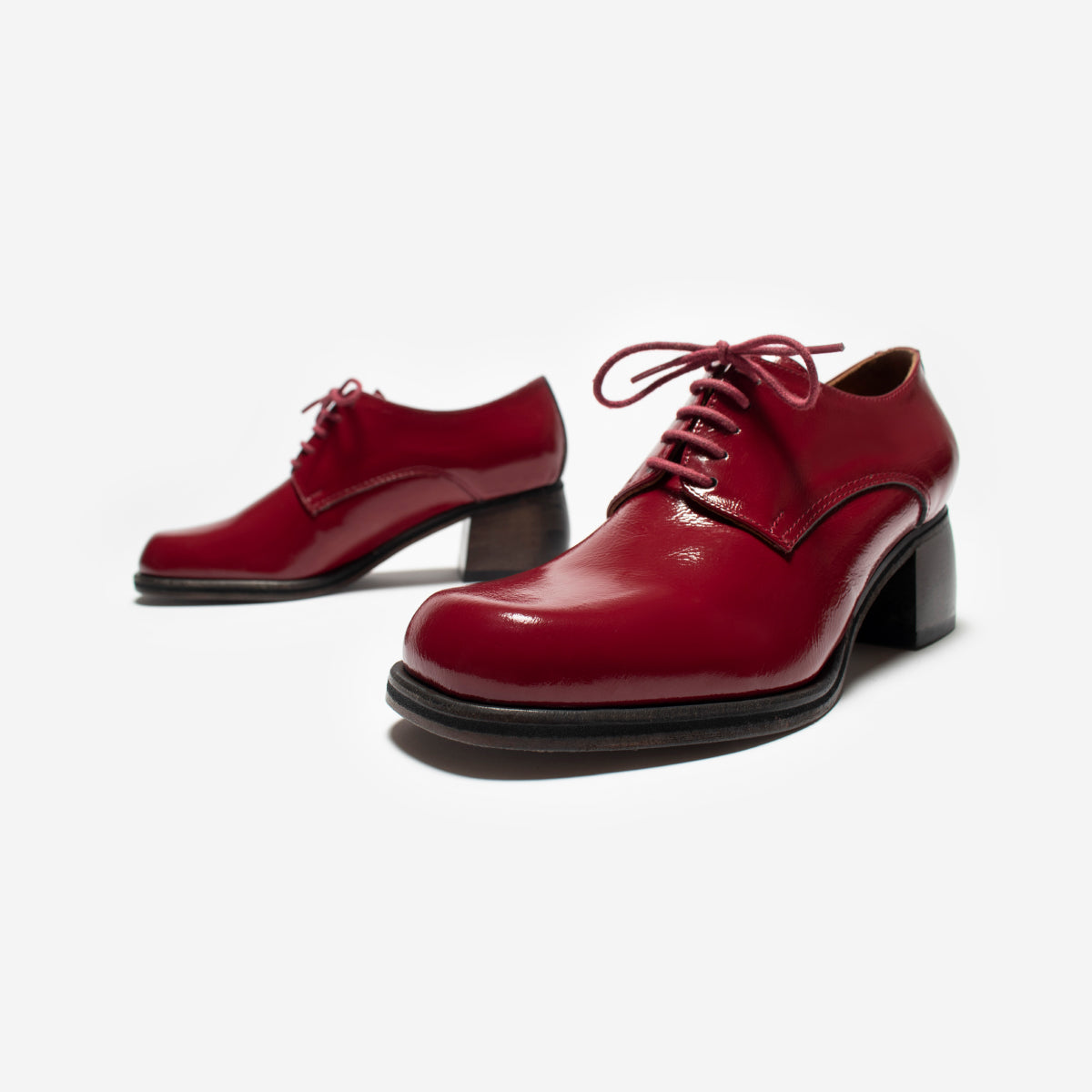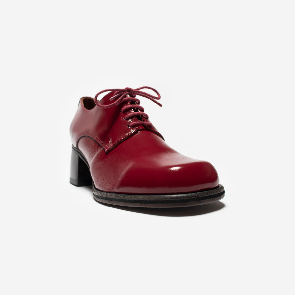 Abotinado Vali Charol Bordeaux, exterior, interior y plantilla de cuero. Taco de 5cm de alto de madera oscura
