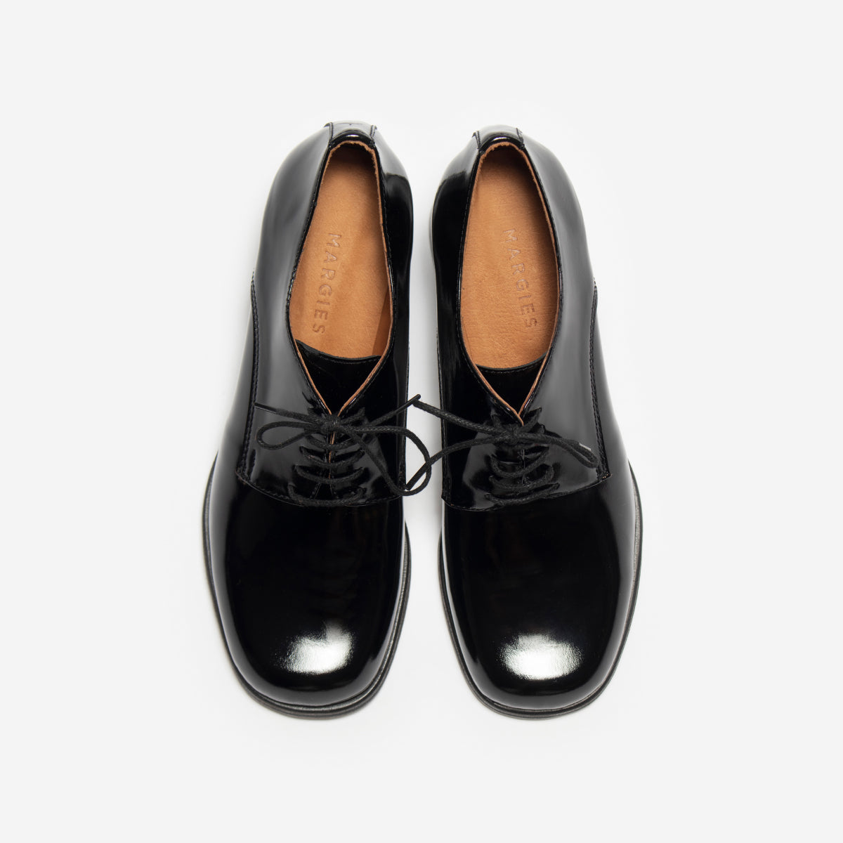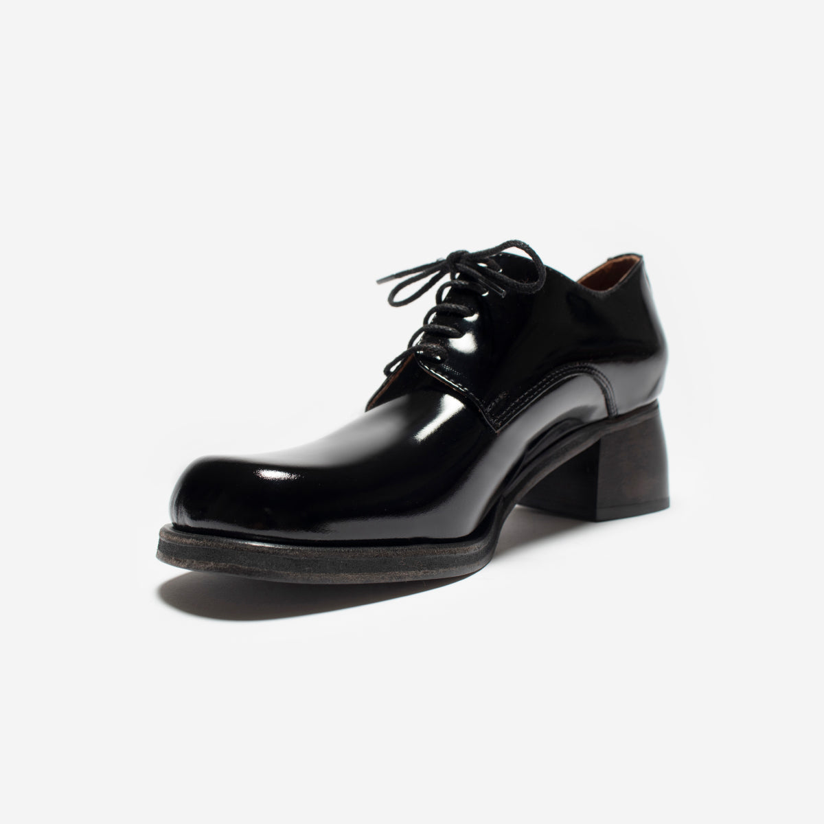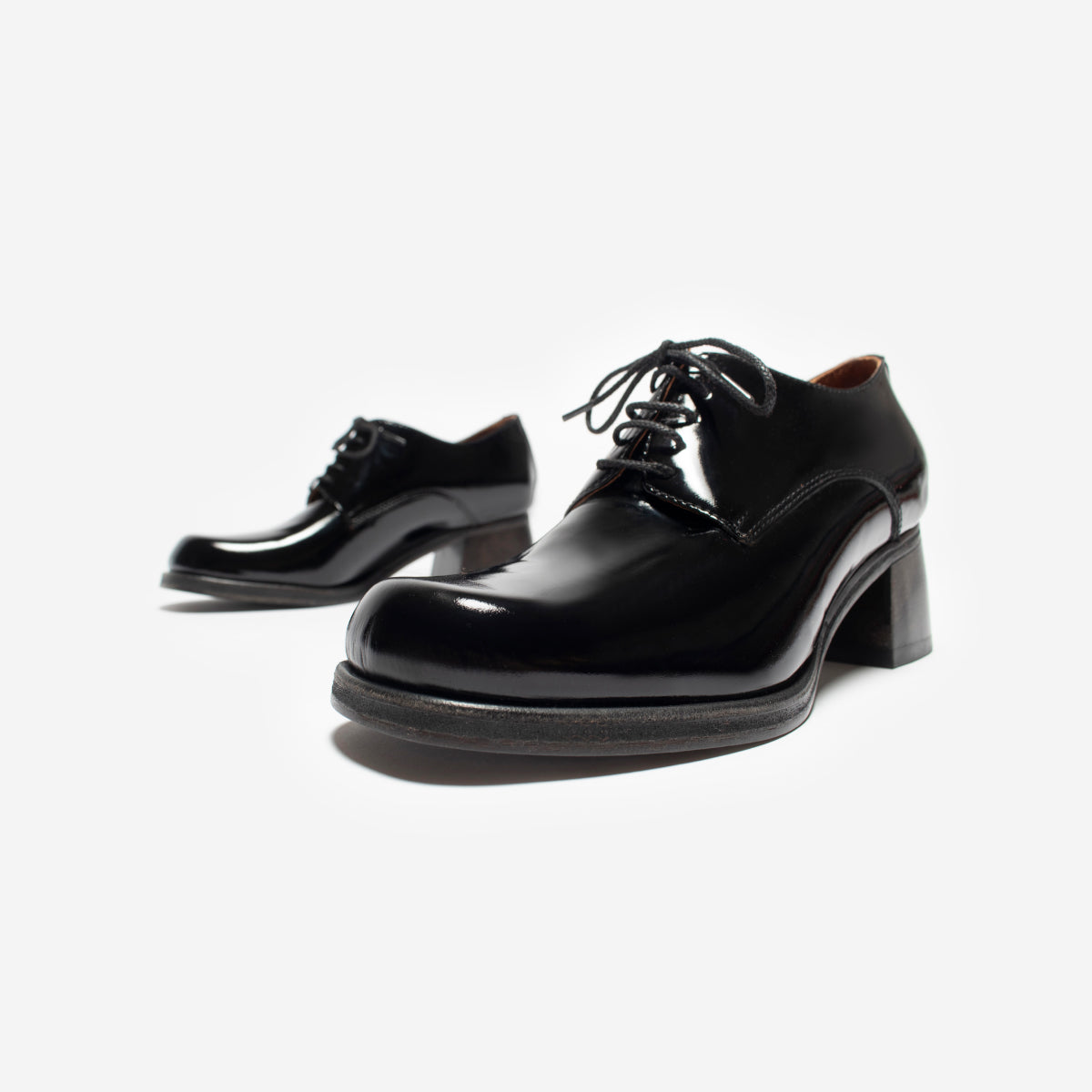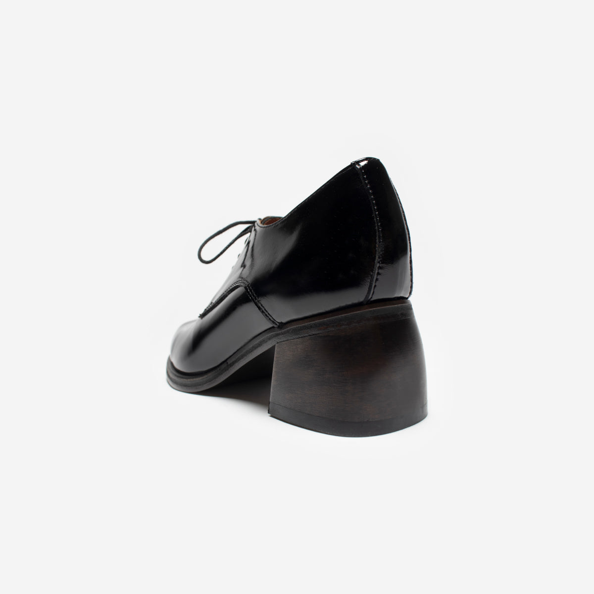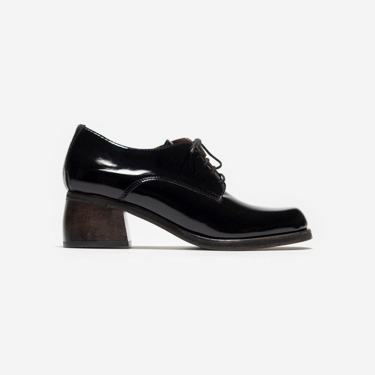 Abotinado Vali Charol Negro, exterior, interior y plantilla de cuero.Taco de 5cm de alto de madera oscura