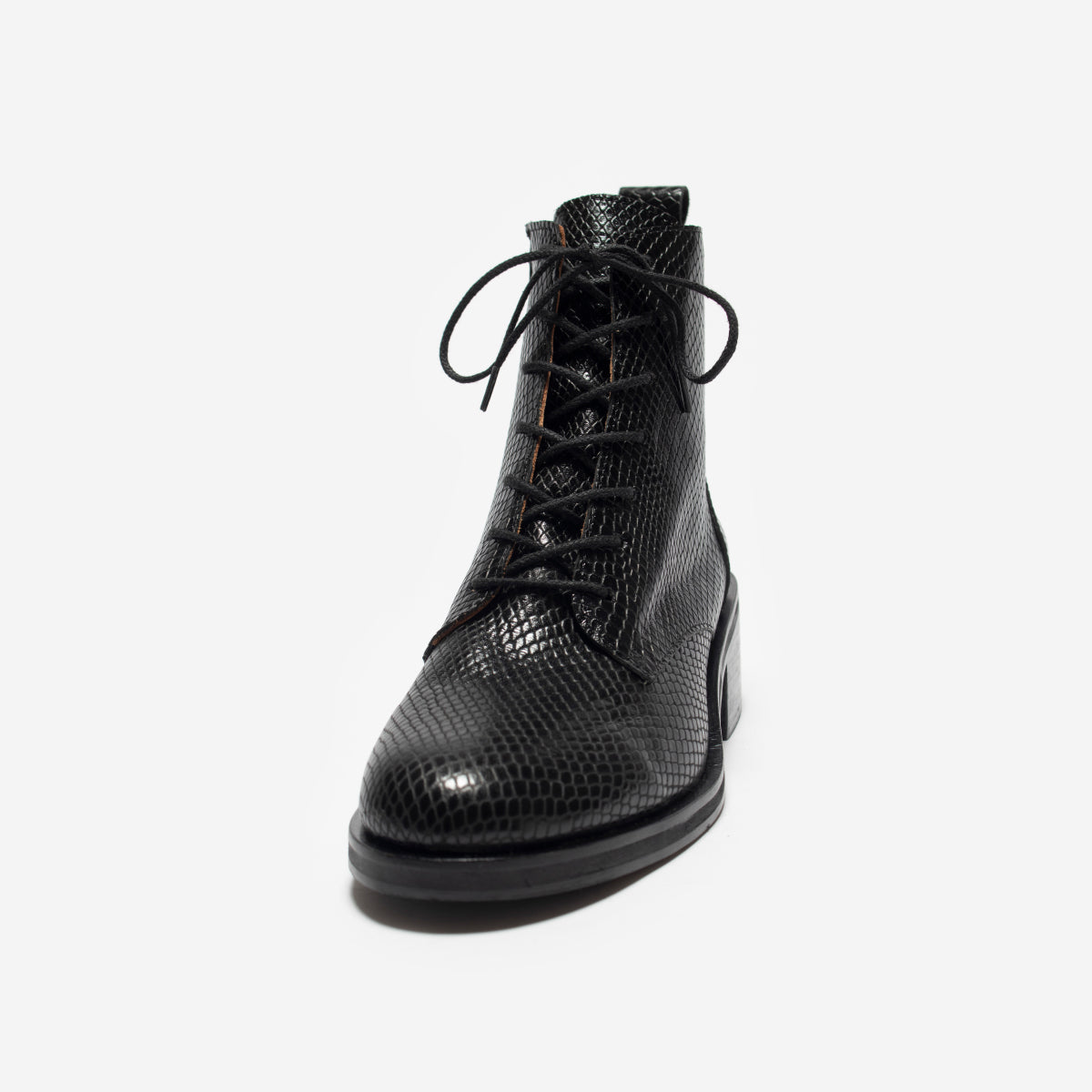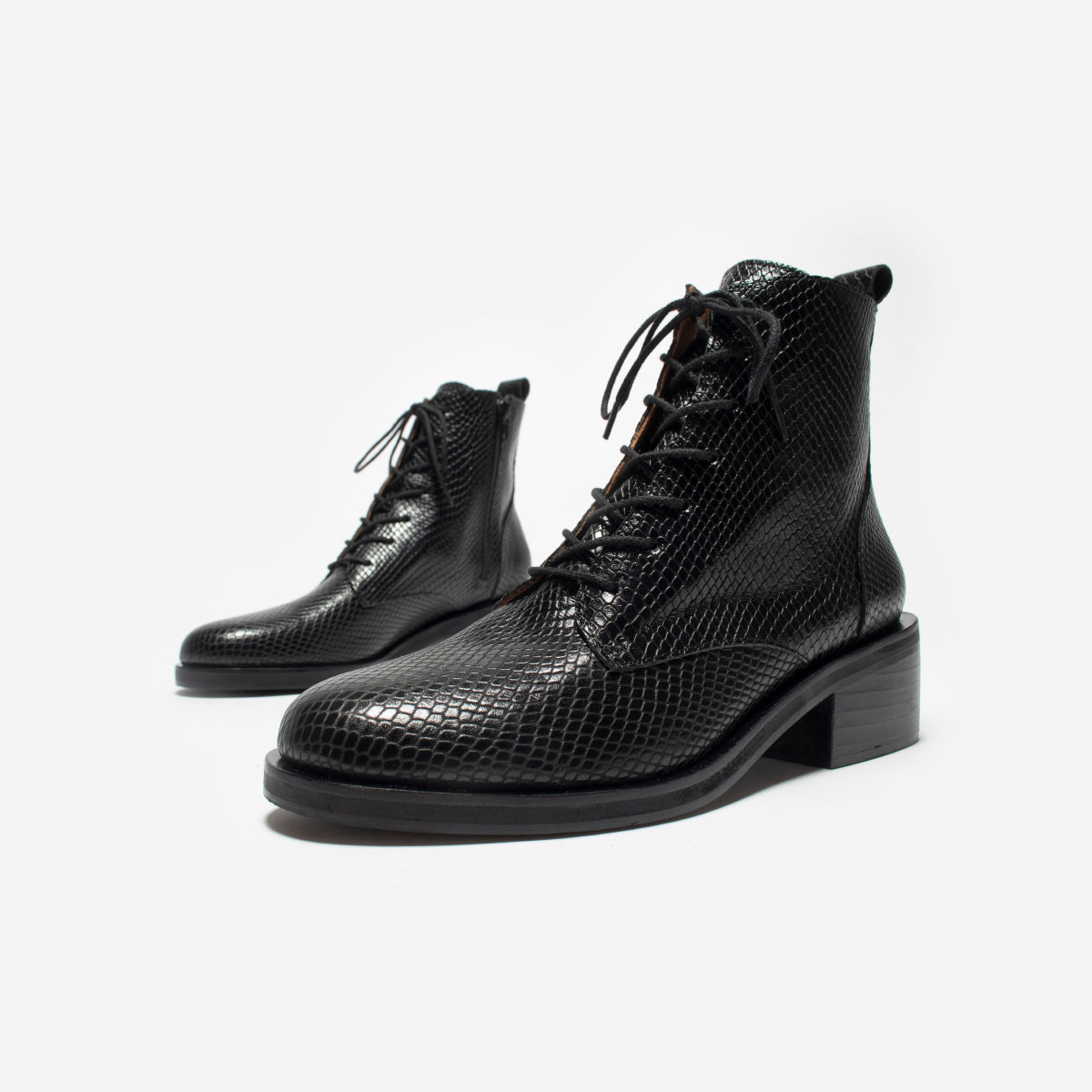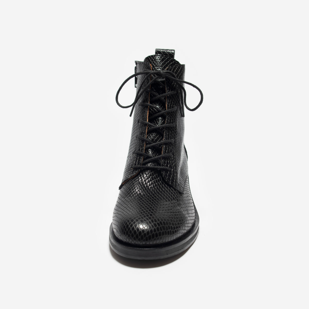 Borcego Wilfrid Liz Negro, base goma, exterior, interior y plantilla de cuero. Taco de 4.5 cm de alto