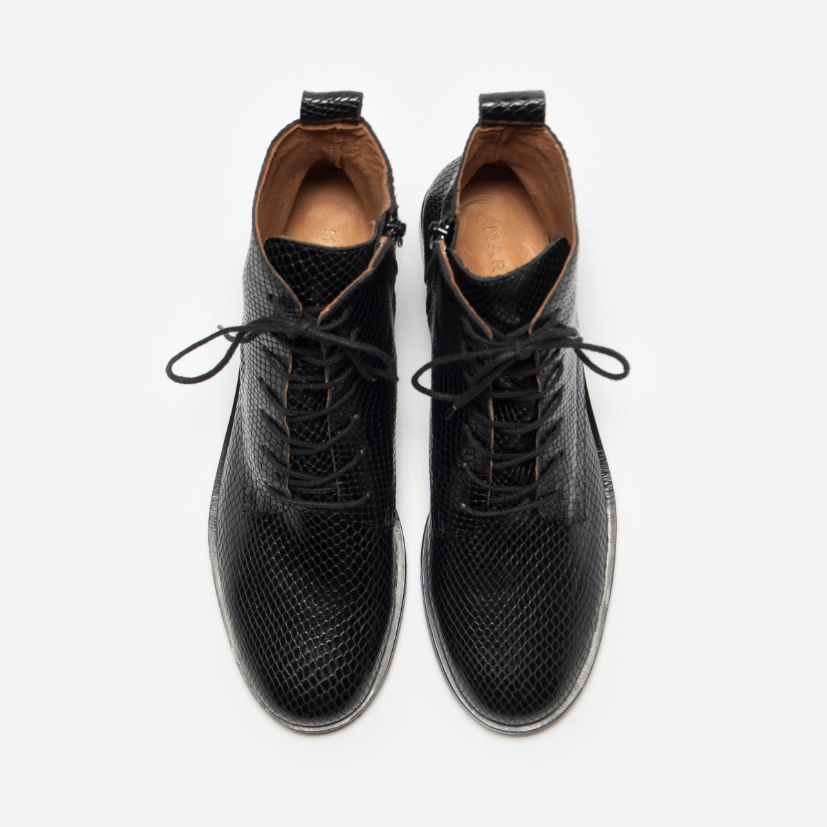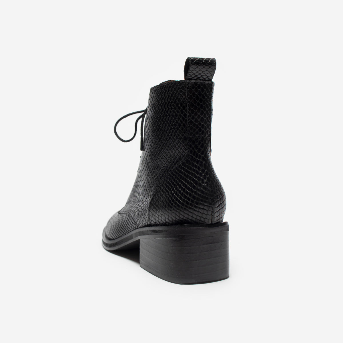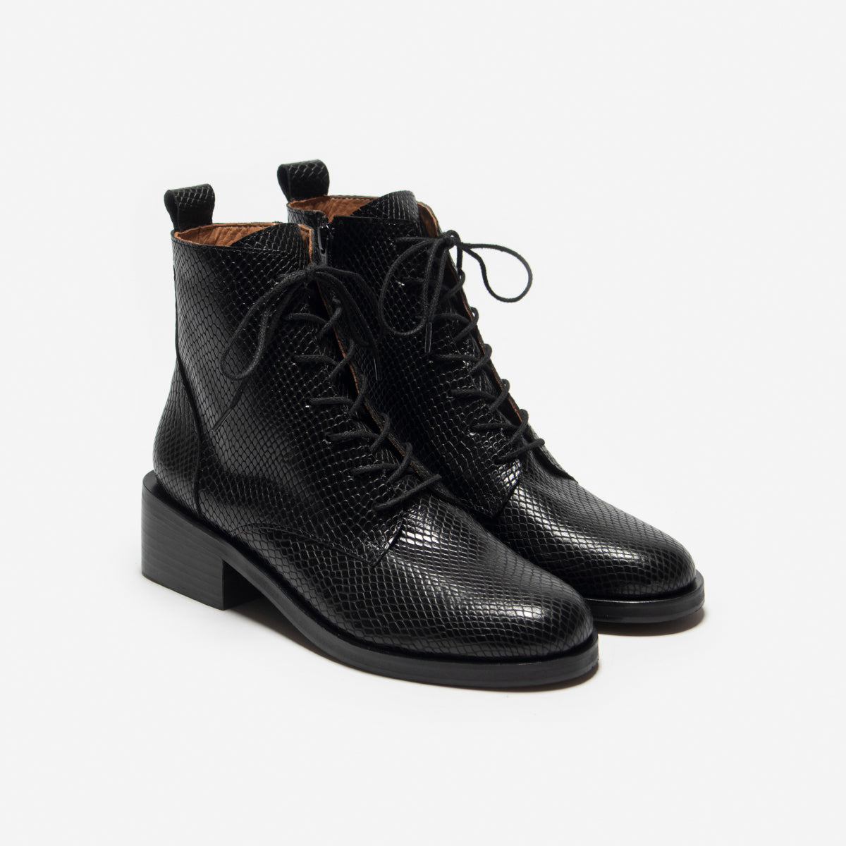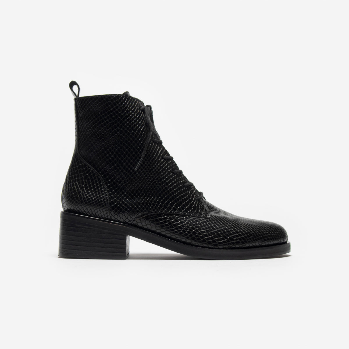 Borcego Wilfrid Liz Negro, base goma, exterior, interior y plantilla de cuero. Taco de 4.5 cm de alto