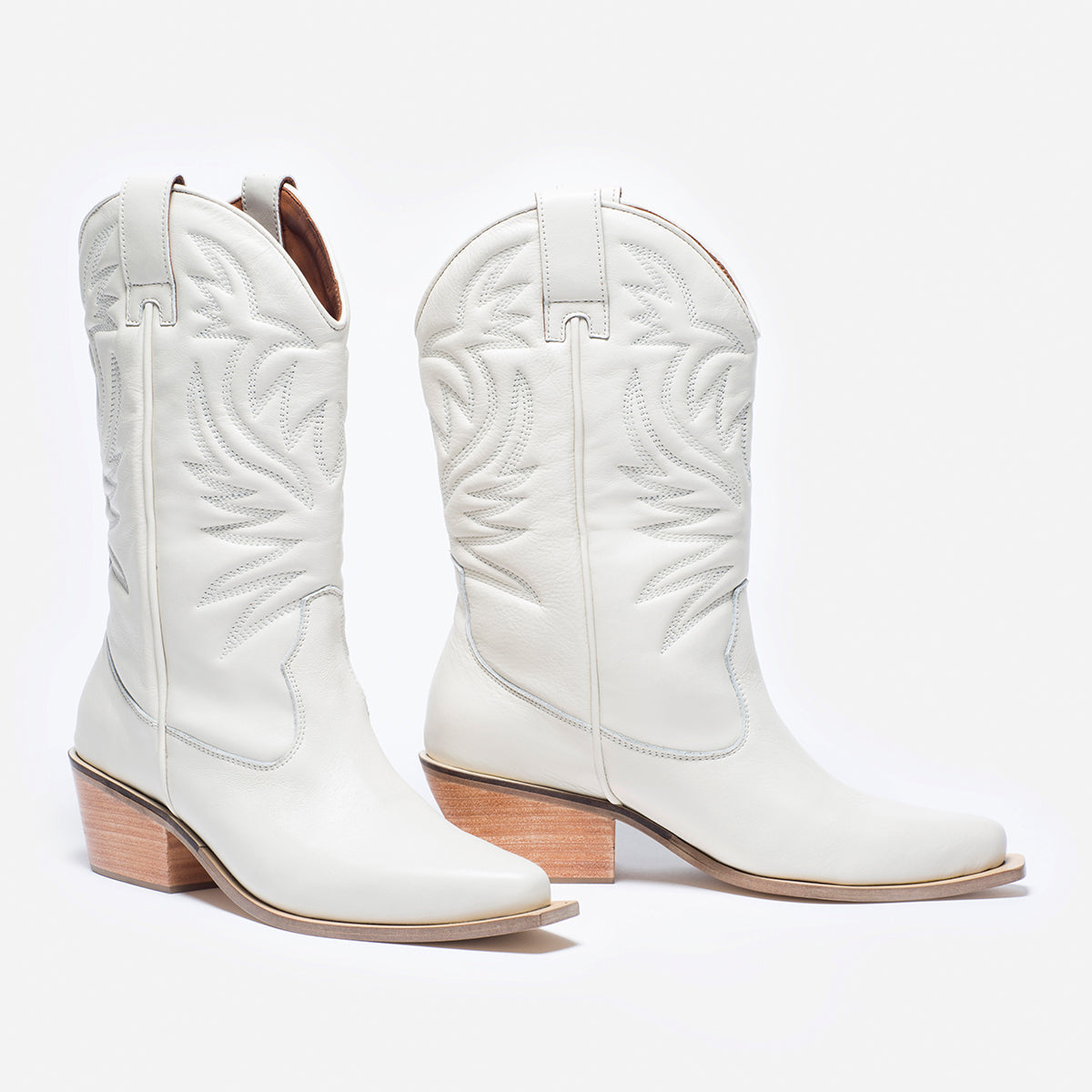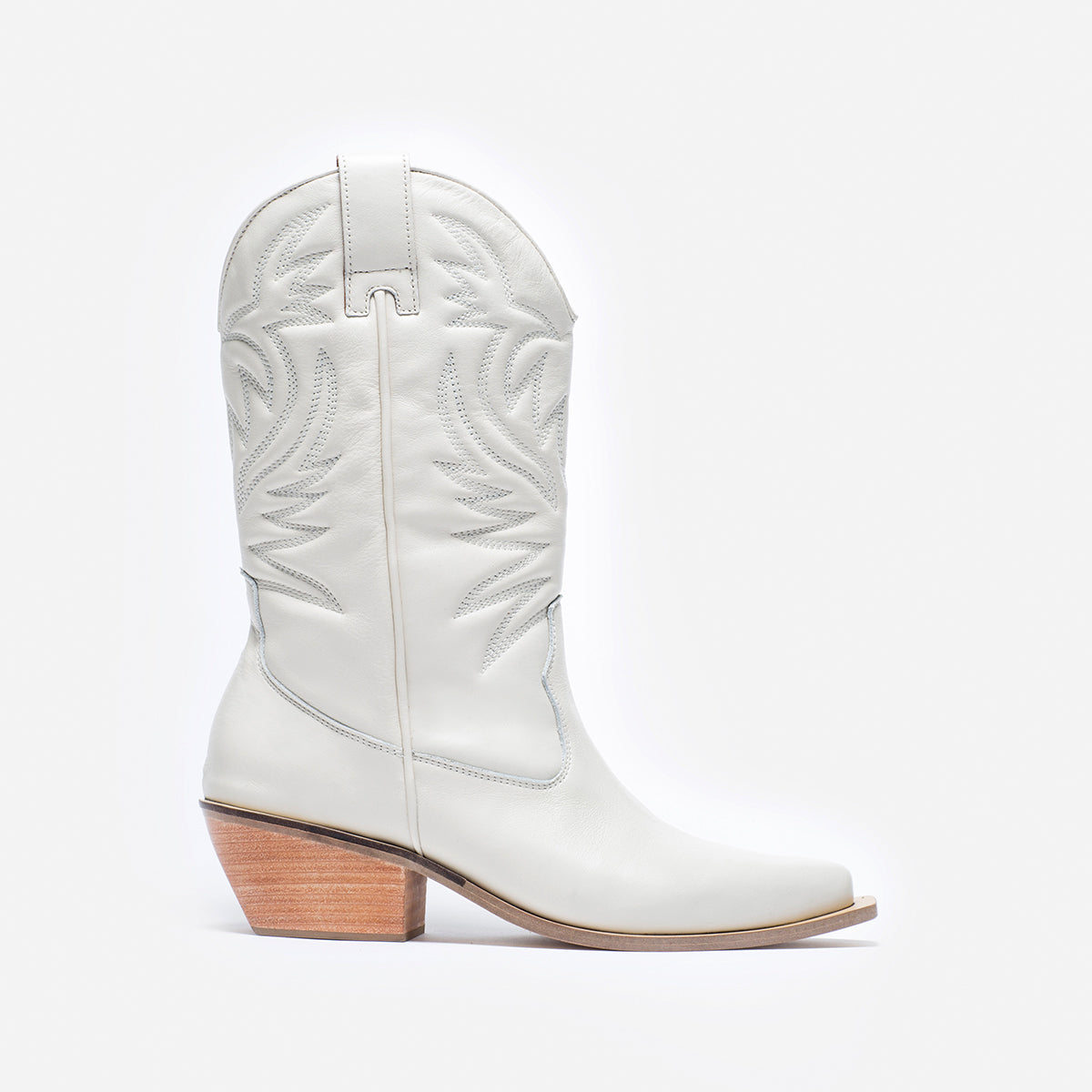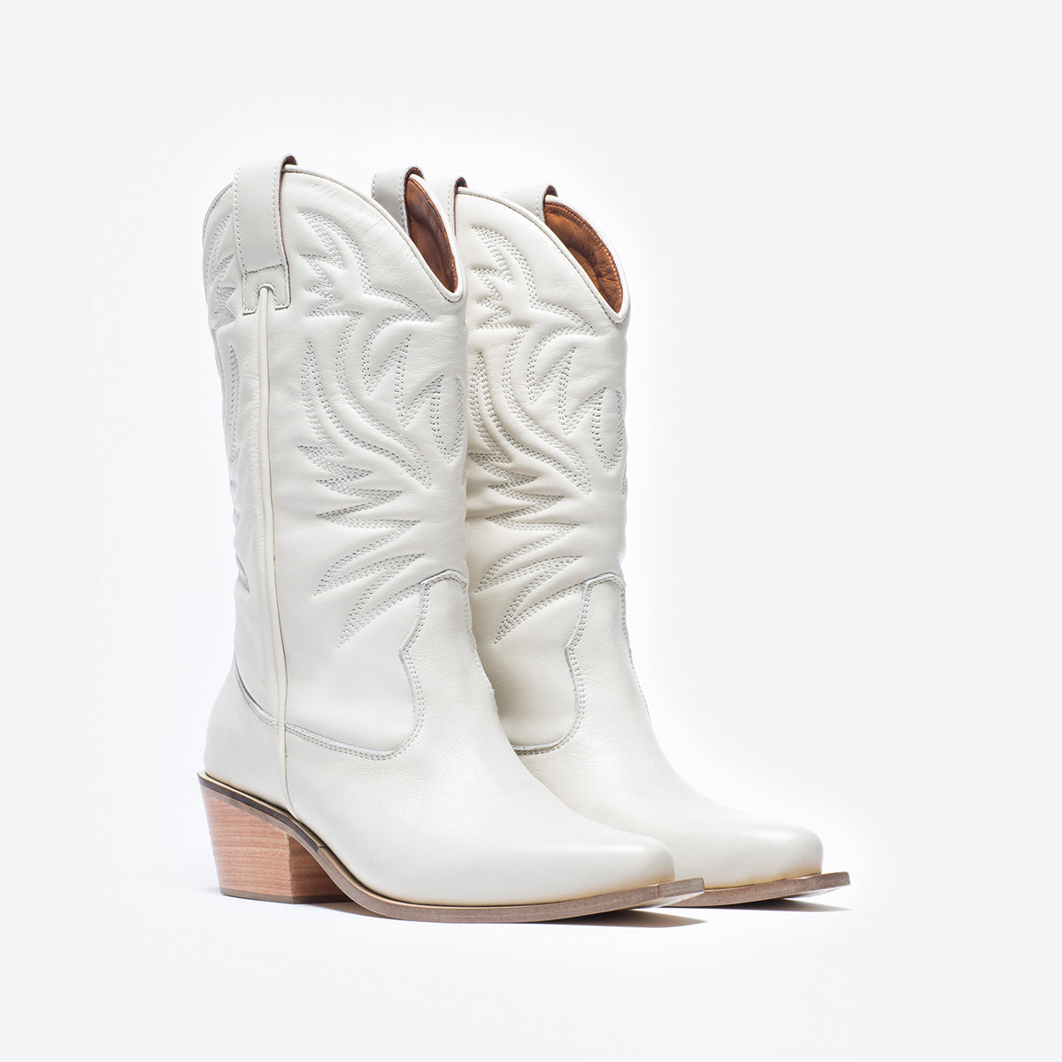 Bota Texana William Off White, base 4 cm, interior y plantilla de cuero.
